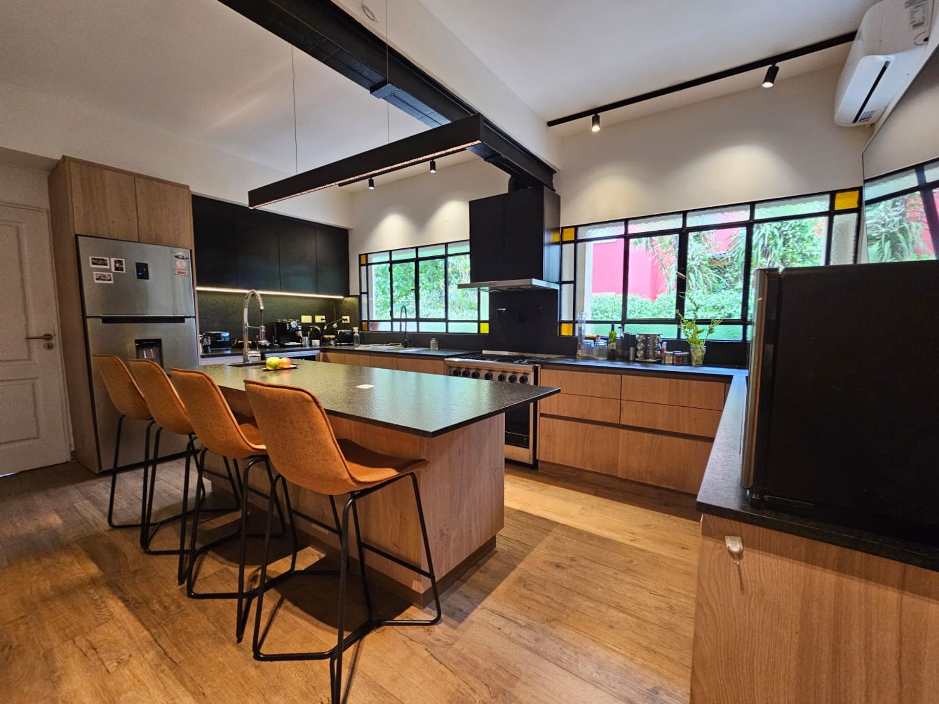 This two‑story home, situated on an interior lot within a neighborhood with excellent access to services and green spaces, offers a setting of comfort and elegance. On the ground floor, an entry hall leads to a spacious living area and open‑concept kitchen, featuring a fully equipped kitchen and a separate dining area for everyday use. Two bedrooms and a full bathroom complete the guest area, accompanied by a service wing and laundry.