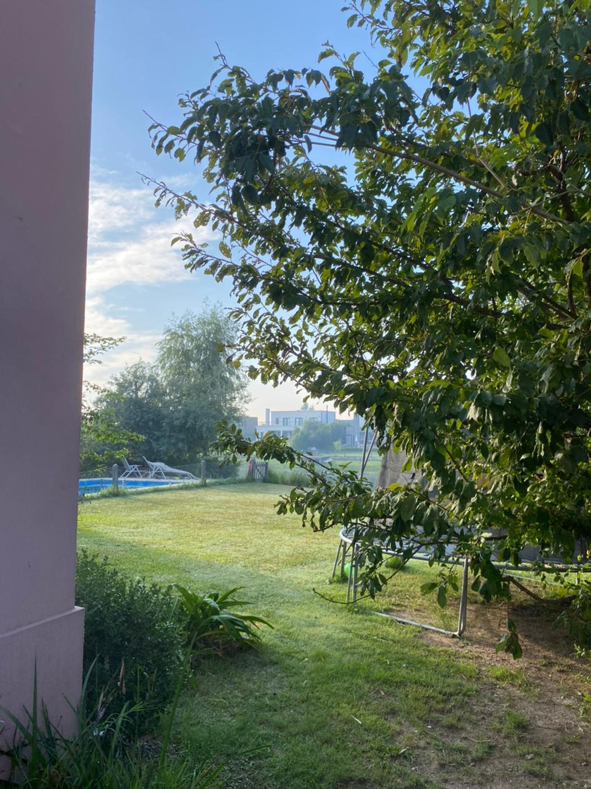 The property features a spacious covered gallery that opens onto a large garden, a swimming pool, and a fire pit, creating ideal spaces for family gatherings or entertaining friends. On the ground floor there is a reception toilet, a large living‑dining area, a study, and a kitchen integrated with an island, as well as a play area that invites children to have fun.