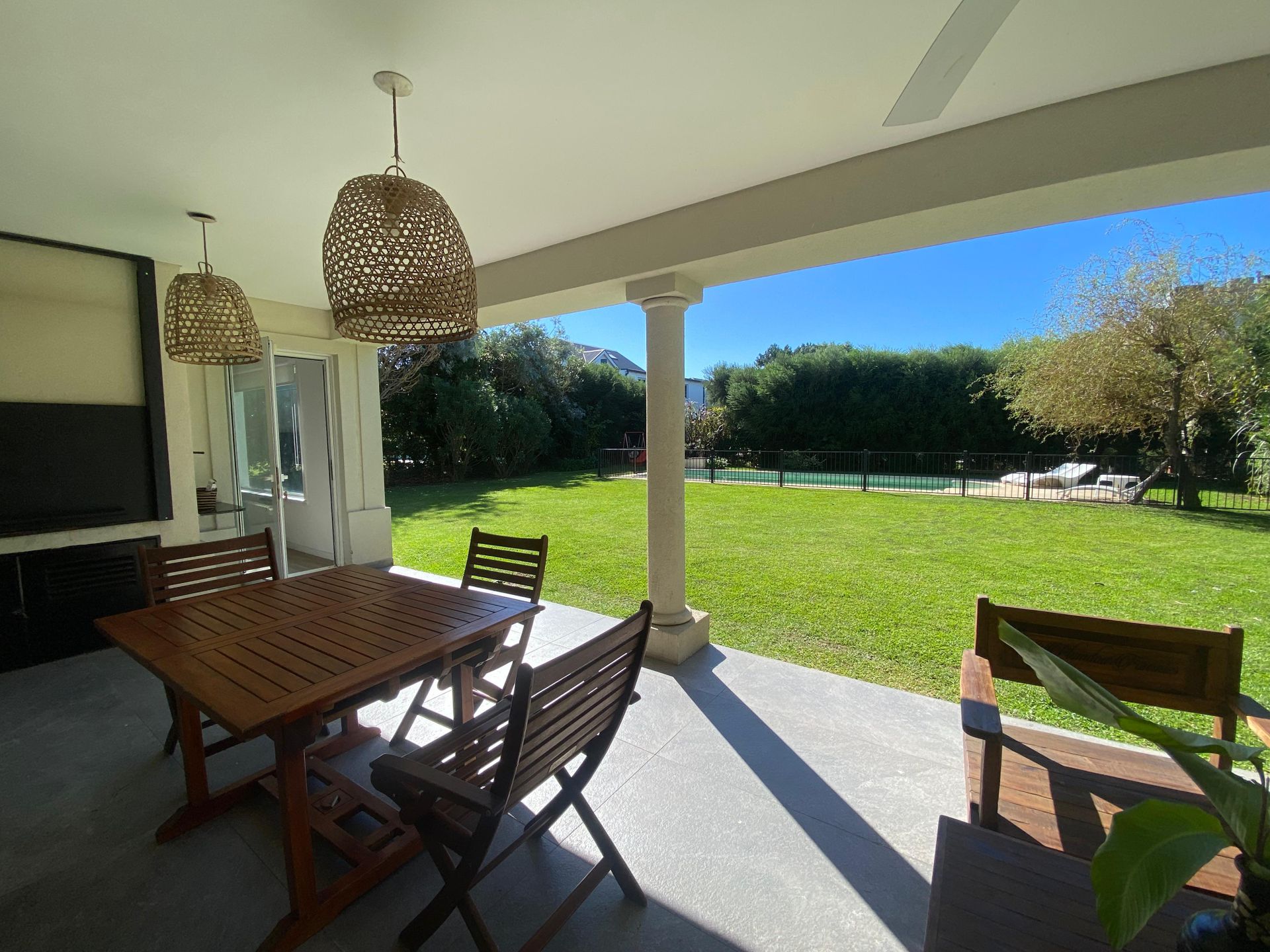 Se alquila temporalmente esta casa luminosa, cómoda y funcional, de dos plantas sobre un lote interno en el barrio privado La Alameda, parte de Nordelta.