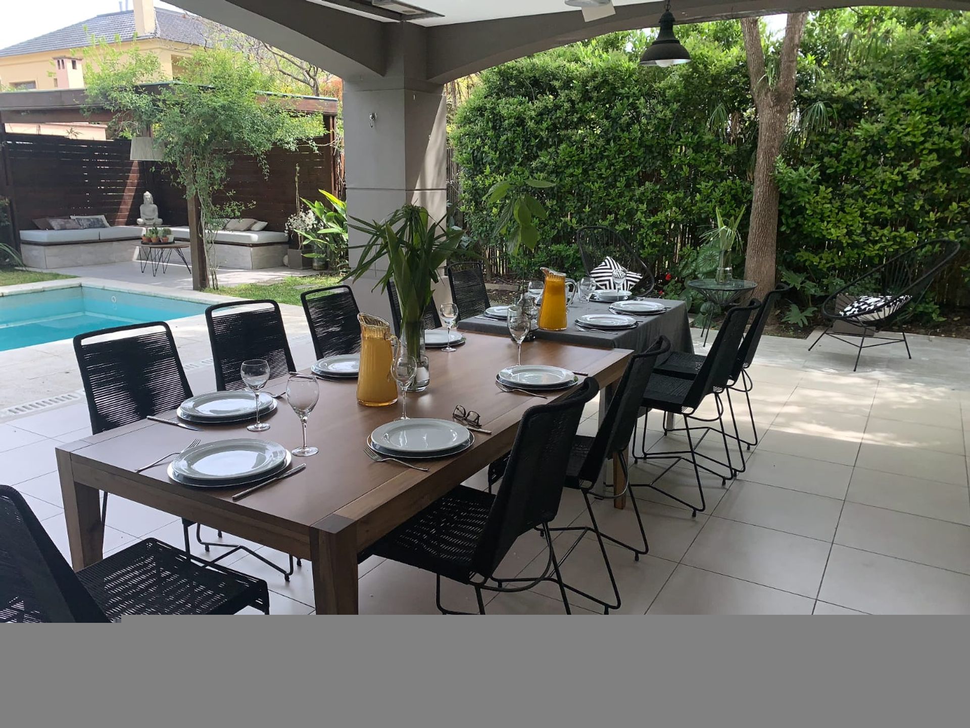 La arquitectura contemporánea se distingue por sus líneas limpias y sus amplios espacios, reflejando una calidad constructiva superior. El jardín, diseñado para el ocio, cuenta con una pileta, un solárium y un deck con sillones empotrados, donde una galería equipada con parrilla y horno pizzero invita a disfrutar de reuniones al aire libre.