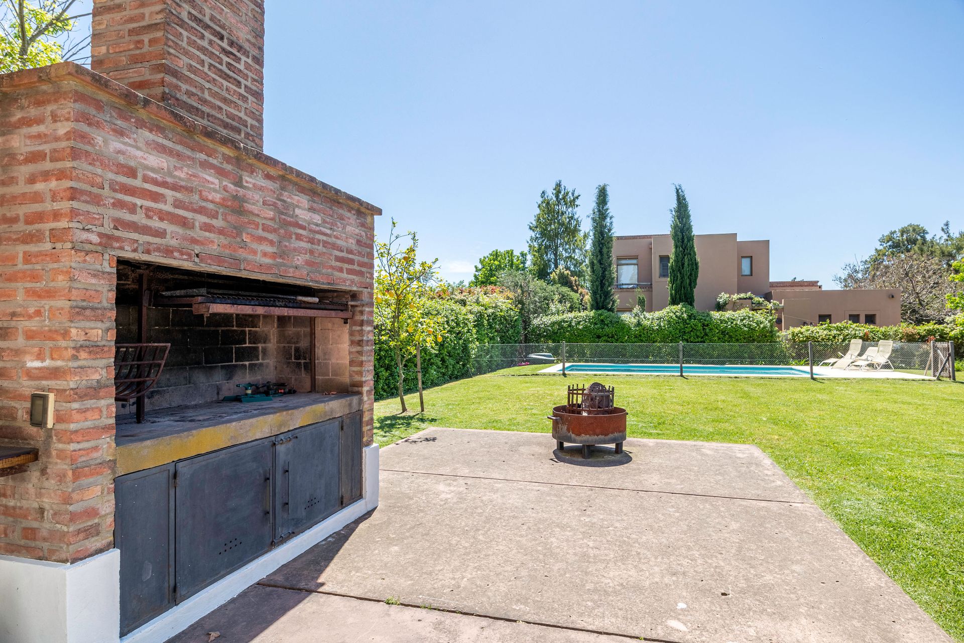 En la planta baja se encuentran un amplio living comedor con ventanales corridos que se abren a la galería, una cocina integrada al comedor y a la zona de family, un toilette, una habitación de servicio con baño, un lavadero, una galería, una piscina cerrada, una parrilla y un jardín.