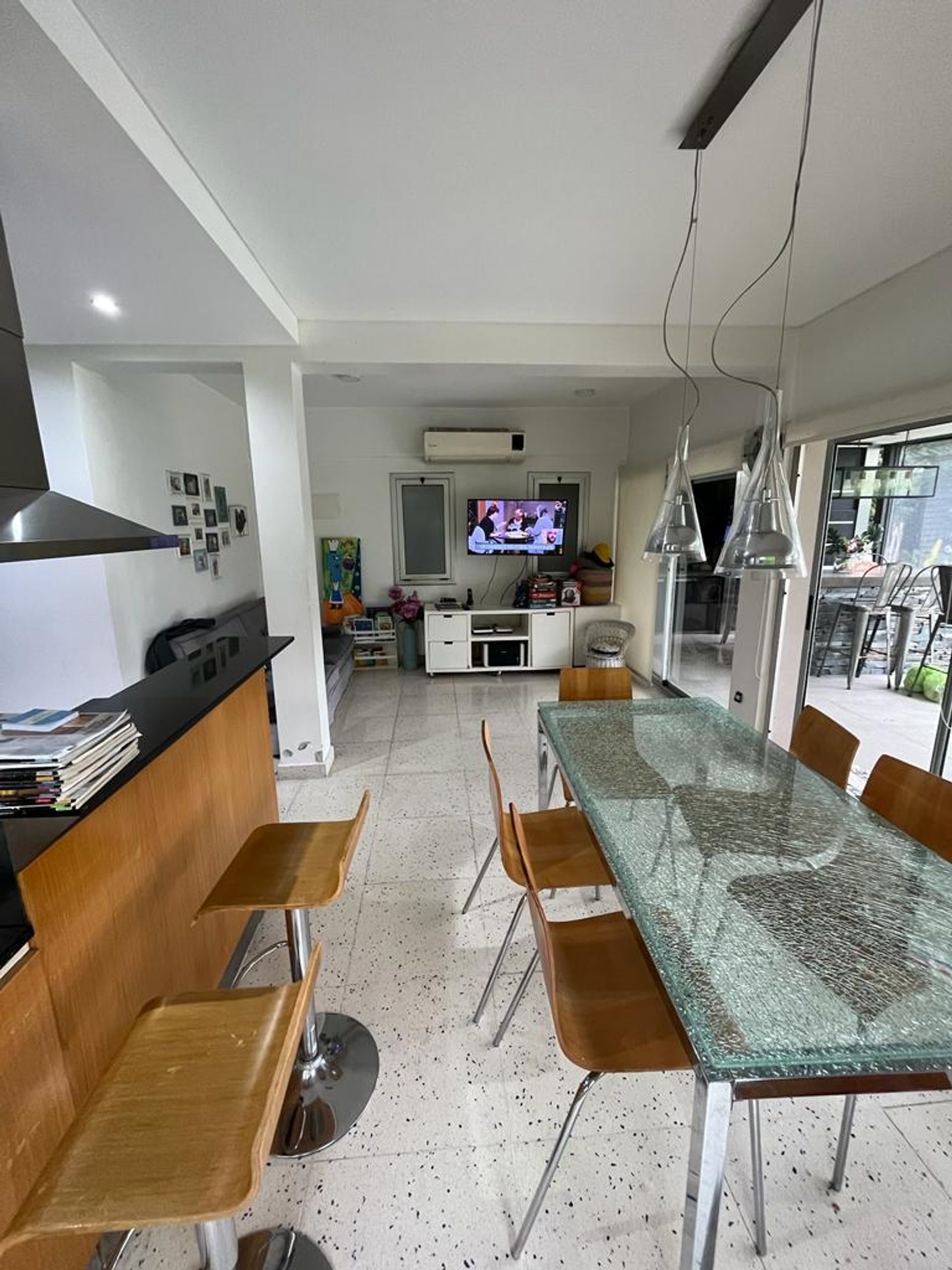 La galería, ideal para el entretenimiento, incluye parrilla, barra alta con banquetas, mesa de mármol, juego de living y mesa de ping pong. El aire acondicionado frío/calor y toldos verticales transparentes con control remoto garantizan confort en cualquier clima, y cuenta con baño exterior para mayor comodidad.
