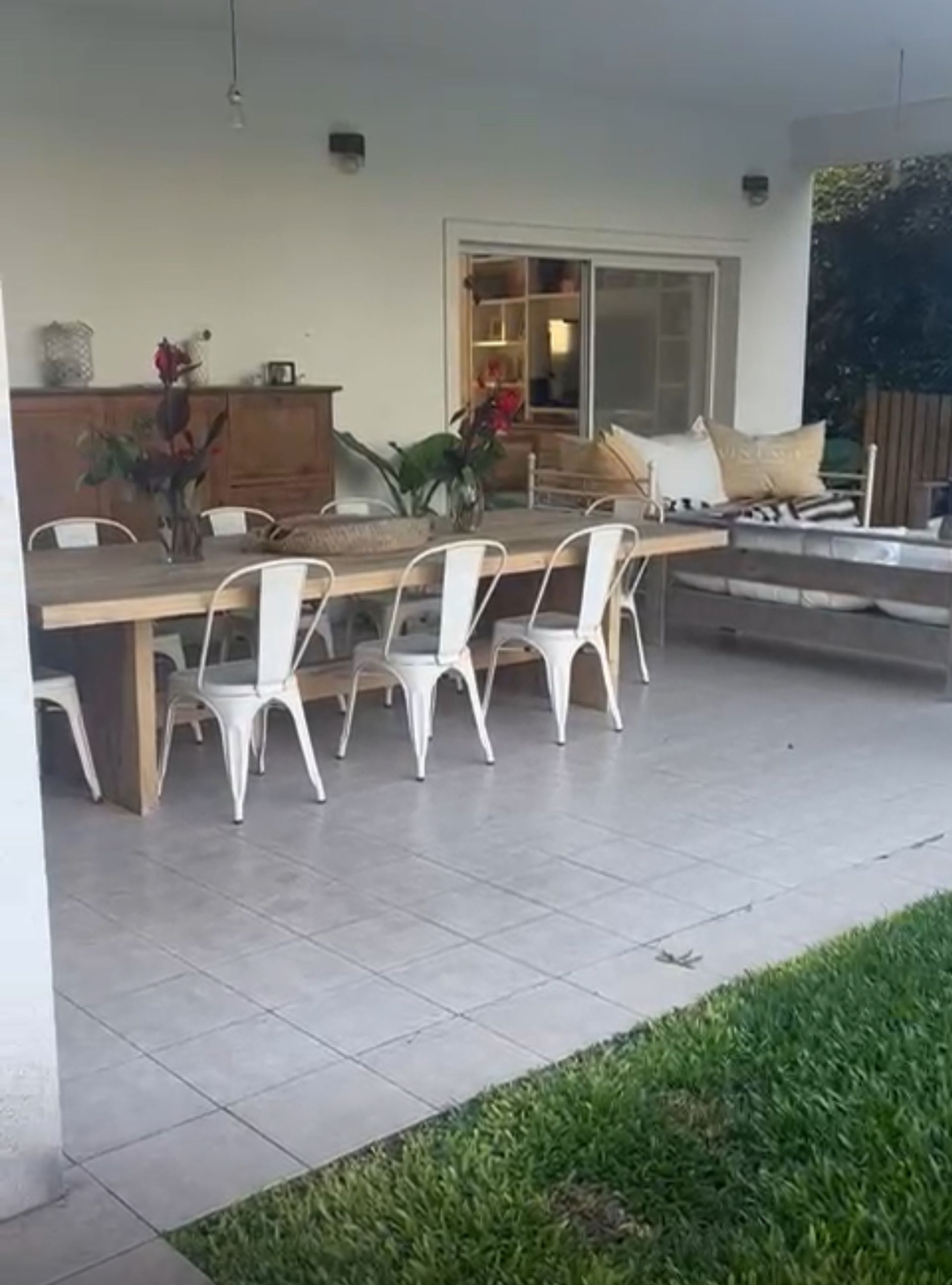 En el nivel principal se despliega un espacioso living-comedor con acceso directo a una gran galería y a una zona de asado equipada con parrilla, ideal para reuniones al aire libre. La cocina comedor diario está funcionalmente distribuida, con lavadero y un toilette de servicio. La piscina se extiende bajo pleno sol durante todo el día, y el jardín está completamente parquizado, creando un ambiente verde y tranquilo.
