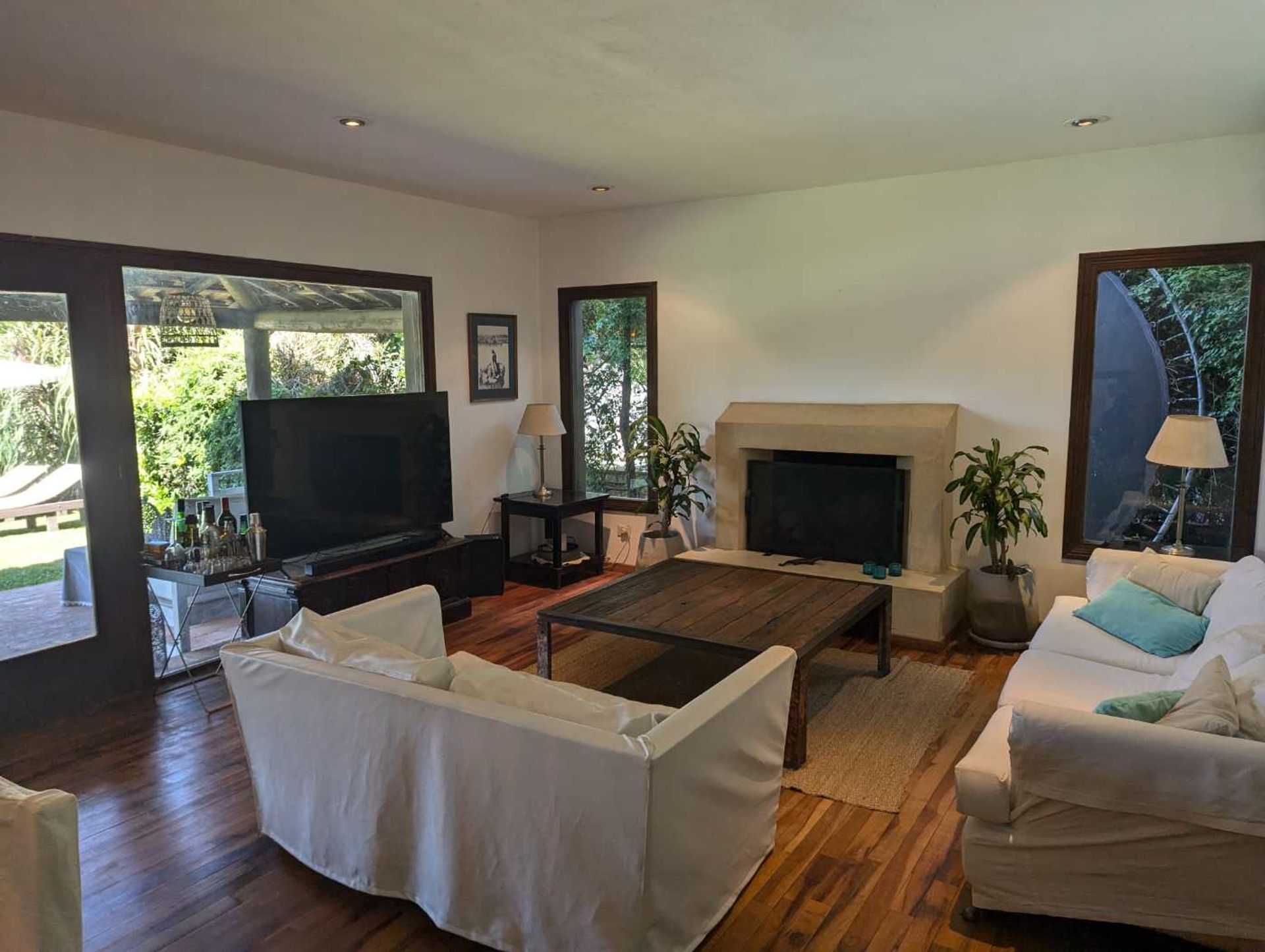Al exterior, la propiedad ofrece una vista abierta y sin obstrucciones a la laguna, garantizando una privacidad excepcional gracias a la distancia entre las viviendas del entorno. Entre sus amenidades destacan una galería con parrilla, una piscina y un muelle que invita a disfrutar de momentos al aire libre.