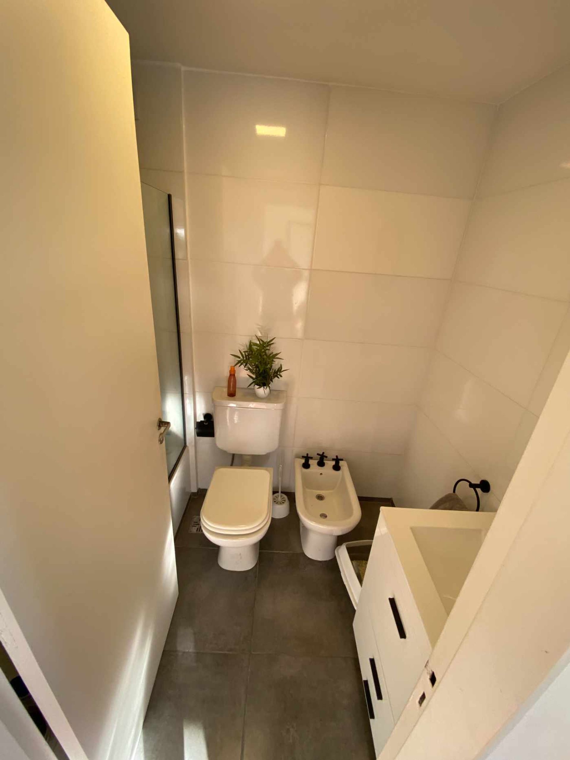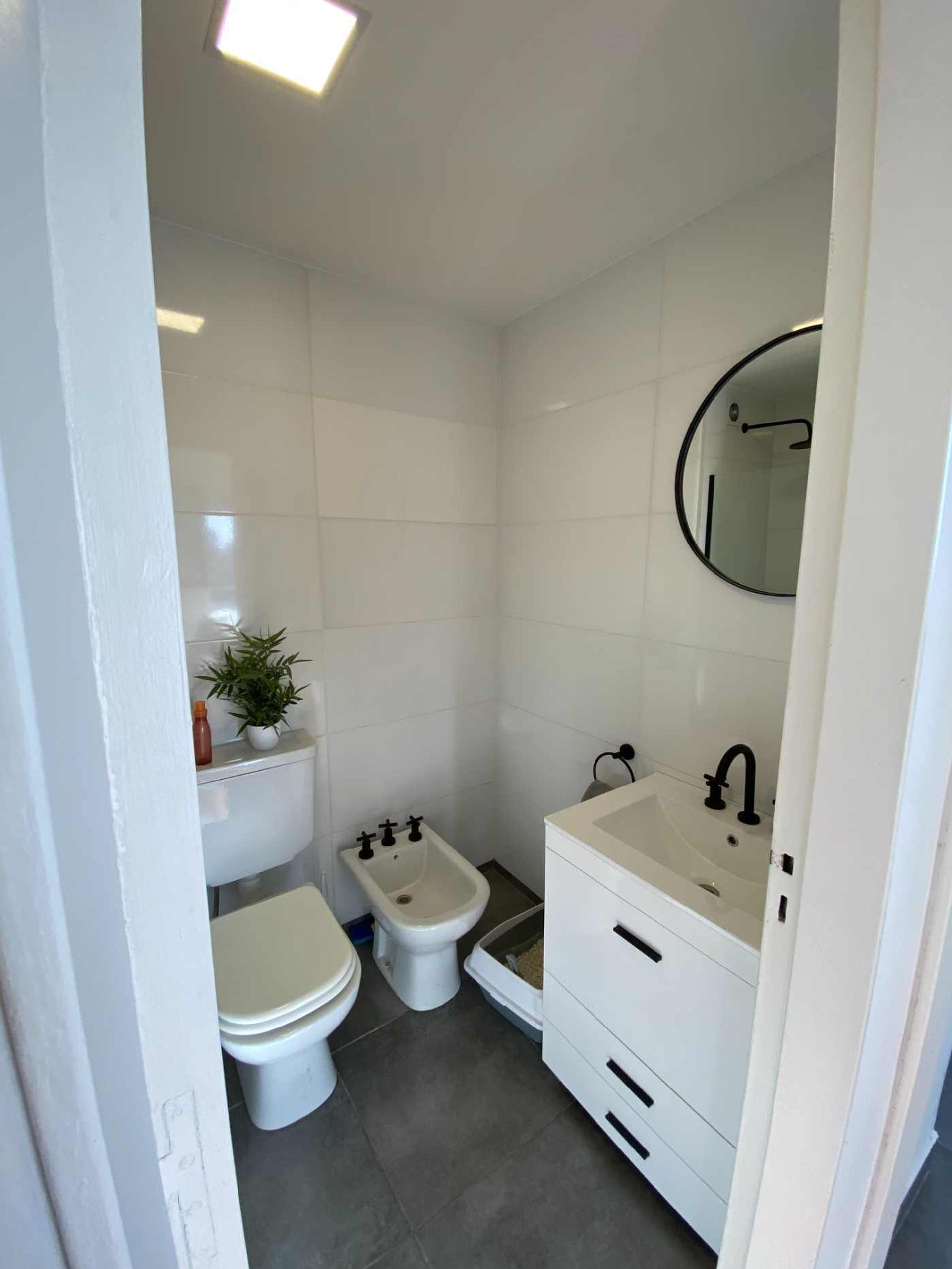 La cocina independiente está completamente equipada con anafe eléctrico, horno a gas y lavadora. El baño completo incluye ventilación para mayor confort.
