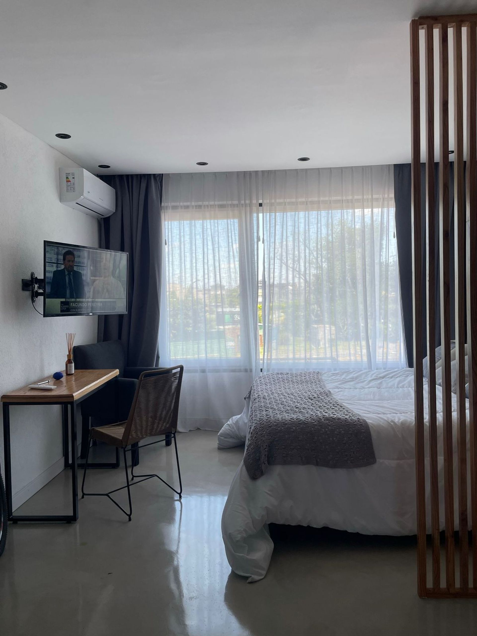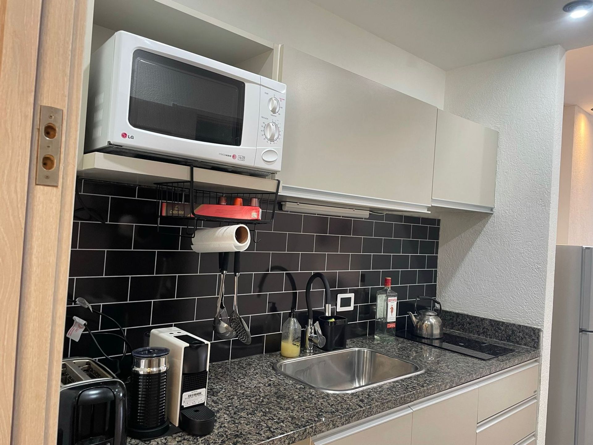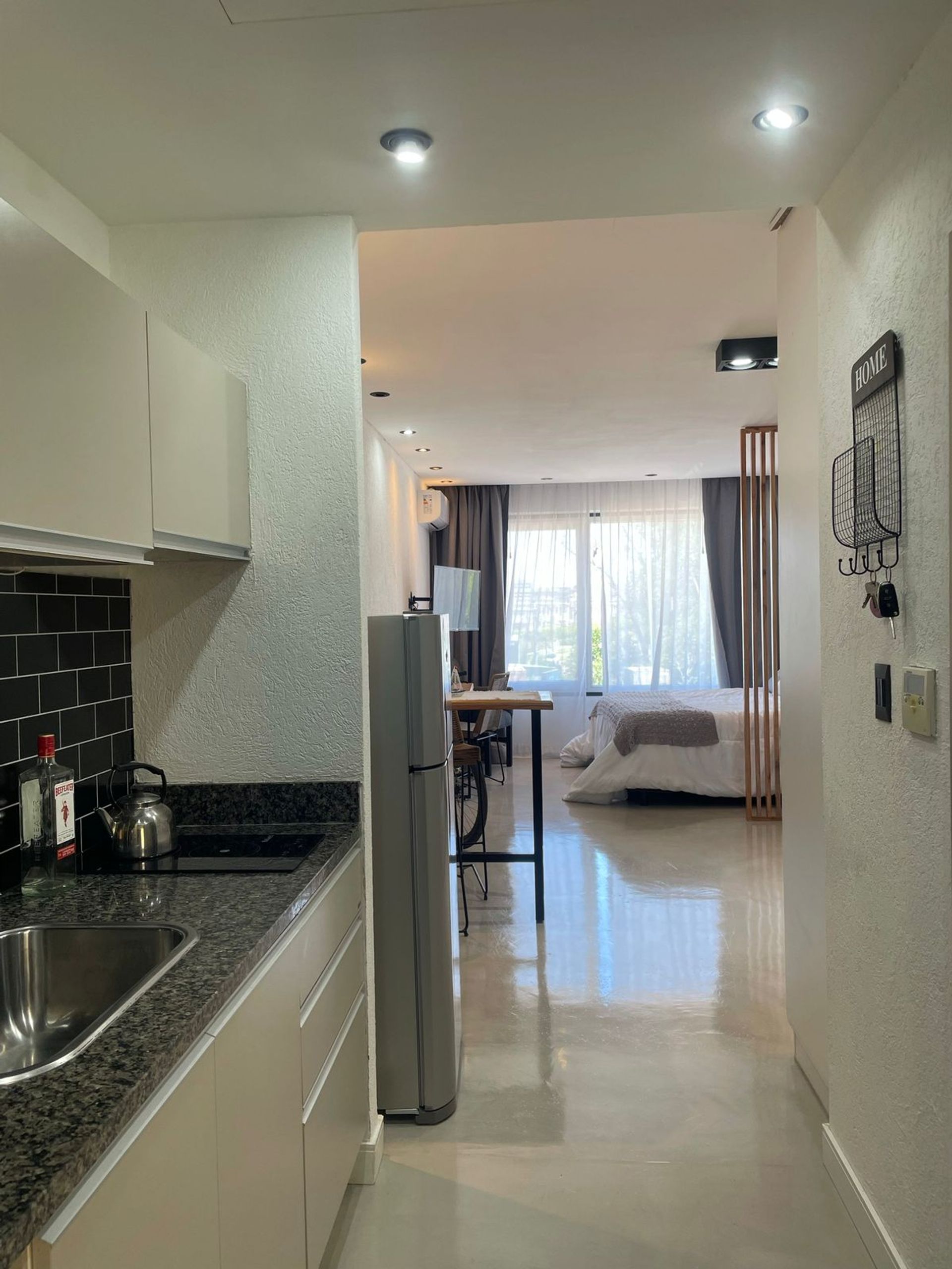 El espacio principal combina de manera armónica área de estar, dormitorio y cocina tipo americana, equipada con muebles de calidad que garantizan un estilo moderno y práctico. El baño completo presenta terminaciones de primera línea y materiales de alta calidad, ofreciendo un refugio de tranquilidad. Además, la unidad incluye una cochera propia, brindando seguridad y conveniencia.