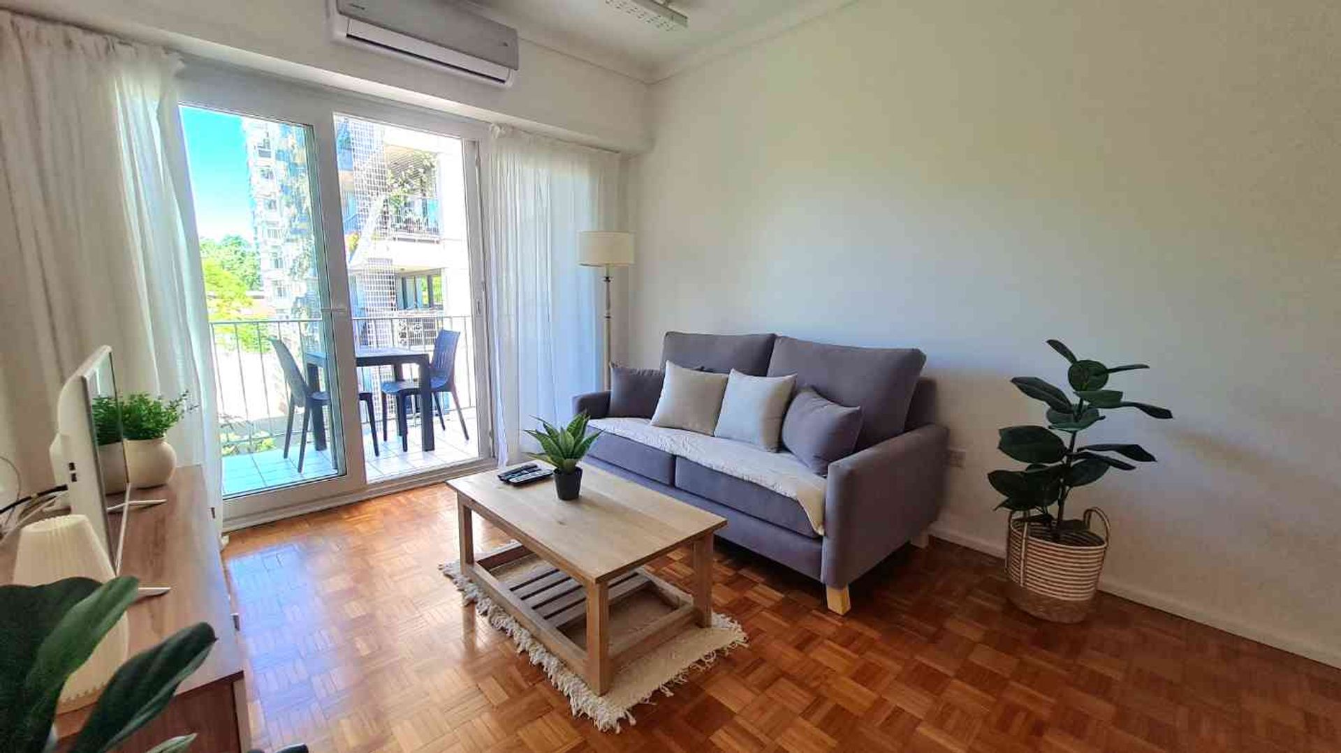 Todos los ambientes cuentan con doble acristalamiento, aire acondicionado en cocina y living, calefacción central por losa radiante y acabados de alta calidad. El departamento está completamente equipado y listo para mudarse.