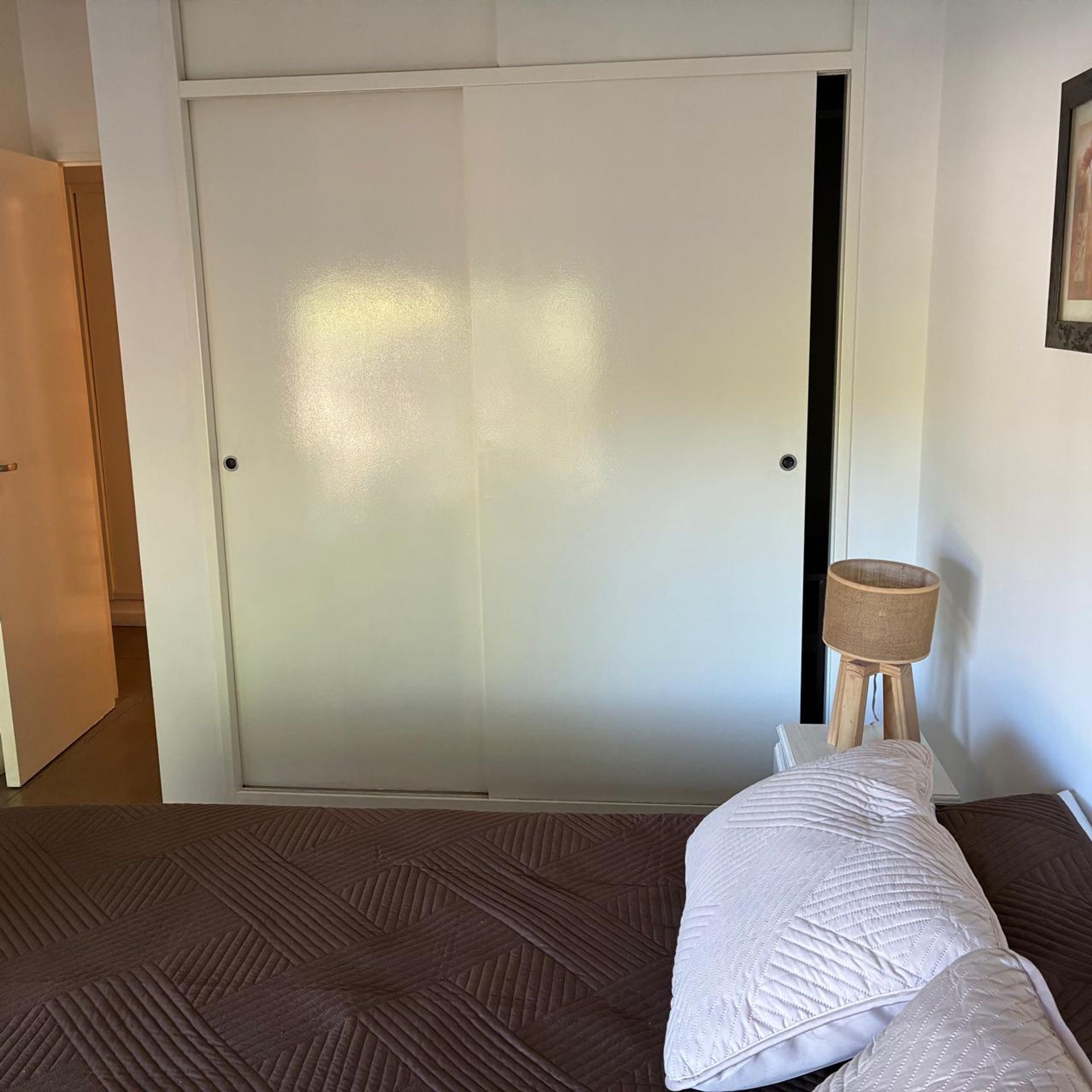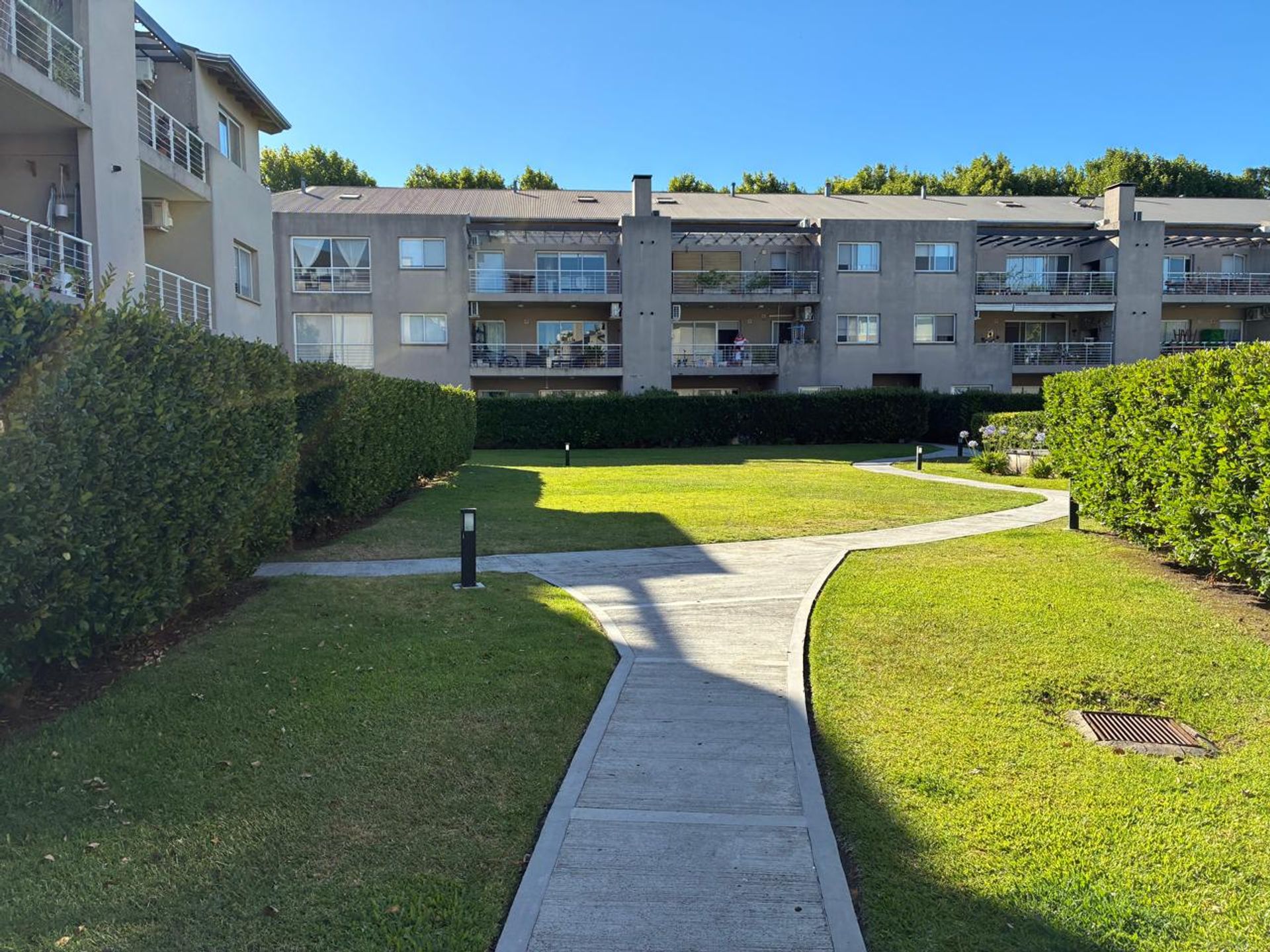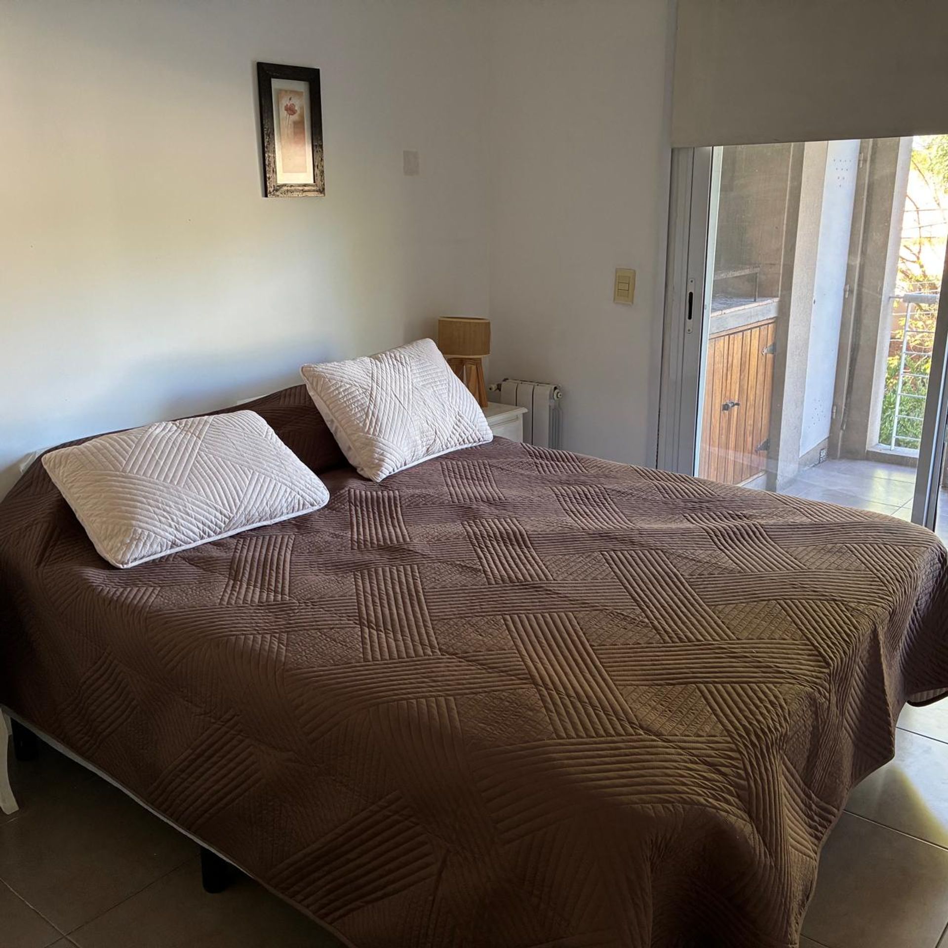 El complejo brinda amenities que potencian la experiencia de vida: piscina refrescante para tardes de verano, lavandería (laundry), sala de usos múltiples (SUM) para reuniones sociales y jardines que rodean el edificio. El departamento viene equipado con electrodomésticos de primera: heladera, lavarropas y aire acondicionado central. En el dormitorio se encuentra una cama queen, y en el living un sofá cama, ofreciendo flexibilidad para la convivencia o el entretenimiento.