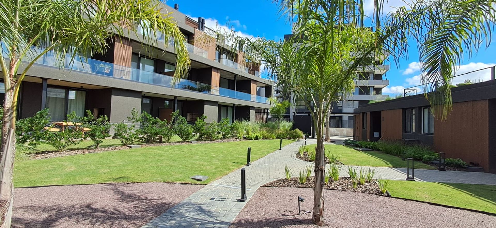 En la zona de la galería se instala una parrilla y un hermoso jardín con vista al parque interno del barrio. La cochera fija está descubierta y ofrece espacio para un vehículo. El edificio forma parte de Milenia, un emprendimiento ubicado en Nordelta a pocos metros del polo gastronómico Las Carolas y con acceso a actividades náuticas, campo de deportes y zona de colegios.