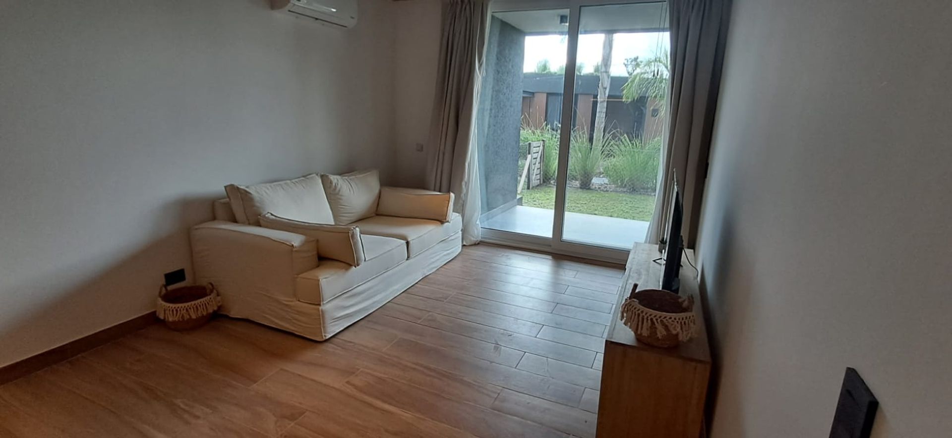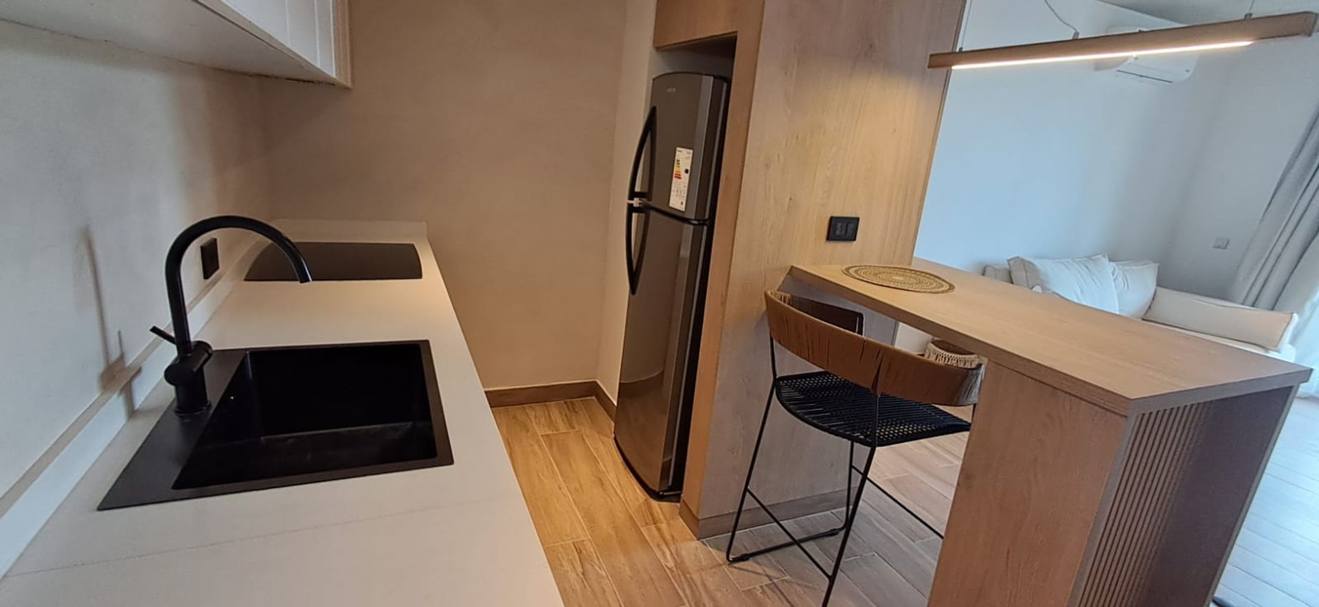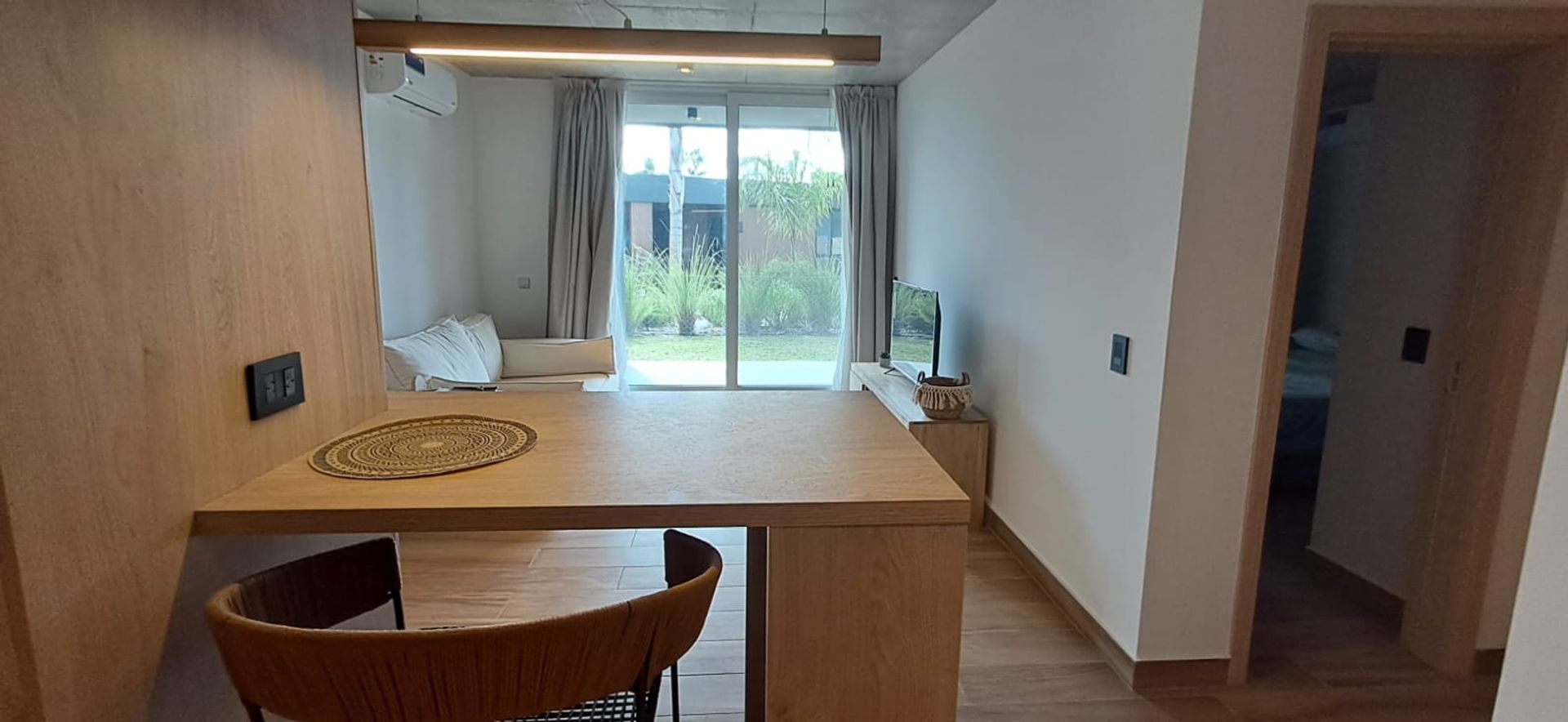 Departamento amoblado a estrenar en Milenia, Nordelta. La unidad cuenta con dos ambientes en planta baja y un jardín privado que lo conecta con el resto del complejo. El salón-comedor abre a una cocina con barra desayunadora y un baño completo. El dormitorio dispone de un placard amplio.