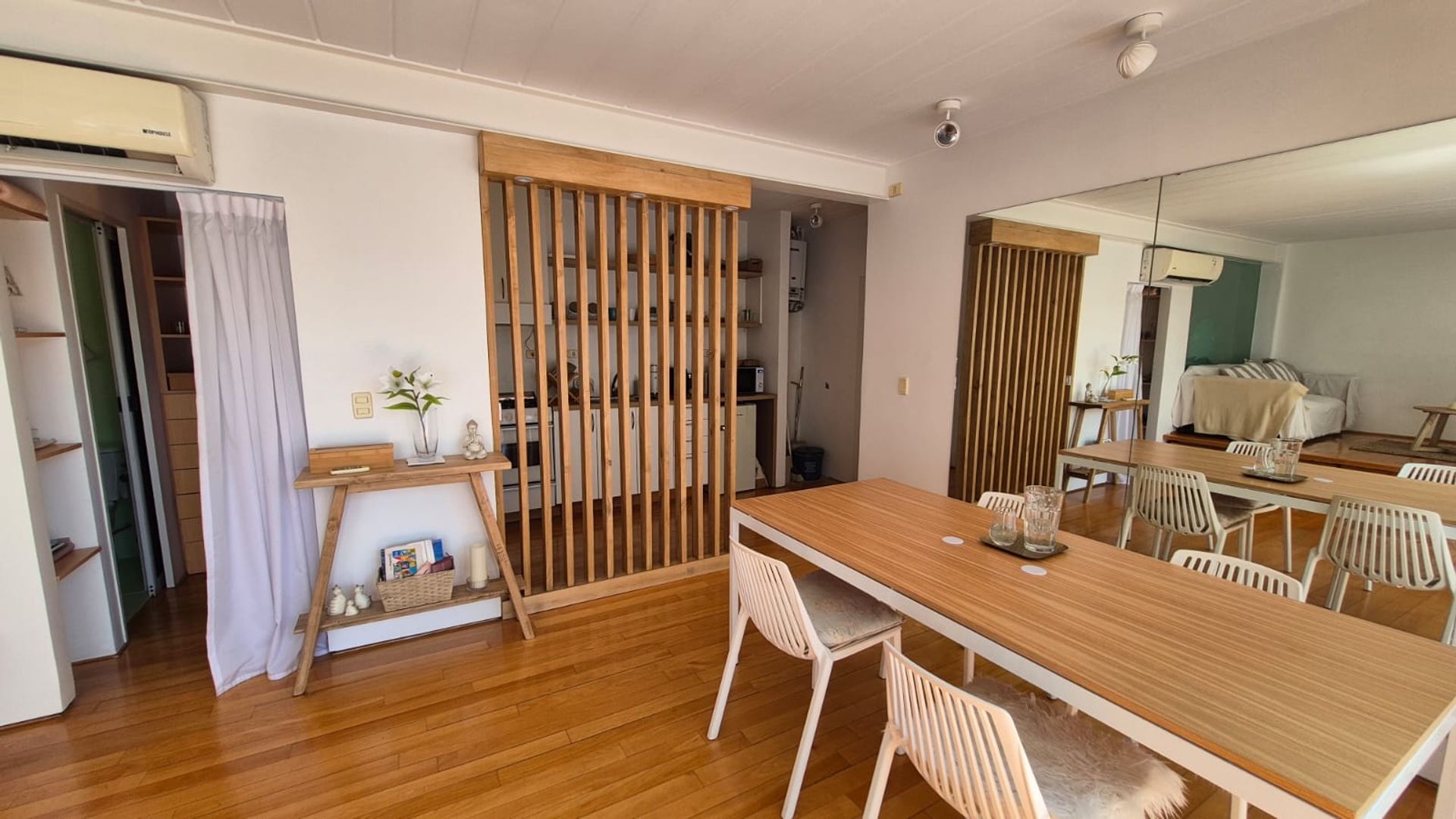 Equipado con aire acondicionado y servicios completos de electricidad, agua y gas. La cochera incluida añade un valor adicional de practicidad.