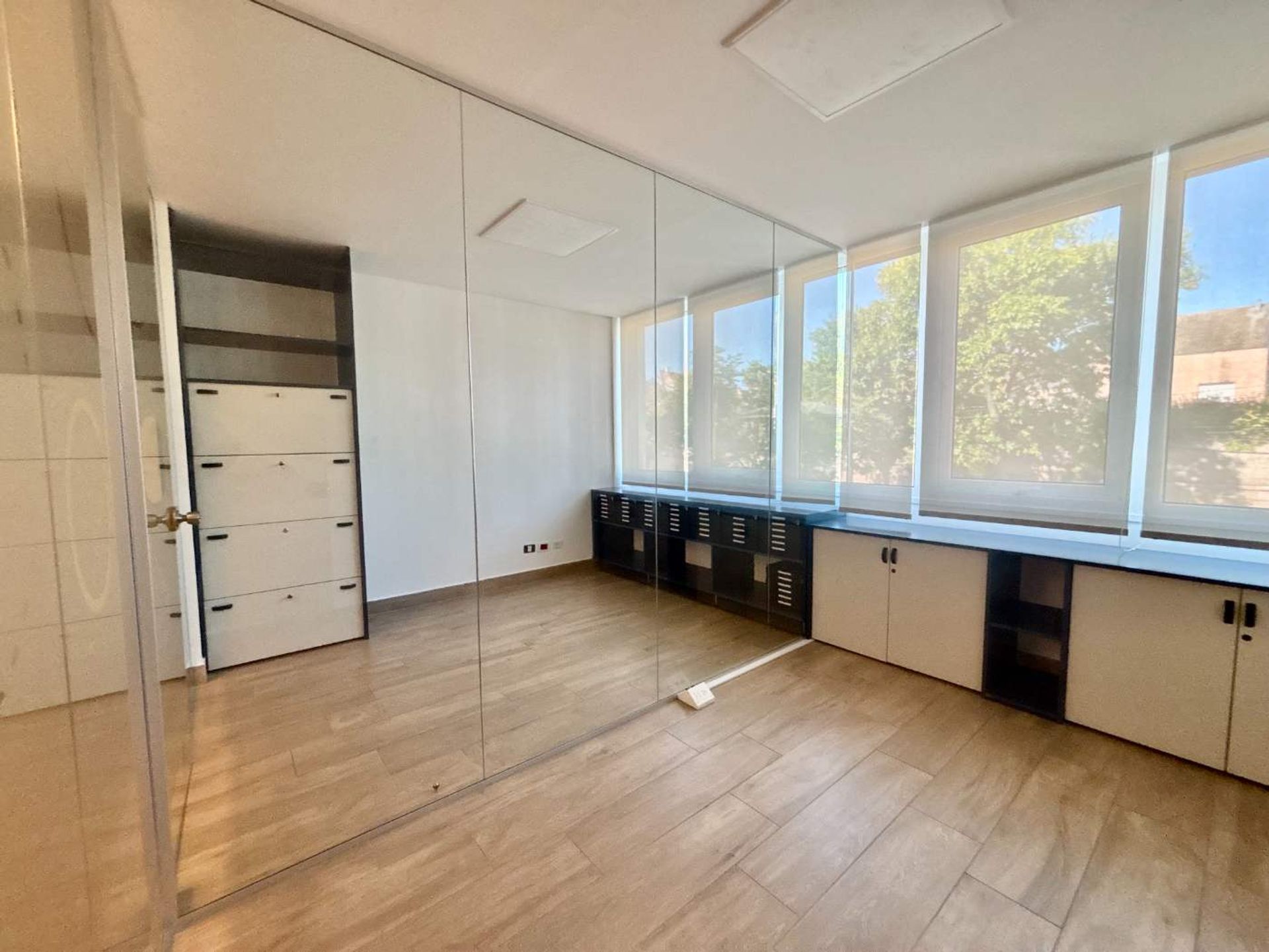 La oficina está orientada al frente y al contrafrente, con grandes ventanales que inundan el espacio de luz natural y ofrecen una vista abierta. El ambiente resulta agradable y relajado, ideal para la productividad. El plano cuenta con una kitchenette totalmente equipada, baño privado, dos salas de reuniones y una zona de recepción.