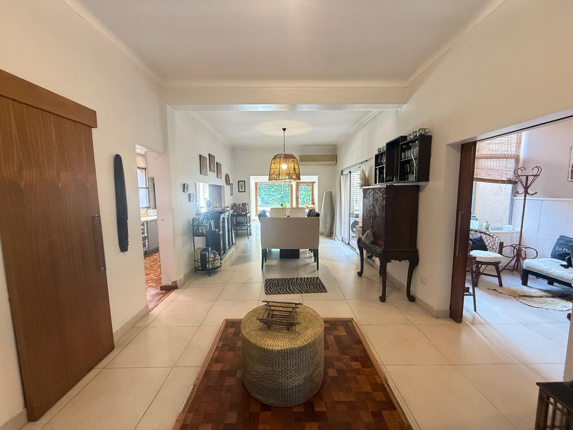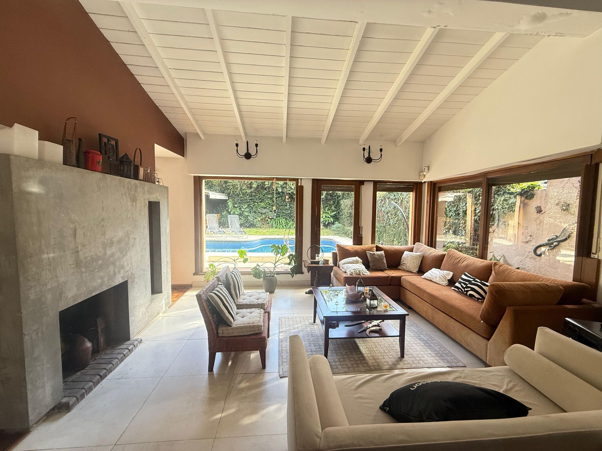 Al ingresar, un hall de recepción con toilette da la bienvenida. El espacioso living-comedor, con hogar y ventanales de madera, se integra armoniosamente con una cocina moderna, completamente reciclada, equipada con barra desayunadora, comedor diario y conexión para lavavajillas. La luz natural abunda en todos los ambientes, destacando el jardín como el verdadero corazón de la casa.