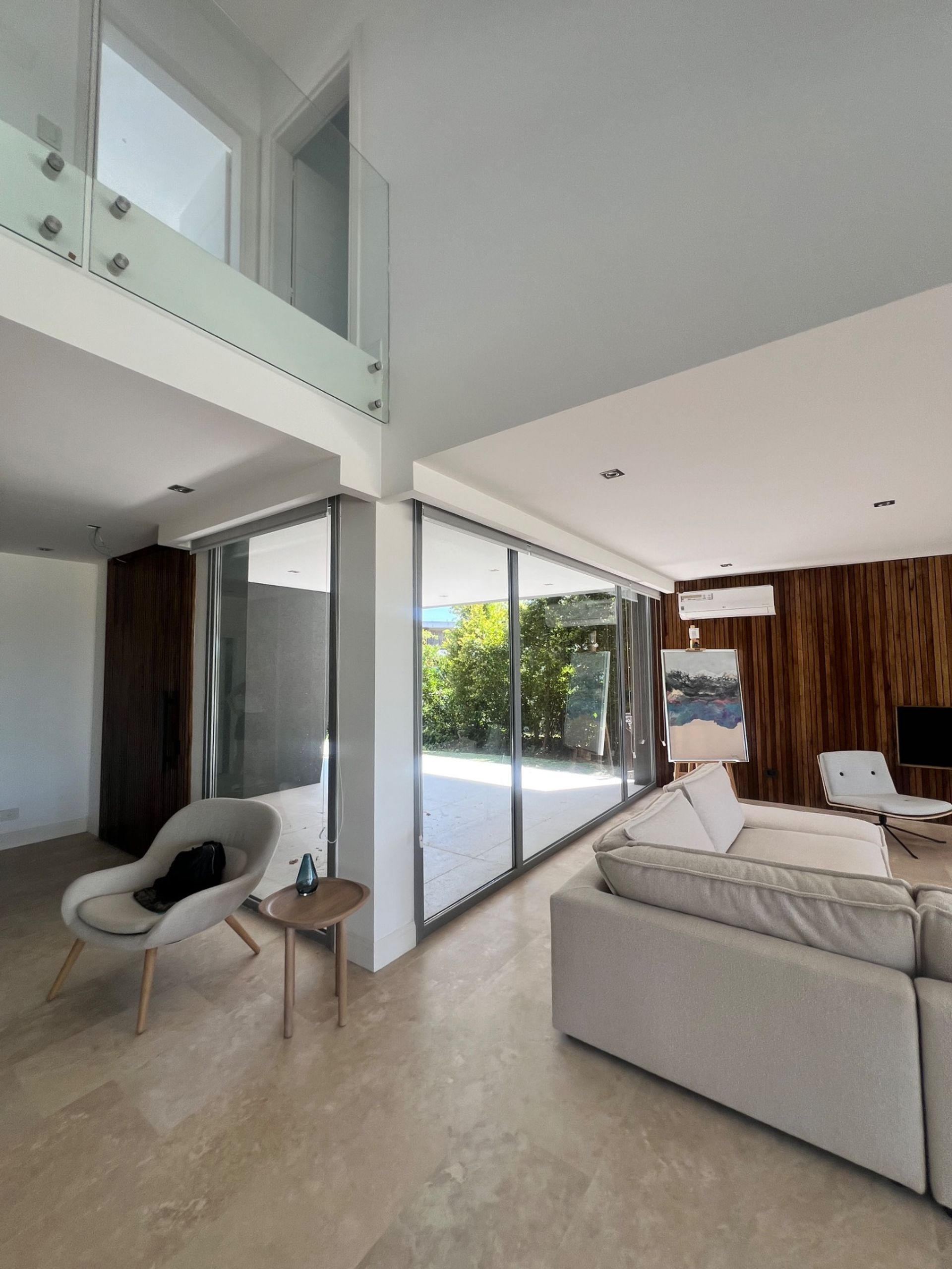 Casa de estilo racionalista ubicada en el barrio El Golf, Nordelta, sobre un generoso lote de 1.215 m² con vistas abiertas al golf y orientación noreste. Este inmueble combina confort y elegancia, ofreciendo un espacio amplio y bien distribuido en un entorno exclusivo.