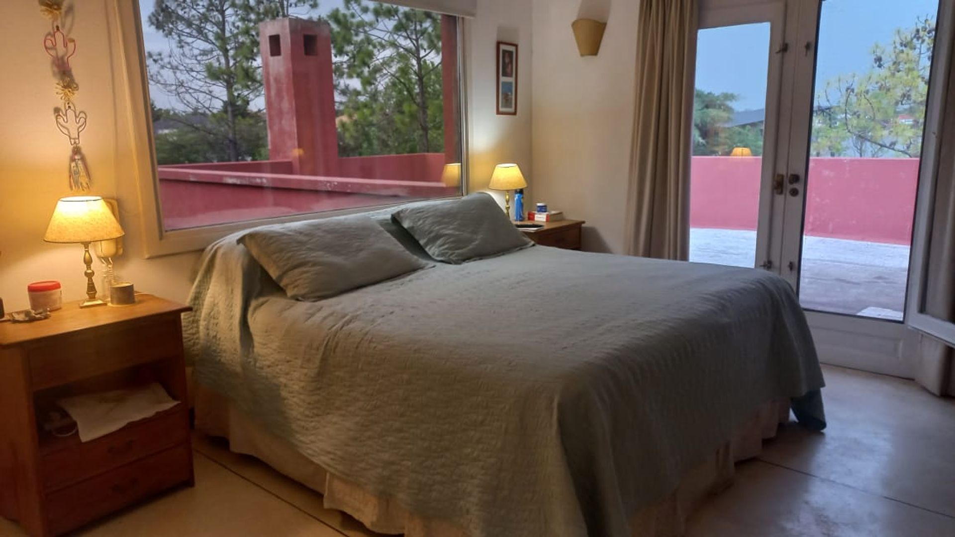 La planta alta alberga tres habitaciones, cada una con aire acondicionado, y un baño completo. La escalera, protegida, facilita el acceso a este nivel, donde la luz natural y la vista al lago continúan siendo protagonistas.