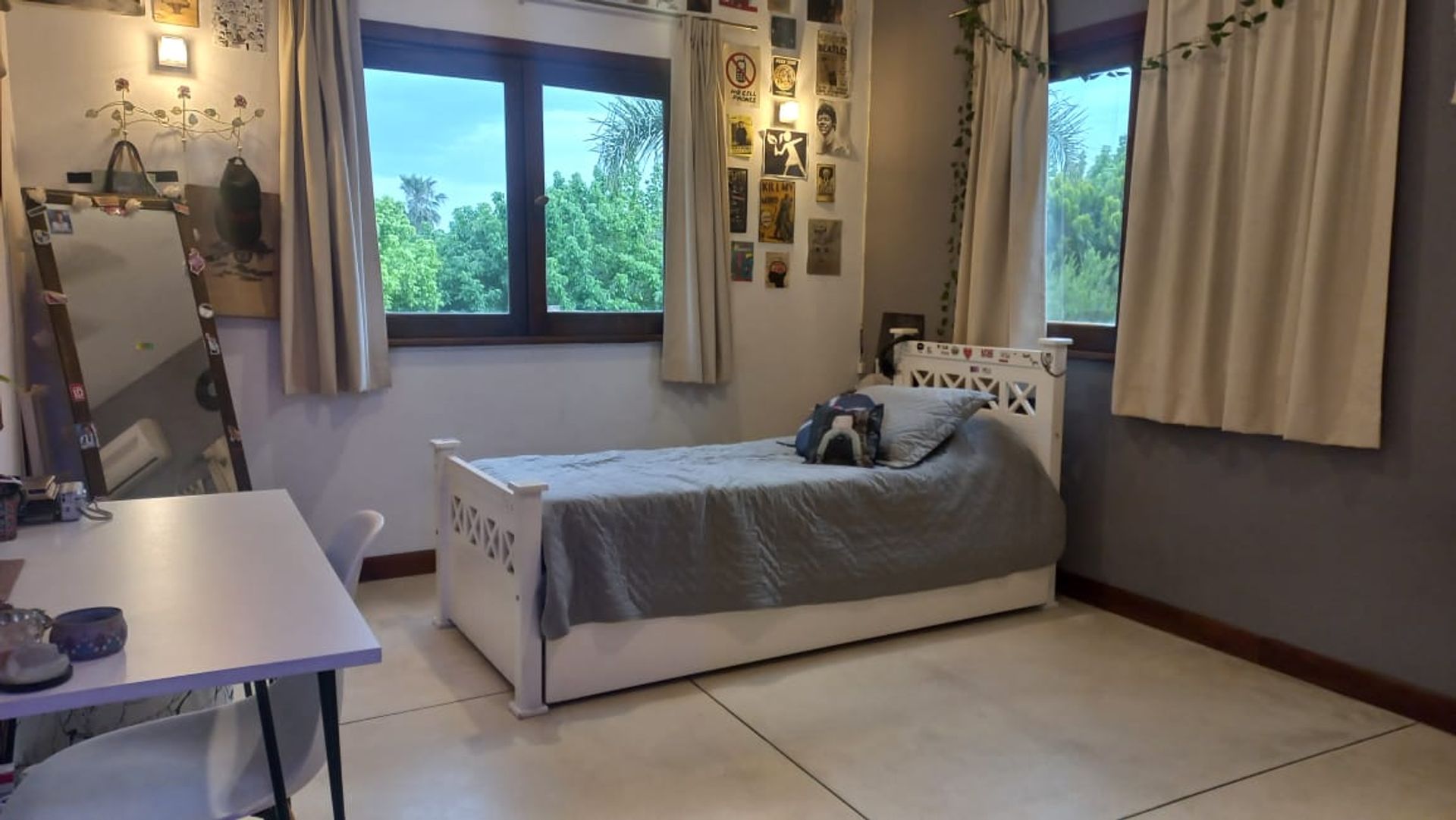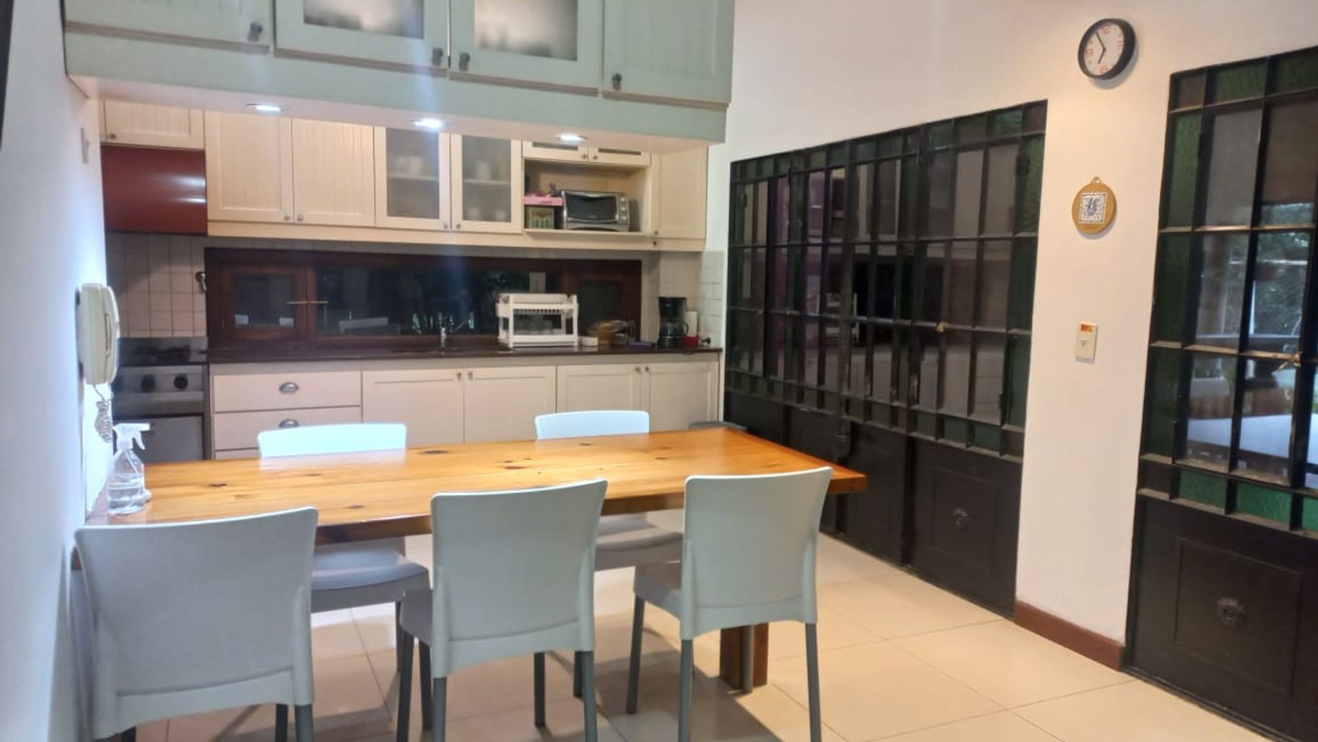 Al ingresar a la planta baja se abre un amplio espacio de recepción que se conecta con un área de trabajo idónea para un home office. Un baño funcional, un living comedor luminoso y una cocina comedor de estilo moderno se combinan con un quincho equipado con parrilla, creando el escenario perfecto para reuniones familiares o con amigos. La casa cuenta con una pileta con protección, una habitación de servicio con baño completo y un lavadero, todo pensado para la comodidad diaria.