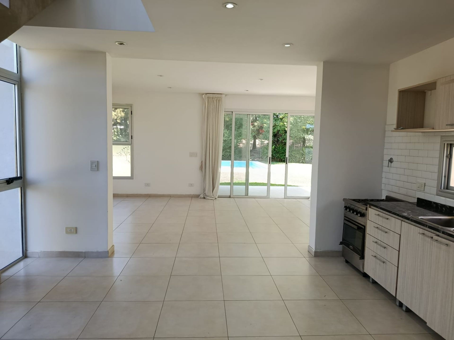 En la planta baja se encuentra un amplio hall de entrada, un living comedor integrado con cocina y ventanales que garantizan abundante luz natural. Hay un lavadero independiente, una habitación que puede usarse como oficina, un toilette adicional y una galería semicubierta con parrilla. El parque exterior dispone de pileta, ideal para disfrutar del clima de la zona.