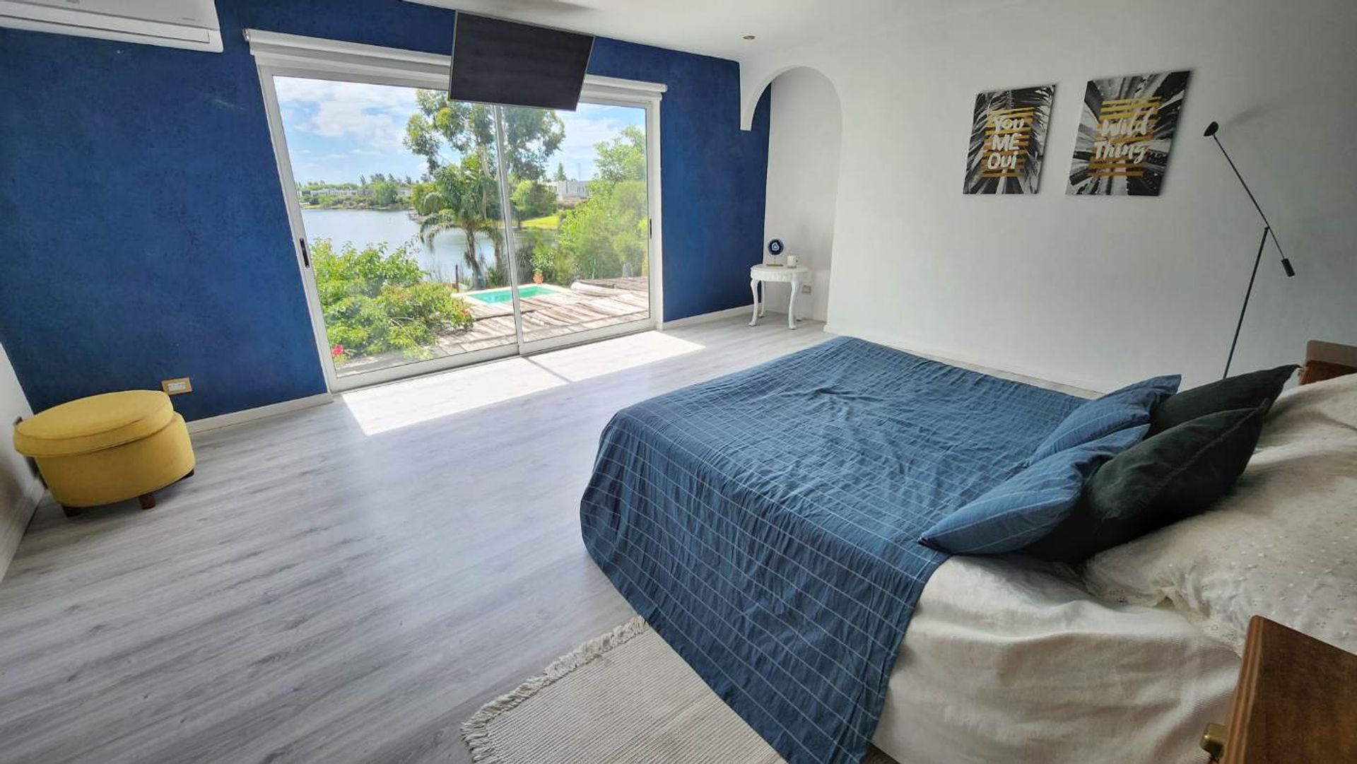 La planta alta continúa la temática de vistas. La suite principal, con baño amplio y vestidor, ofrece panorámicas incomparables a la laguna. Una segunda suite con vestidor también disfruta de esta vista privilegiada. Un pasillo de distribución lleva a dos dormitorios adicionales, de los cuales uno mira directamente a la laguna. Un baño completo, también con vista, complementa esta planta diseñada para que el agua sea protagonista en cada rincón.