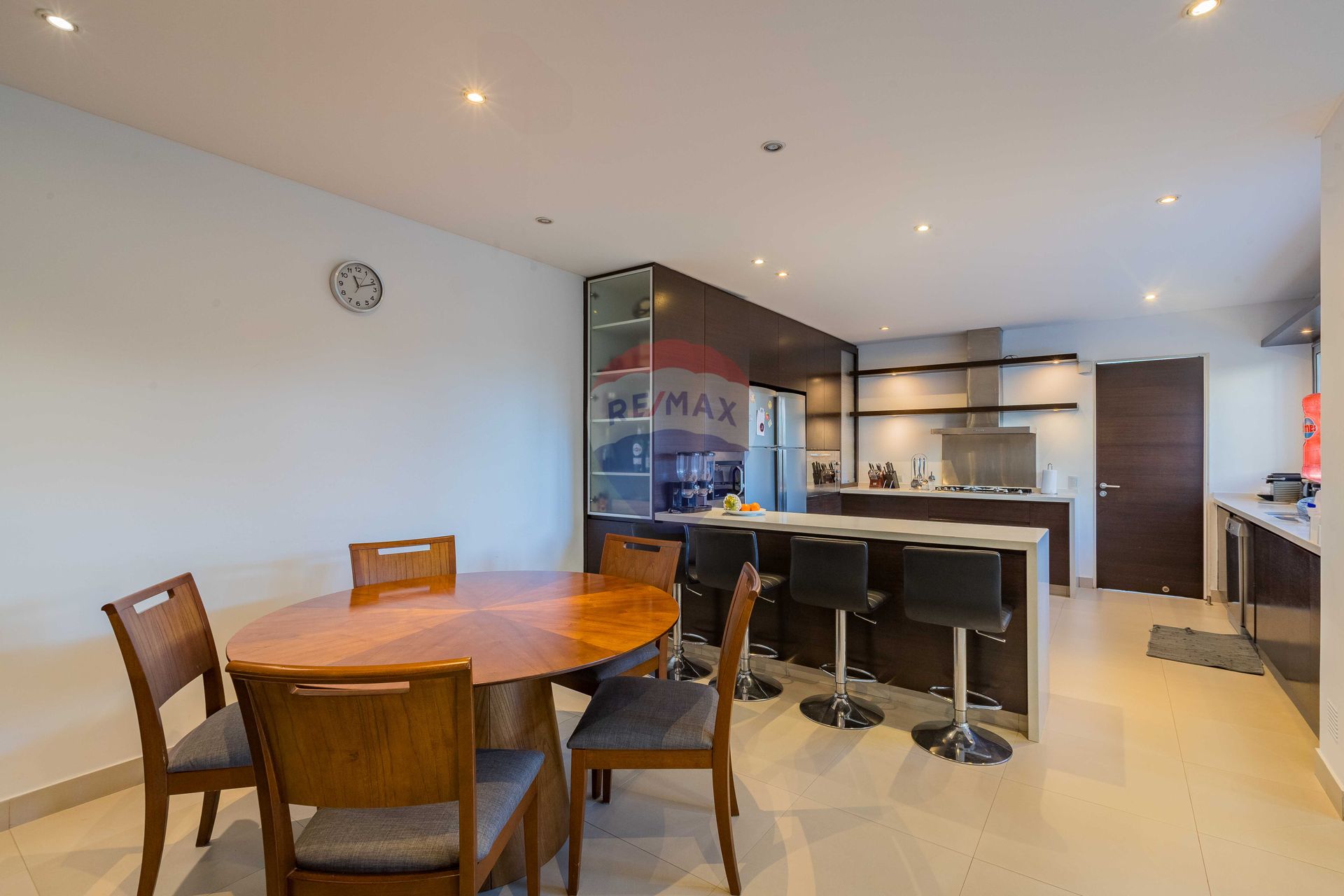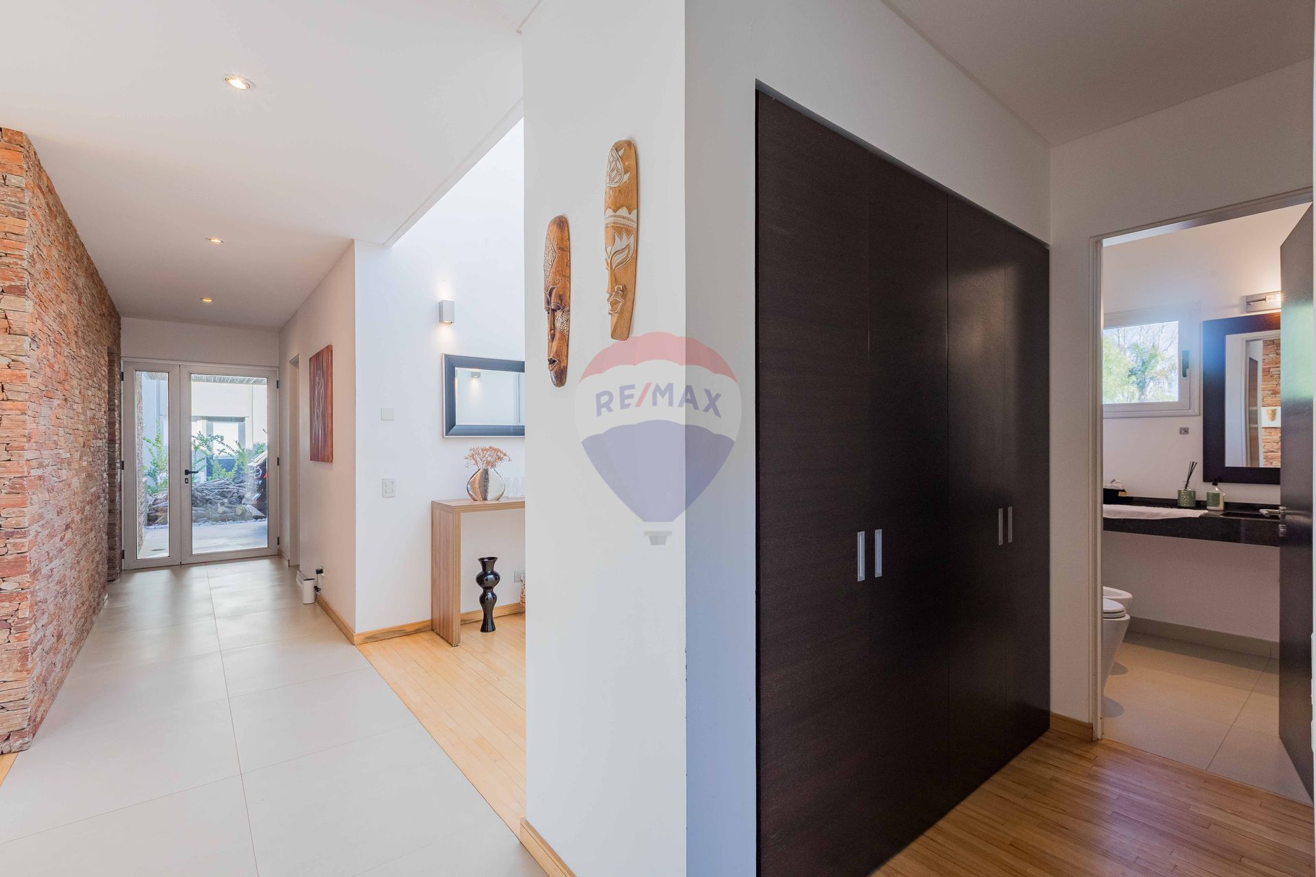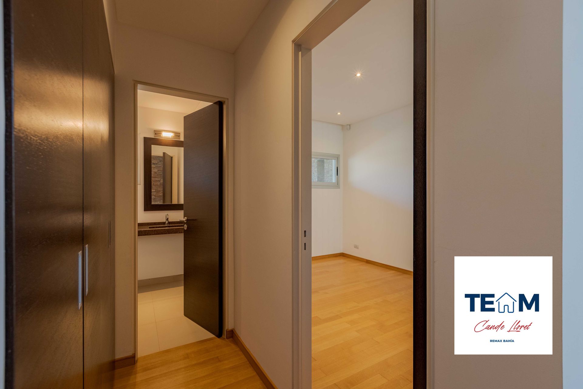 La planta alta alberga cuatro dormitorios y tres baños. La suite principal, con vista al agua, incluye baño con ducha doble, hidromasaje y un amplio vestidor. Dos suites junior, una con vista al frente y otra al agua, ofrecen confort y privacidad. La cuarta habitación se ubica junto a un baño completo y cuenta con espacio adicional de guardado en el pasillo. Todos los pisos son de madera natural Haya hidrolaqueada, y la calefacción central por piso radiante, con dos calderas Baxi duales, garantiza confort durante todo el año. Las carpinterías de aluminio anodizado A‑30 con doble vidrio hermético proporcionan aislamiento y estética.