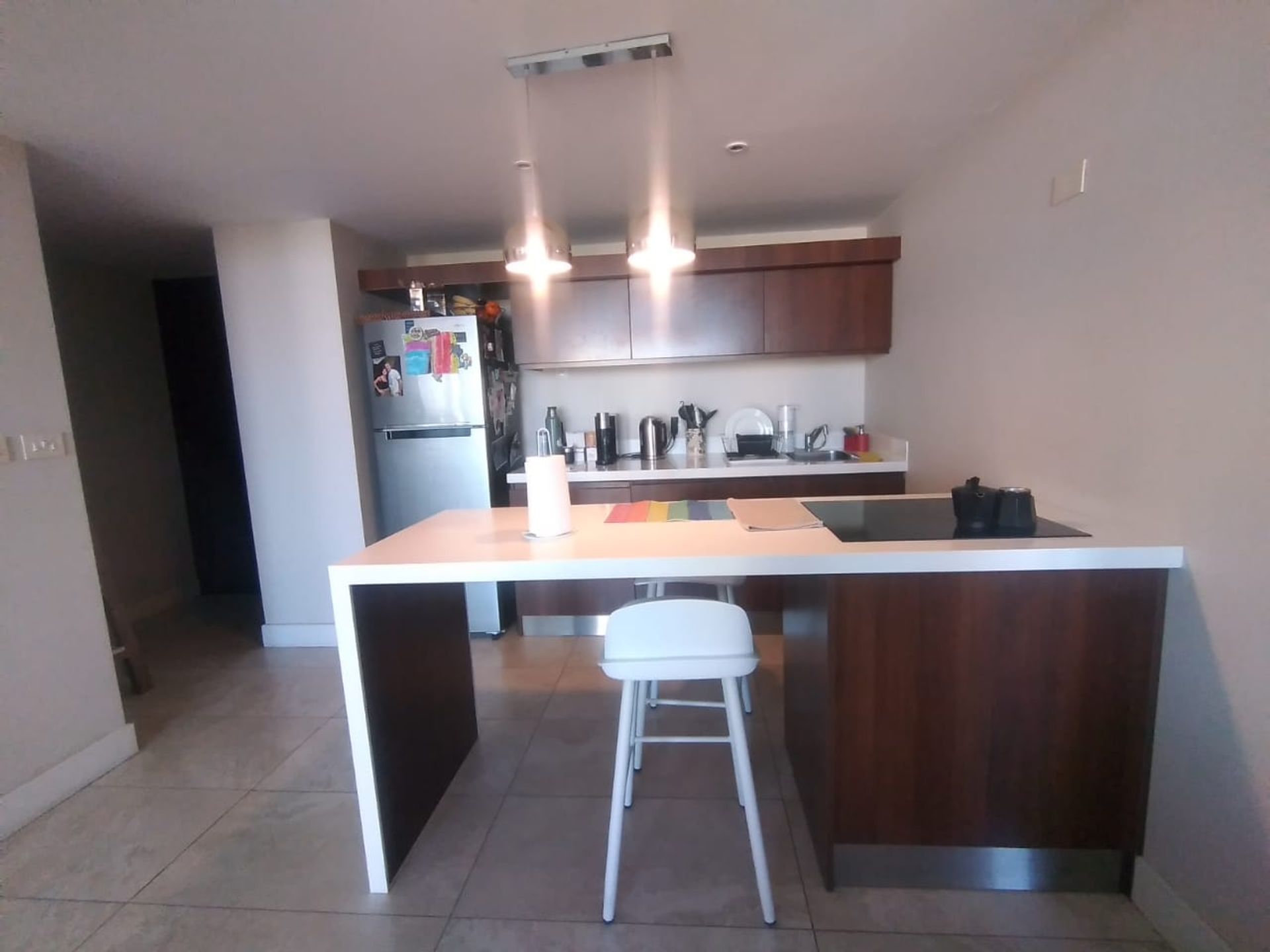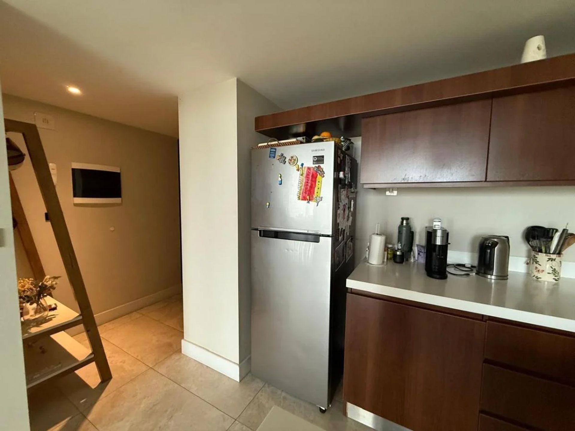 Al entrar, un hall de entrada conduce a un amplio living comedor donde la luz natural se intensifica. La cocina, equipada con muebles altos y bajos y una mesada integrada, alberga un anafe y horno eléctricos, así como un espacio para lava platos. Un toilette de recepción con lavadero complementa la zona de servicio.