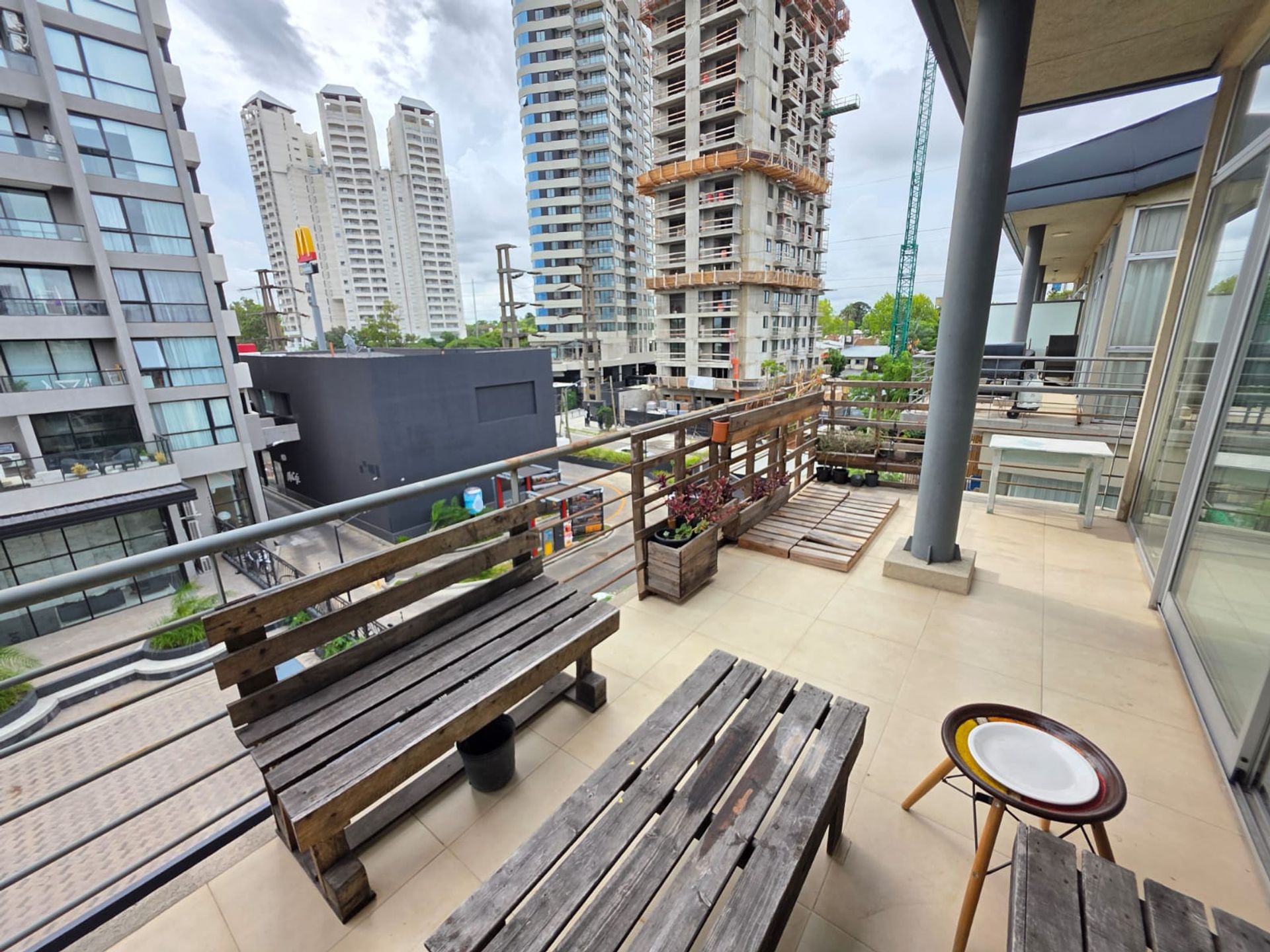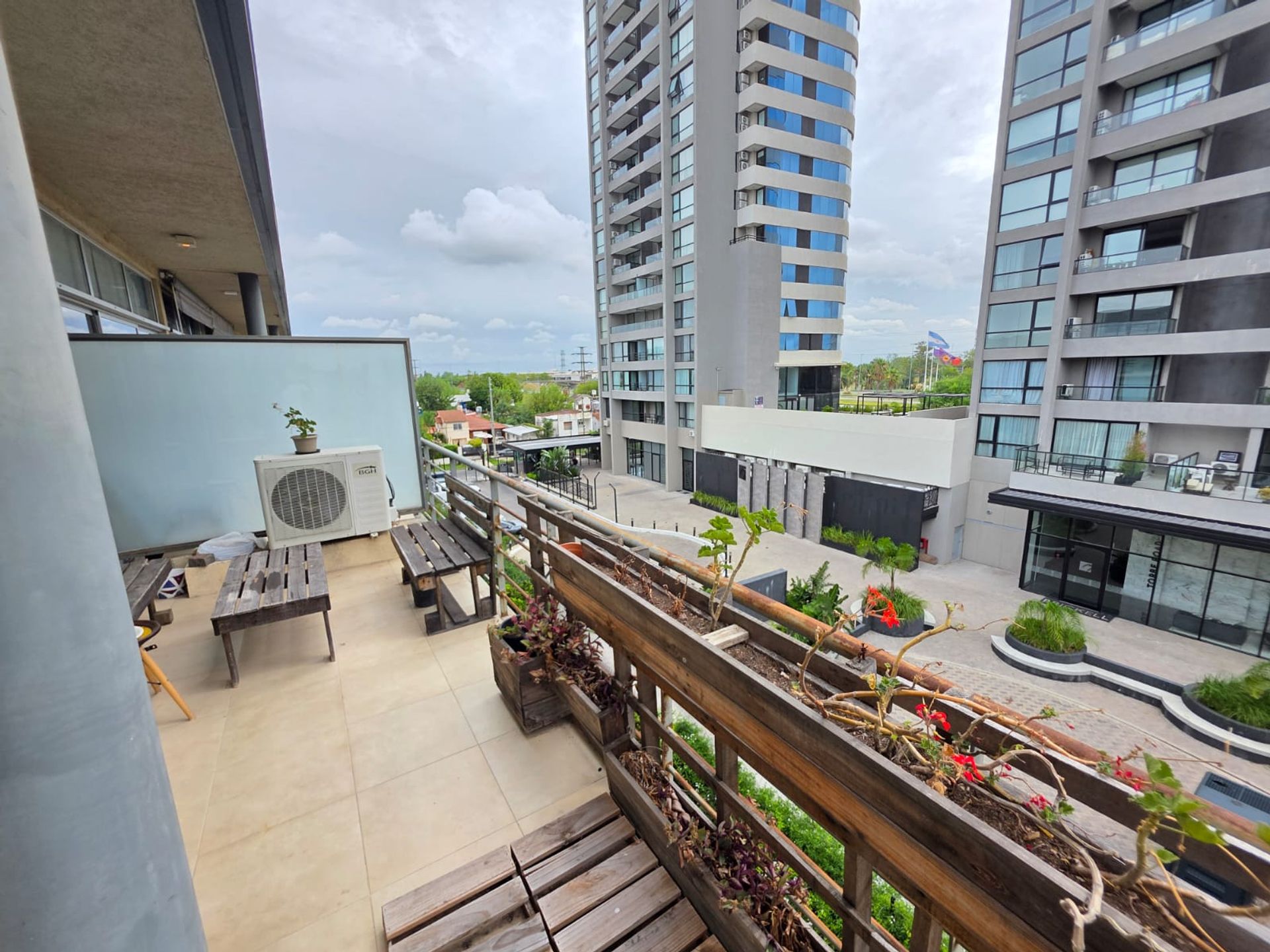 Alquiler de un departamento de 2 ambientes ubicado en el tercer piso de un edificio con amenities. El espacio es muy luminoso, con grandes ventanales que permiten una excelente entrada de luz natural. El living-comedor se abre a un balcón terraza de grandes dimensiones, ideal para disfrutar del aire libre. El dormitorio cuenta con placard y ventilación, mientras que el baño completo dispone de bañera. Además, el inmueble incluye una cochera cubierta.