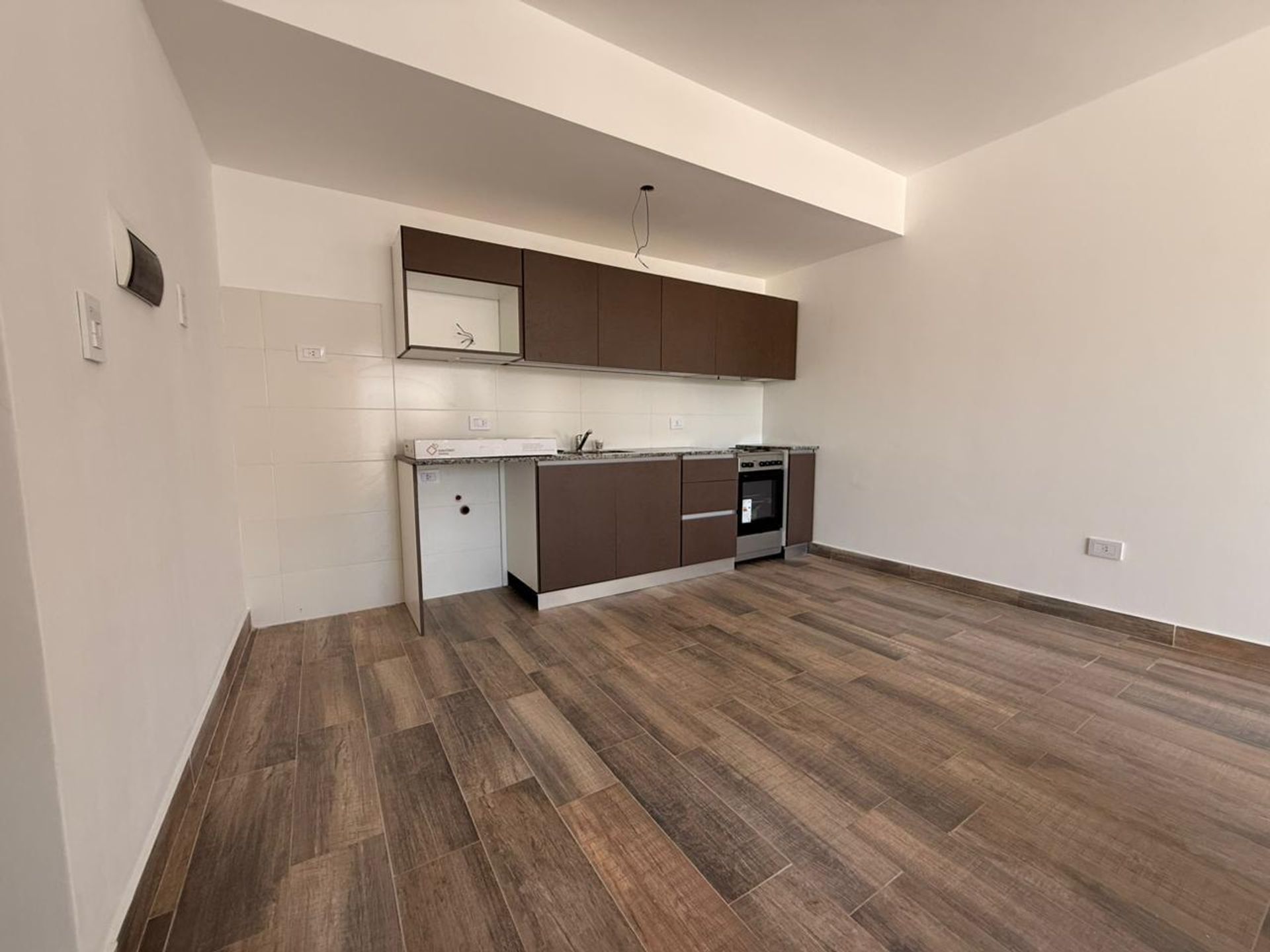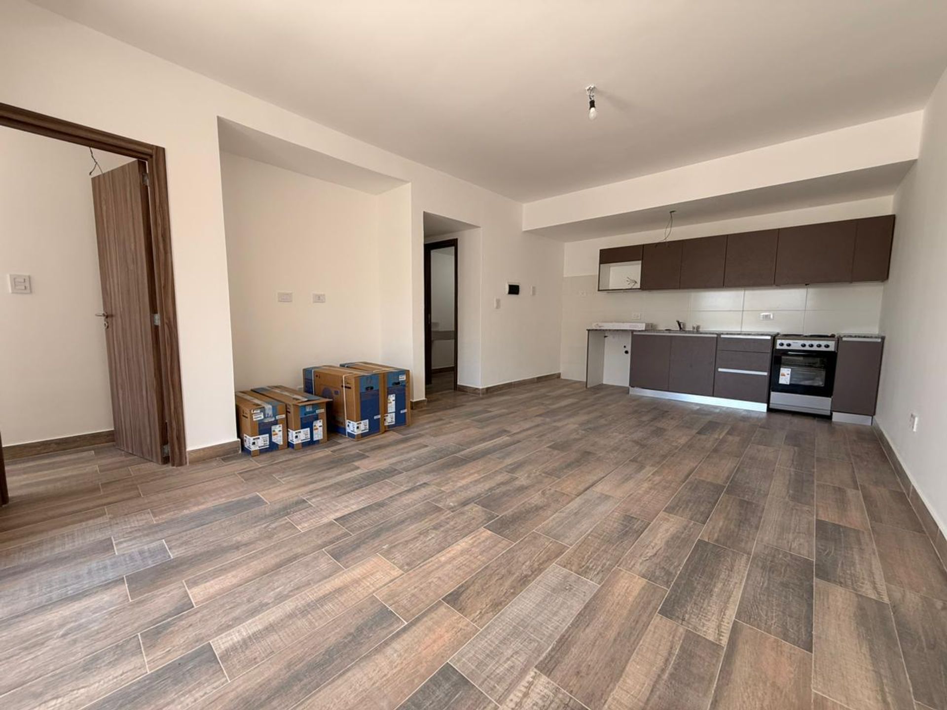 El interior ofrece una cocina equipada con horno eléctrico, muebles de bajo y alto con mesada, que brinda un espacio funcional y moderno. El living comedor, luminoso y amplio, cuenta con aire acondicionado frío/calor y se conecta a un balcón que, a su vez, enlaza con el dormitorio, creando una sensación de amplitud y ofreciendo un espacio al aire libre. En la entrada se encuentra un toilette de recepción.