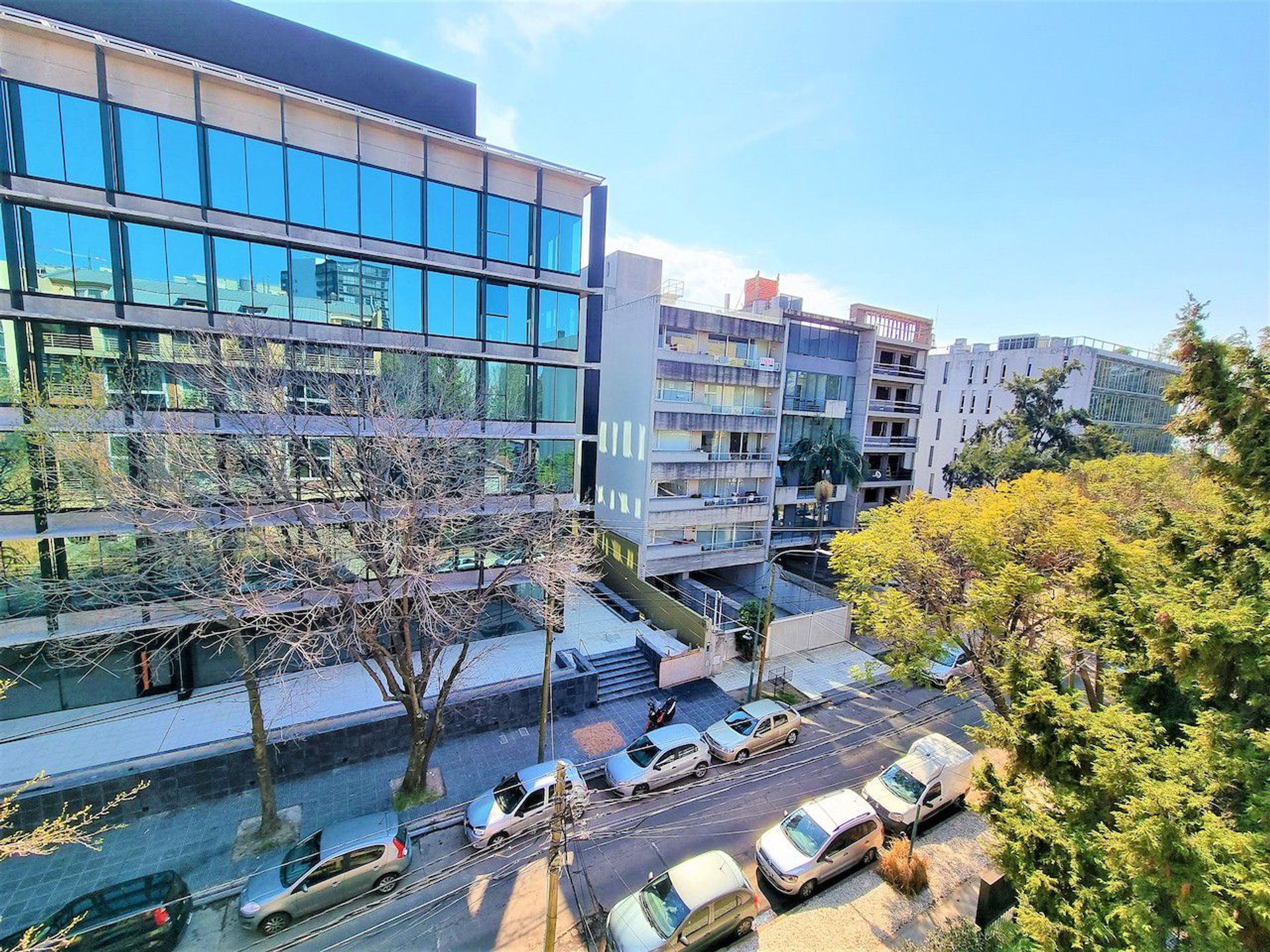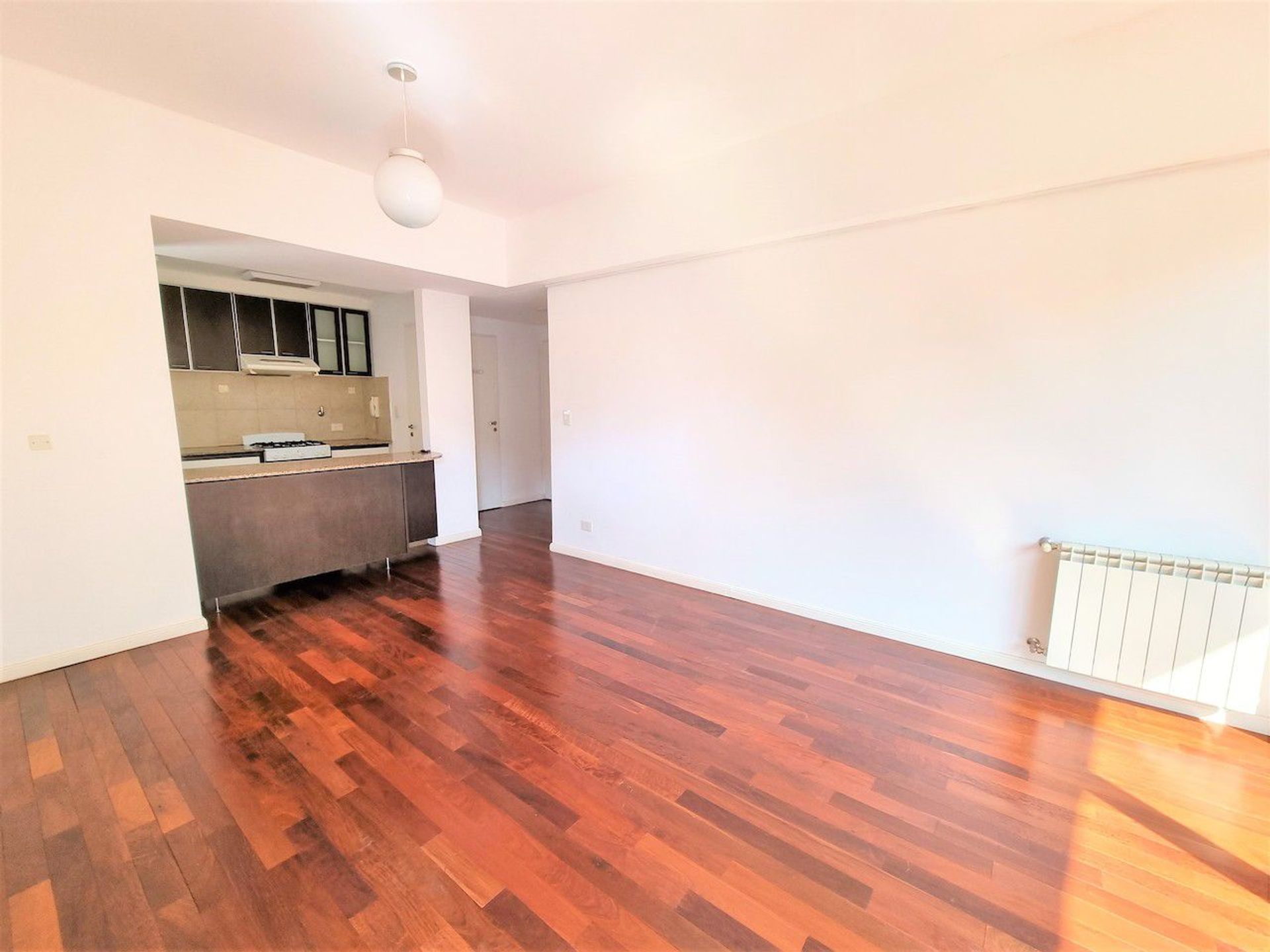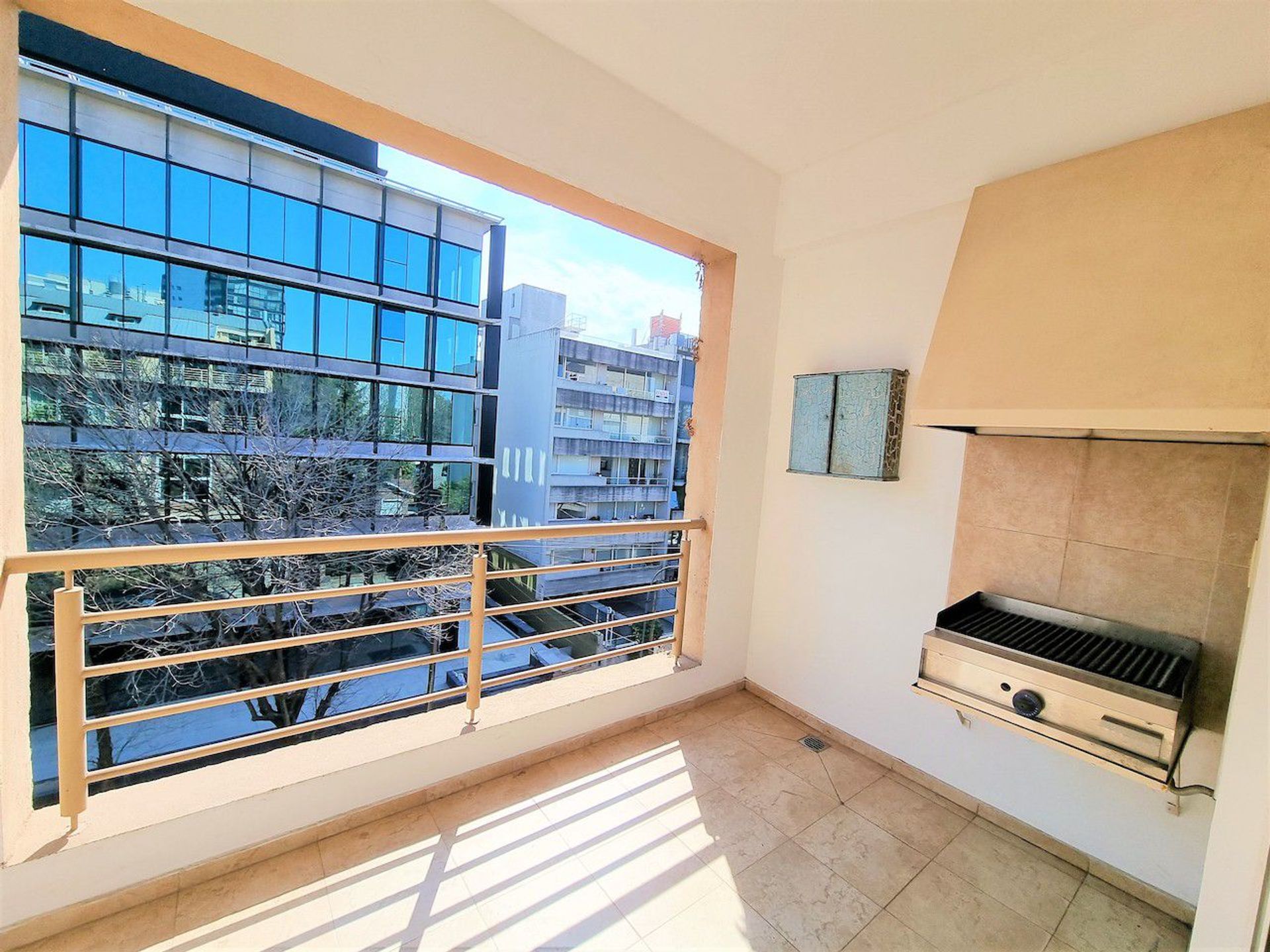 El amplio living–comedor abre a un balcón corrido equipado con parrilla, mientras que la cocina integrada dispone de isla desayunadora. Un lavadero independiente y un toilette de recepción complementan la distribución. El dormitorio, con salida al balcón, incluye placards y baño completo en suite. Los pisos de madera y los amplios ventanales al piso, junto con rollers y luminarias instaladas, realzan la sensación de amplitud y luz. El departamento ha sido recientemente pintado y se encuentra en excelente estado general. Además, incluye una cochera.
