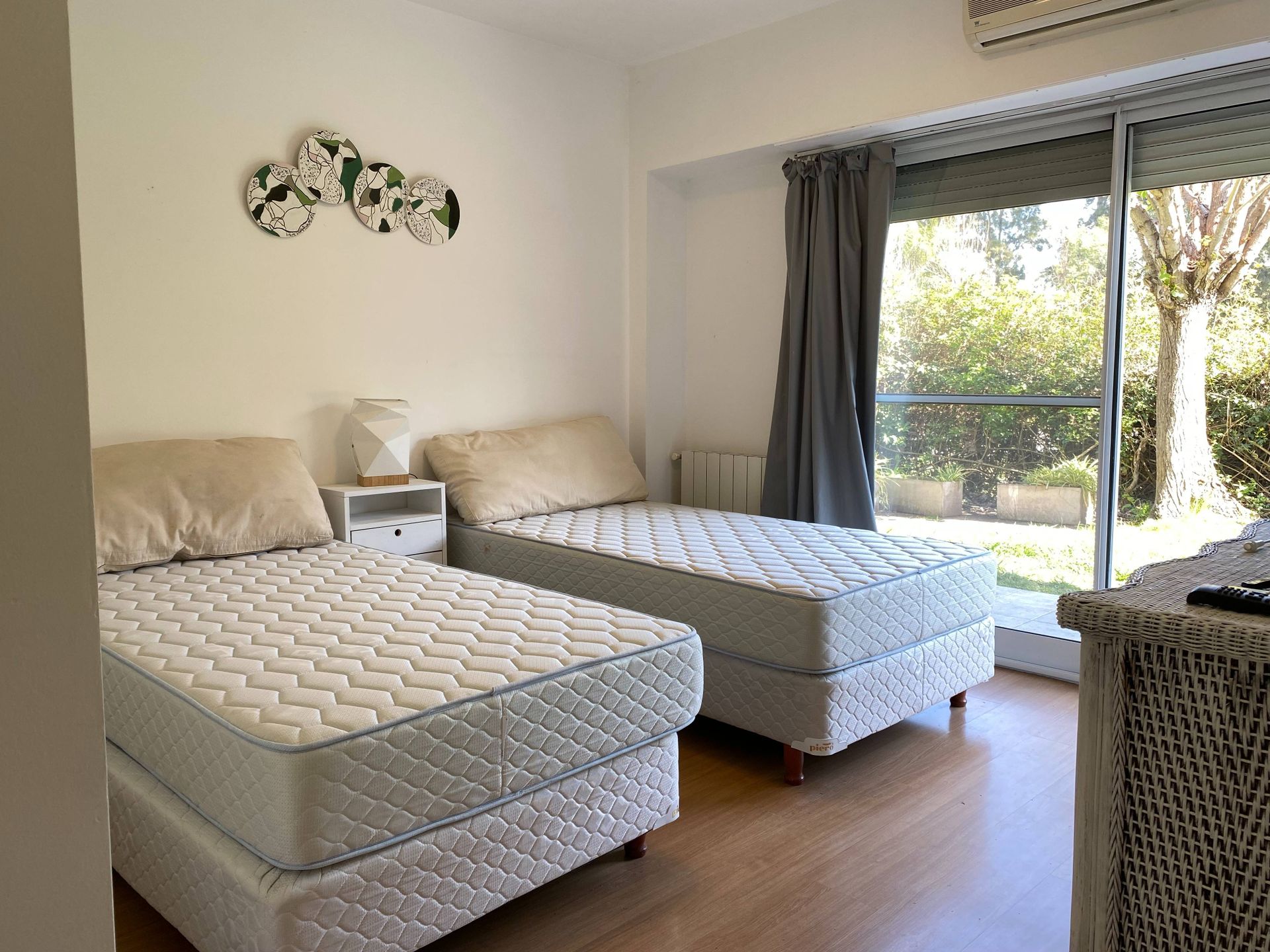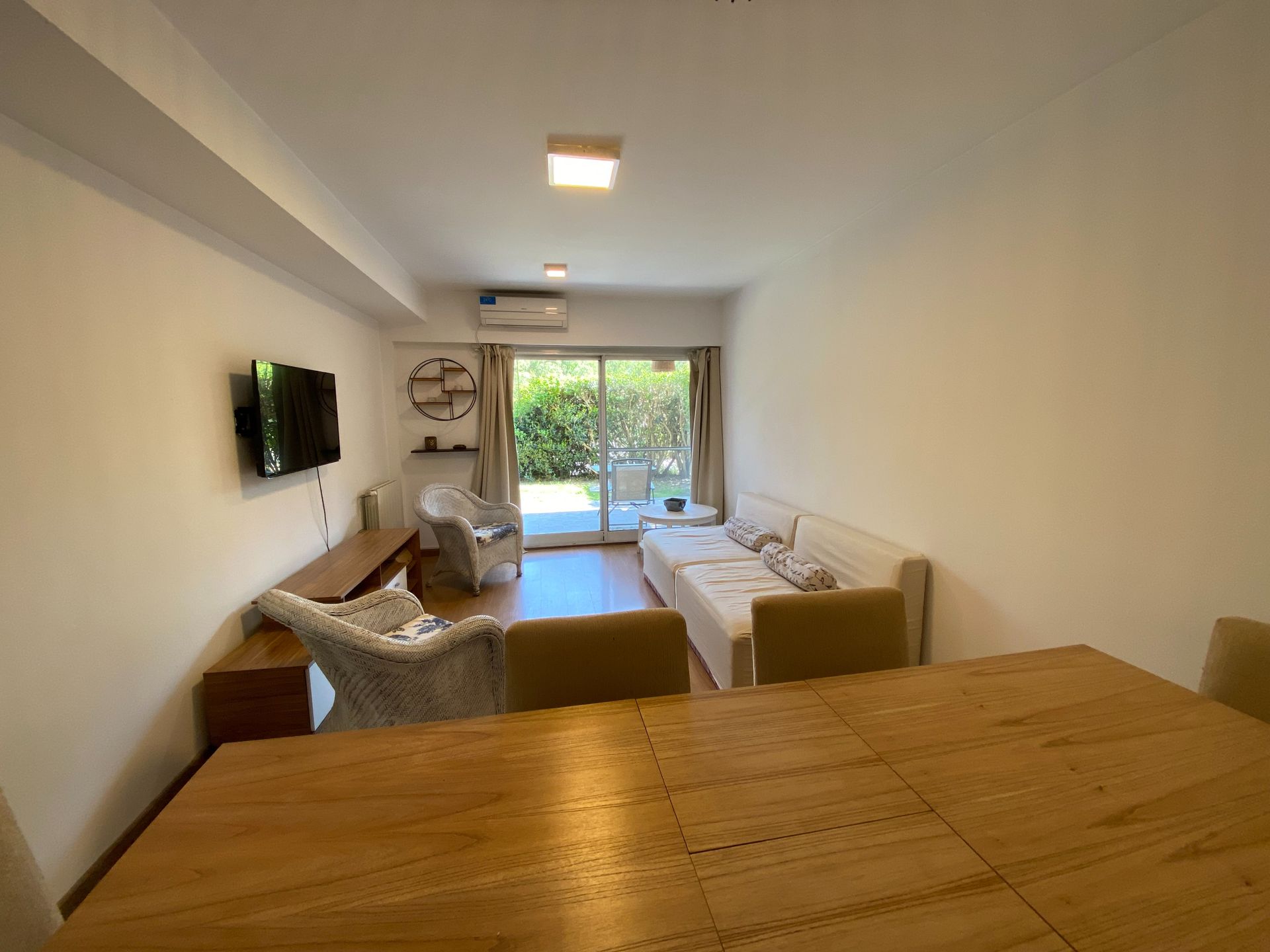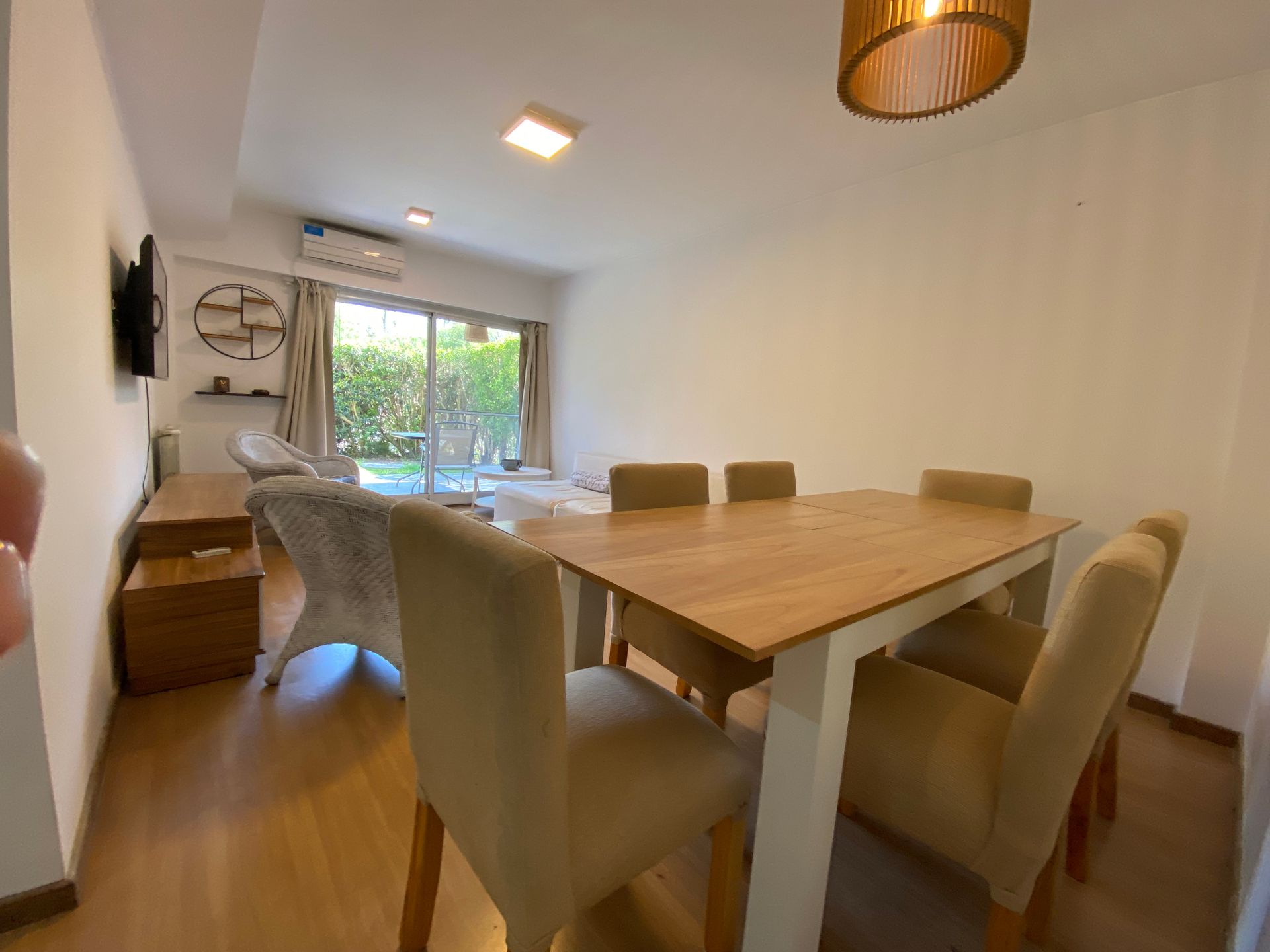 3 ambientes en planta baja con jardín privado, ideal para quienes buscan comodidad y estilo en un entorno tranquilo. El apartamento cuenta con dos dormitorios, baño completo y toilette exterior, cocina con acceso directo al jardín y una galería equipada con parrilla, perfecta para reuniones al aire libre. La orientación noreste garantiza abundante luz natural durante todo el día. Aire acondicionado está instalado en los tres ambientes y la cochera fija descubierta ofrece seguridad y conveniencia.
