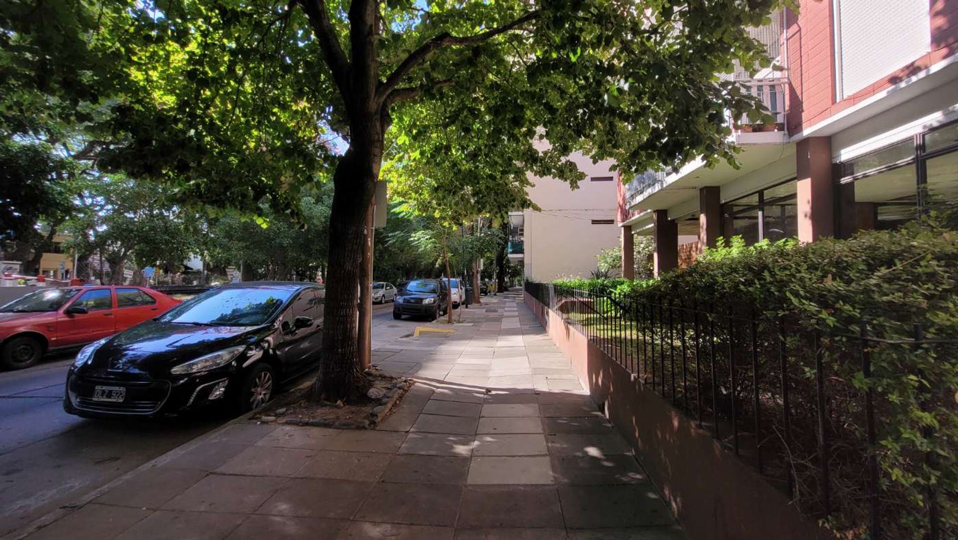 La propiedad cuenta con tres ambientes: un amplio living comedor de 18,37 m² con ventanal que permite la entrada de luz natural y una vista tranquila a los jardines del contrafrente. La cocina, de 6,50 m², dispone de espacio suficiente para un lavarropas y una zona de preparación cómoda. Dos habitaciones de 6 m² y 9 m² respectivamente, cada una con placard empotrado, persiana, ventilador de techo y acceso directo a un balcón con vistas despejadas al verde. El baño completo, de 2,34 m², está equipado con las instalaciones necesarias para un uso funcional.