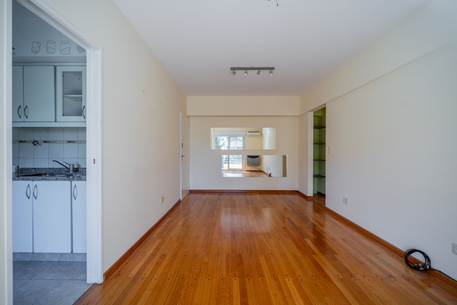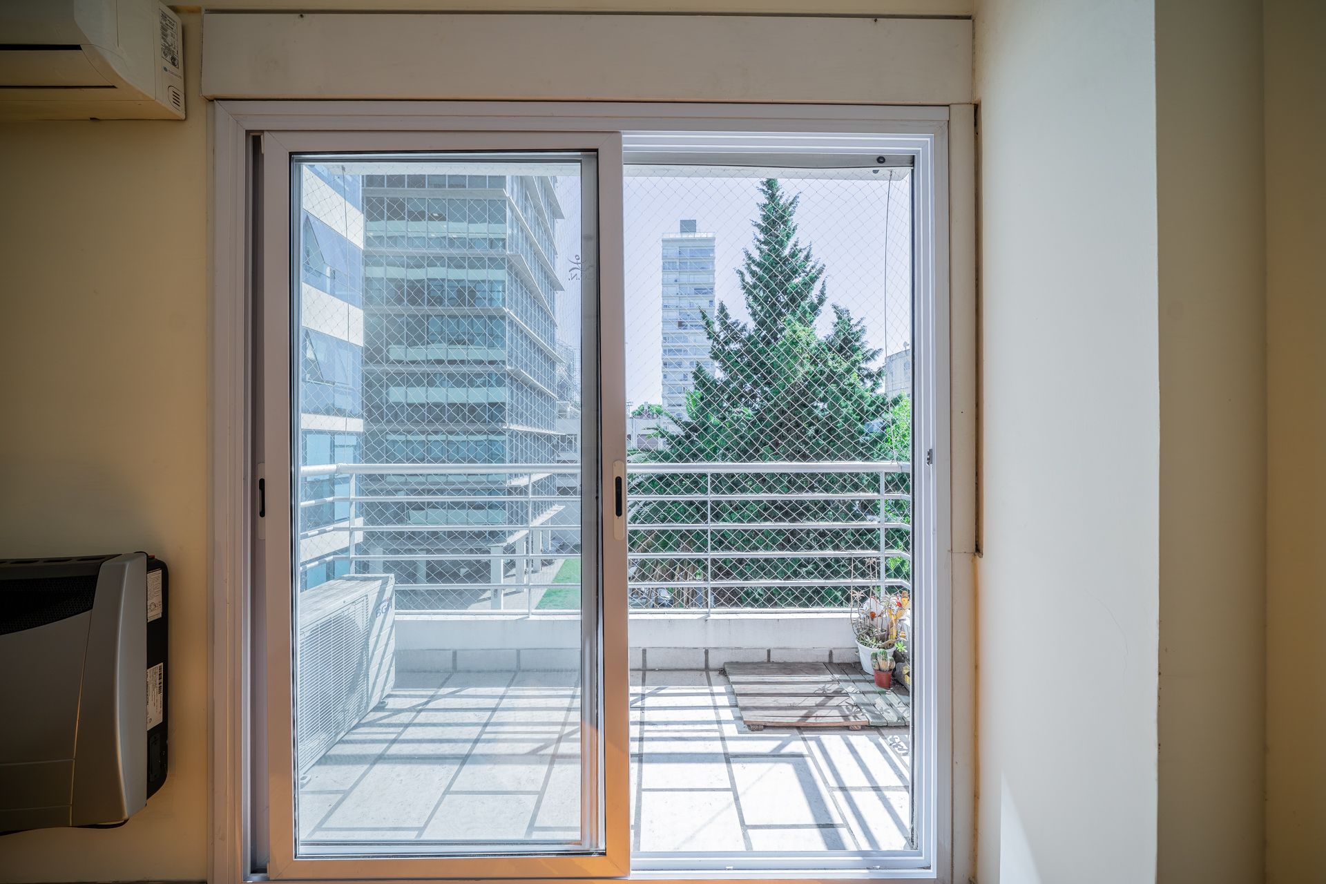 El gran living comedor cuenta con salida a balcón orientado al oeste, ofreciendo una vista atractiva y un ambiente acogedor. El suelo es de estilo madera, complementado con calefactor a gas y aire acondicionado split con función de frío y calor. Mosquitero y persiana aseguran confort y privacidad.