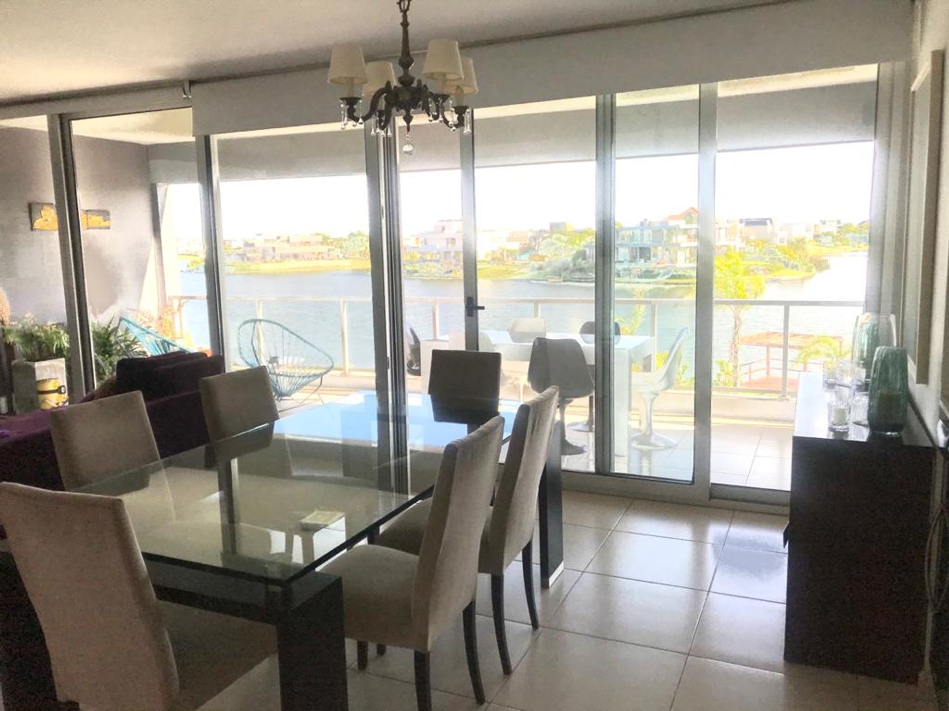 Departamento de 4 ambientes ubicado en el edificio Enyoi, en Islas del Golf, Nordelta, con una vista privilegiada al lago central. El diseño interior combina un amplio living comedor con cocina integrada y barra, ideal para espacios de convivencia. La zona de lavado y el toilette complementan la funcionalidad del conjunto. El dormitorio principal, en suite, ofrece confort y privacidad, mientras que los dos dormitorios adicionales comparten un baño completo. Un amplio balcón con parrilla a gas invita a disfrutar de la brisa del lago. Todos los ambientes cuentan con aire acondicionado y calefacción por losa radiante. La propiedad dispone de dos cocheras, una techada y otra descubierta, además de una baulera. El complejo residencial incluye una house principal, canchas de tenis, una pileta y servicio de laundry.