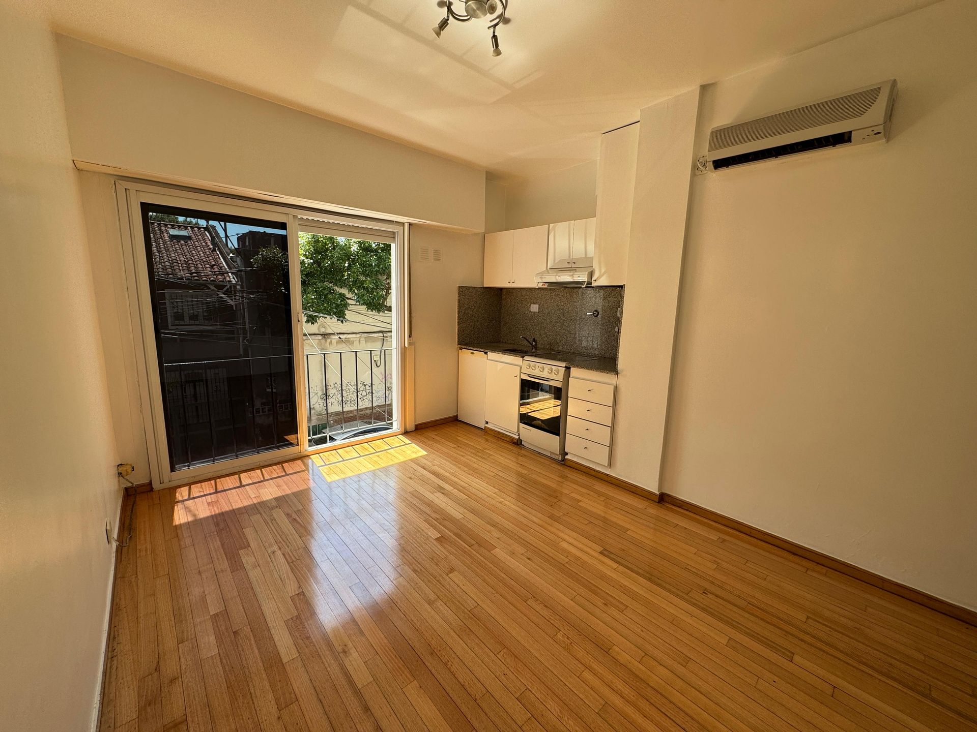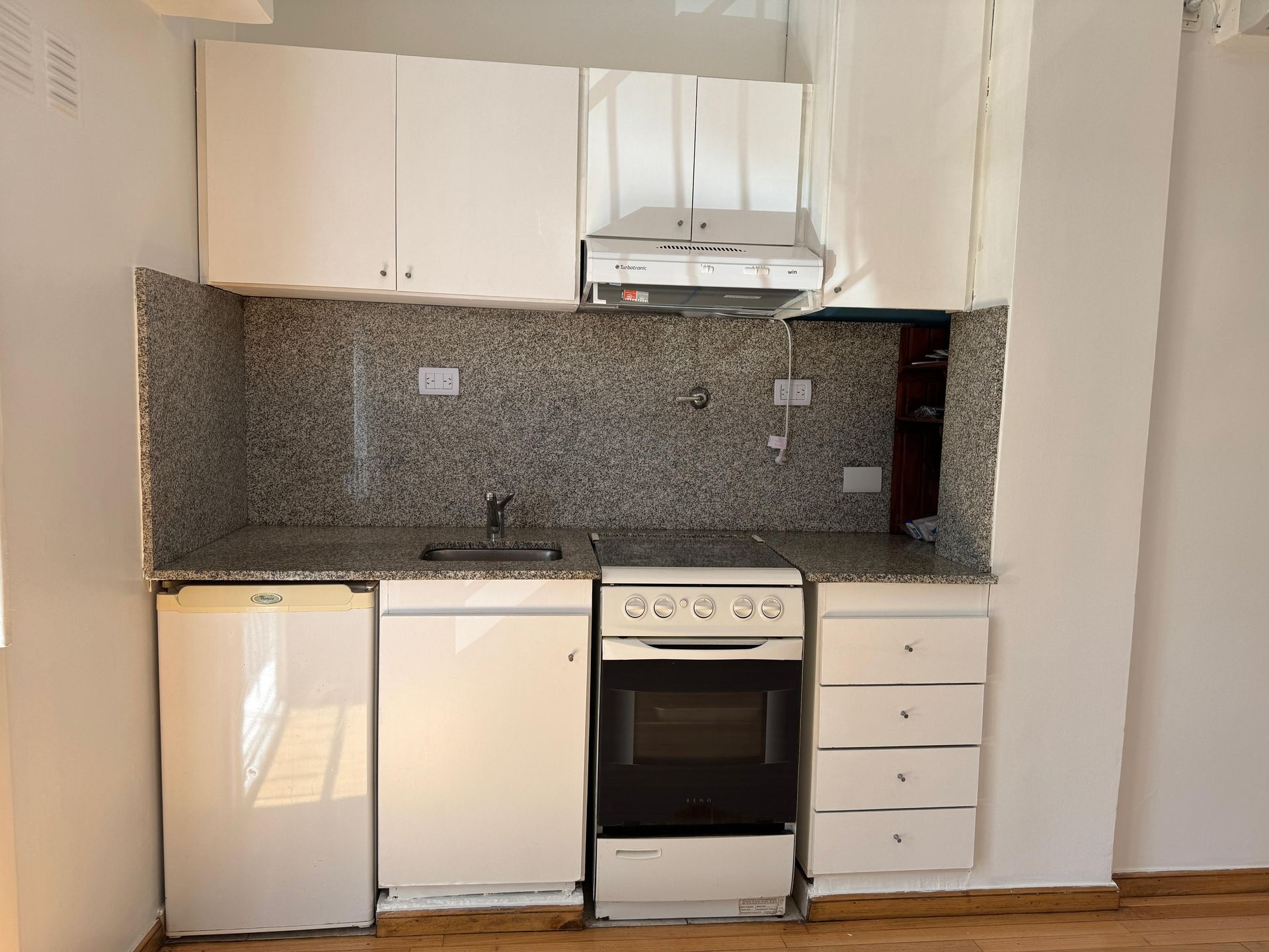 El primer piso, accesible por escalera, cuenta con una cocina totalmente equipada que incluye horno, anafe a gas, heladera bajo mesada y extractor. El termotanque de alta recuperación garantiza agua caliente eficiente. La electricidad ha sido renovada, con nuevas térmicas, disyuntor y todos los apliques de iluminación instalados. En el living/comedor se instaló persiana y el baño completo dispone de bañera, mampara, lucarna y ventilación natural. El piso de madera natural aporta elegancia y calidez al espacio. El departamento fue refaccionado recientemente, listo para entrar a vivir sin necesidad de ajustes.
