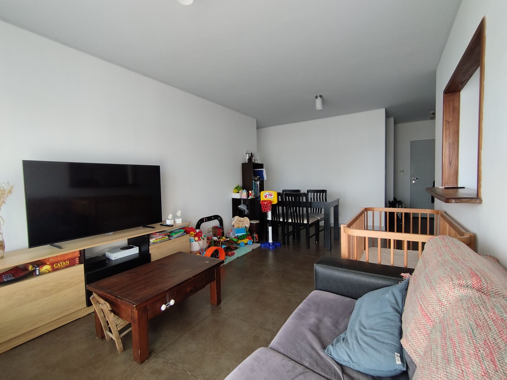 La cocina independiente está equipada con muebles de calidad superior, anafe moderno, horno, extractor y una ventana que permite una vista al exterior. El lavadero incorporado añade practicidad al diseño. El salón-comedor, iluminado por abundante luz natural, dispone de aire acondicionado split frío/calor y acceso a un balcón corrido que invita a disfrutar de las vistas de la zona.