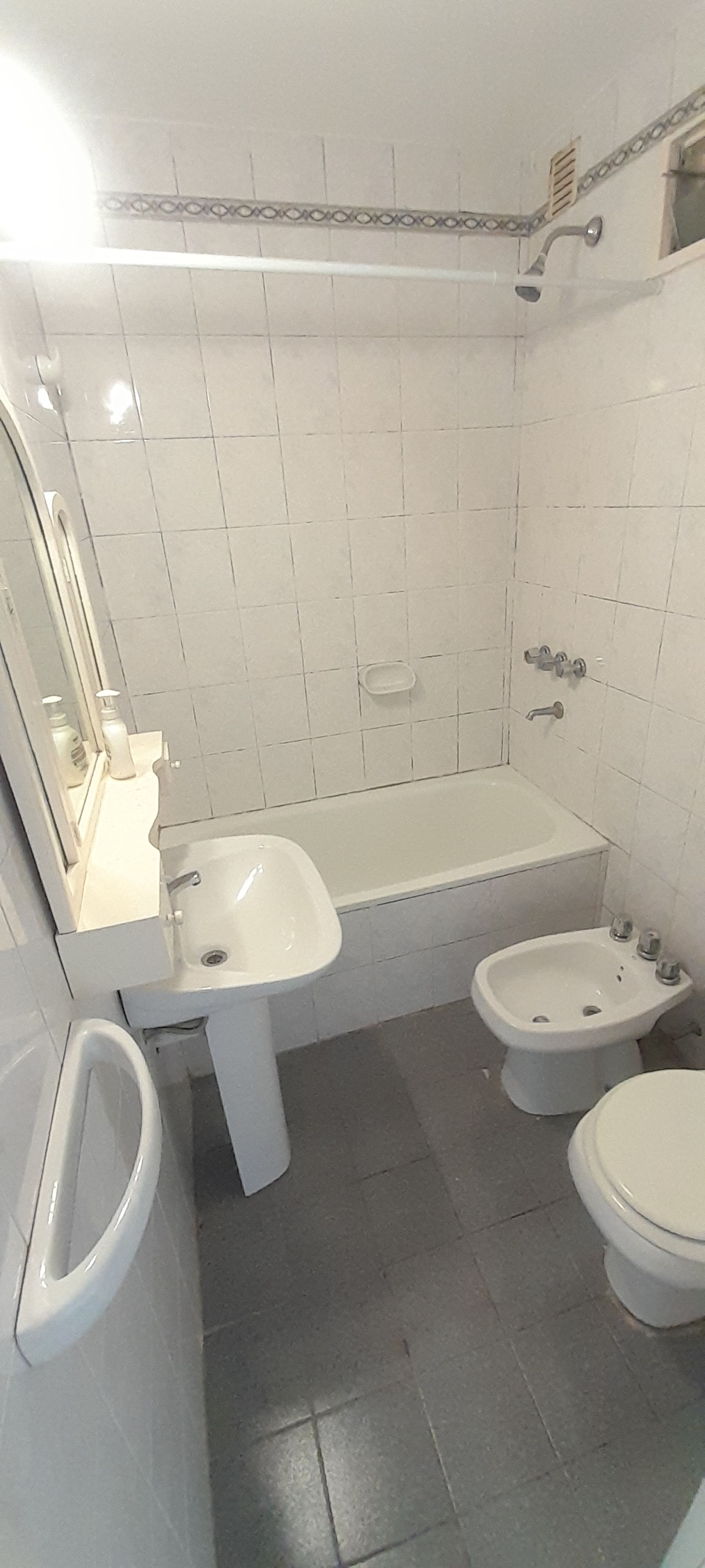 El dormitorio principal es luminoso y cuenta con un placard integrado y aire acondicionado, garantizando un ambiente fresco y ordenado. El baño completo incluye bañera, ofreciendo un espacio de relajación y confort.