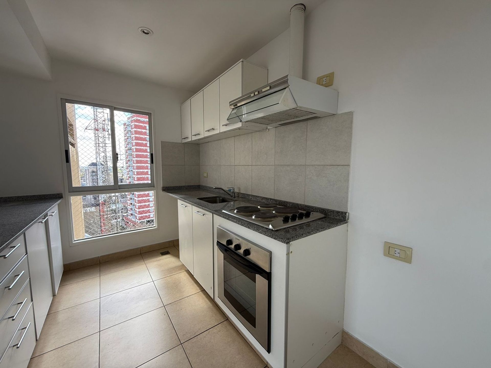 La unidad cuenta con un amplio living-comedor con cocina integrada, equipada con horno eléctrico, cocina eléctrica, extractor y muebles de guardado bajo y sobre mesada. Un gran ventanal aporta luz natural y ventilación directa a la cocina, creando un ambiente abierto y cómodo.