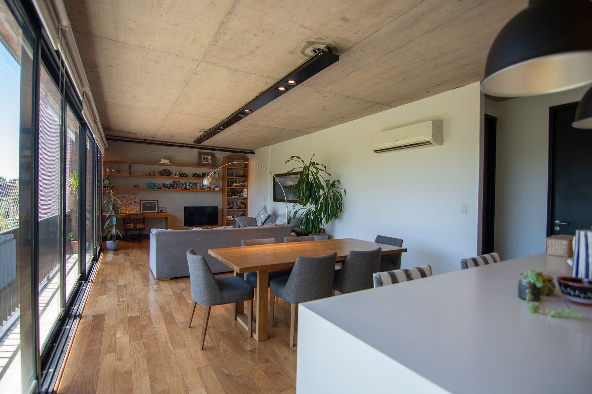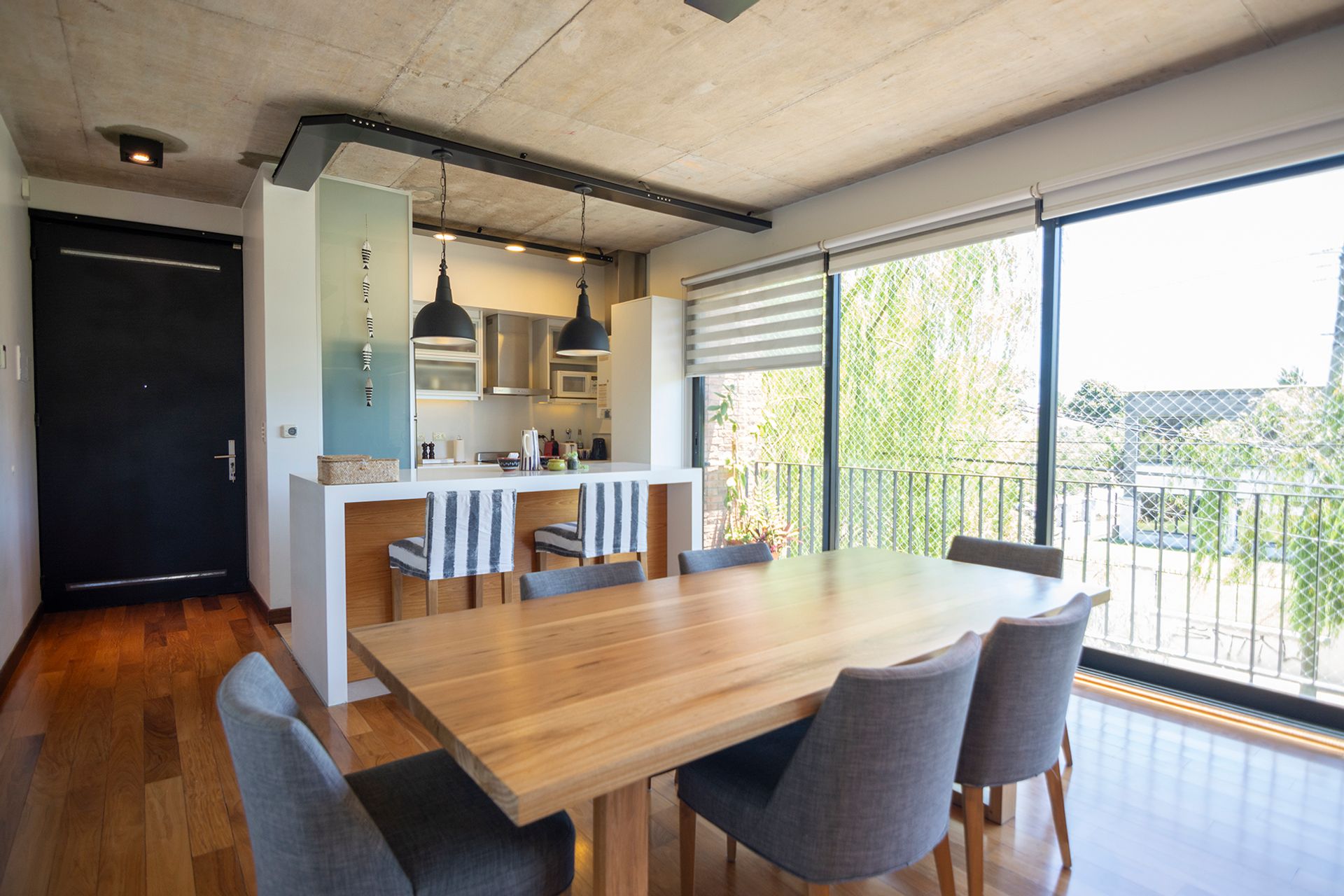 Increíble departamento ubicado en la mejor zona de Martínez. El amplio living comedor, con cocina integrada, se abre a una luminosa vista verde que inunda el espacio con luz natural.