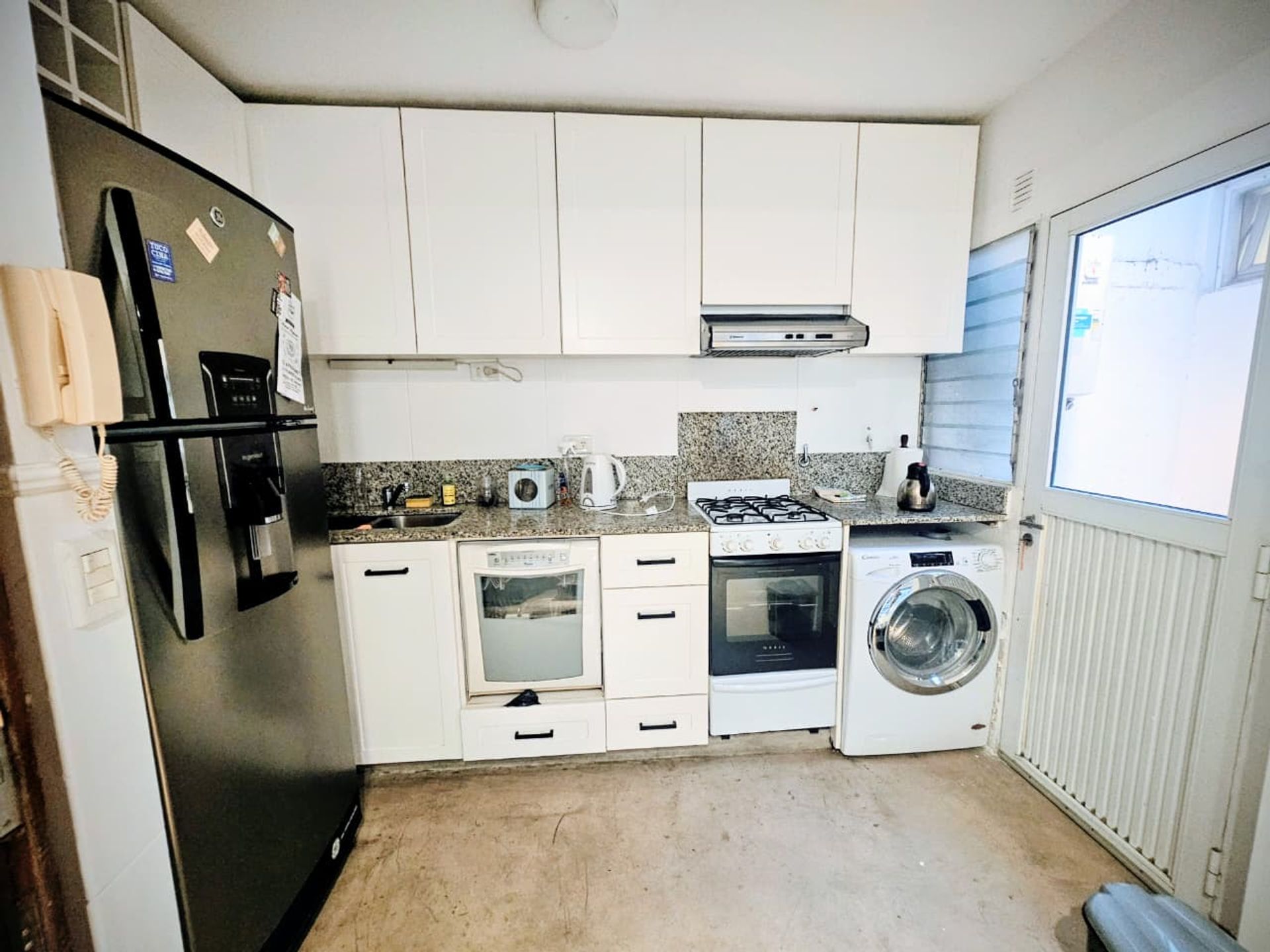 La cocina integral está equipada con heladera, lavavajillas, lavaplatos automático, cocina a gas con horno, sartén, pava eléctrica y demás electrodomésticos de primera calidad, ofreciendo un espacio funcional y cómodo para la preparación de comidas.