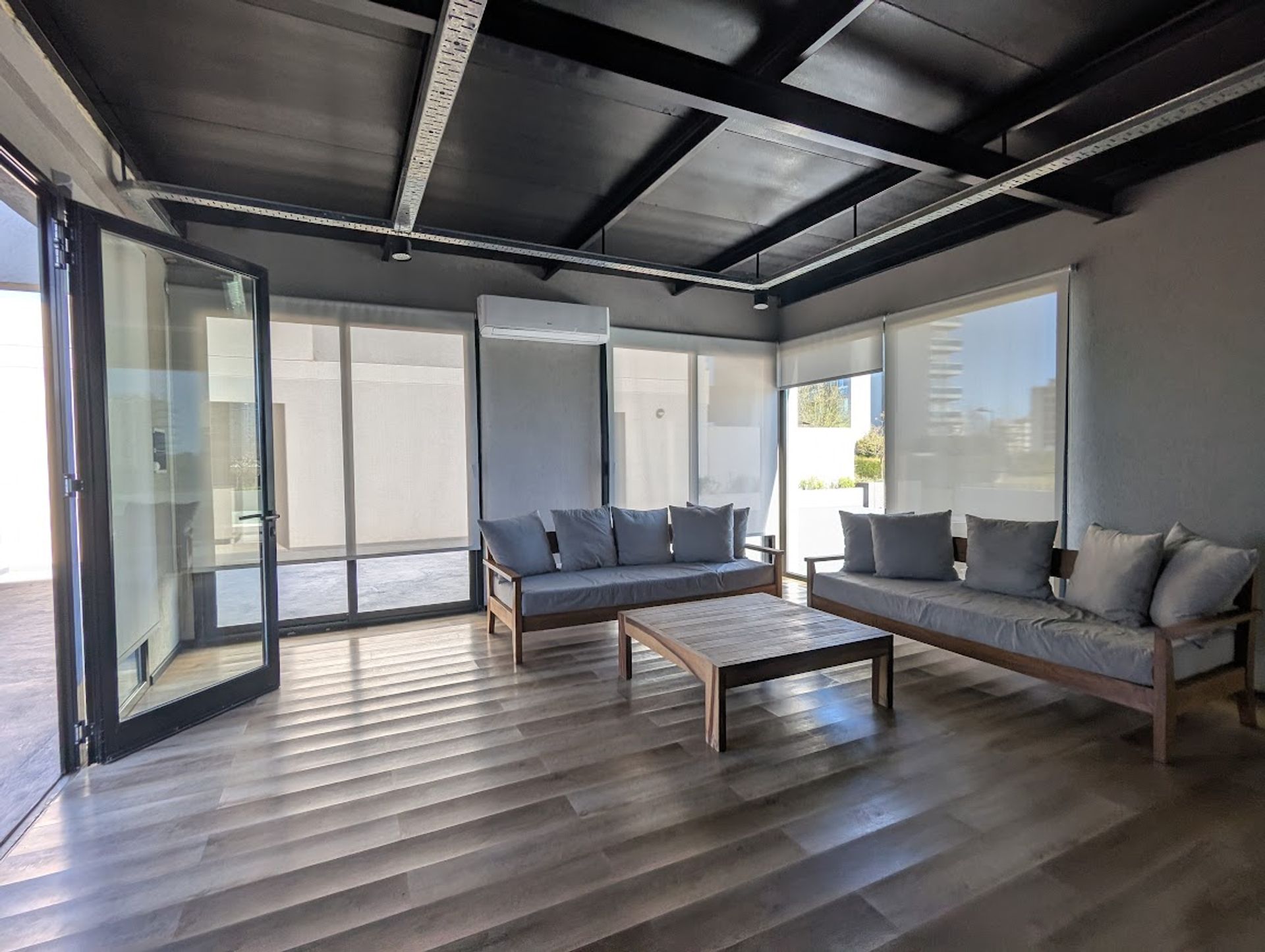 Aberturas con vidrios DVH de aluminio color negro, techos de losa y acabados de alta calidad complementan la elegancia del interior. El aire acondicionado en living y dormitorio, junto con la calefacción por losa radiante, garantizan confort durante todo el año, mientras que la cochera cubierta fija añade practicidad y seguridad.