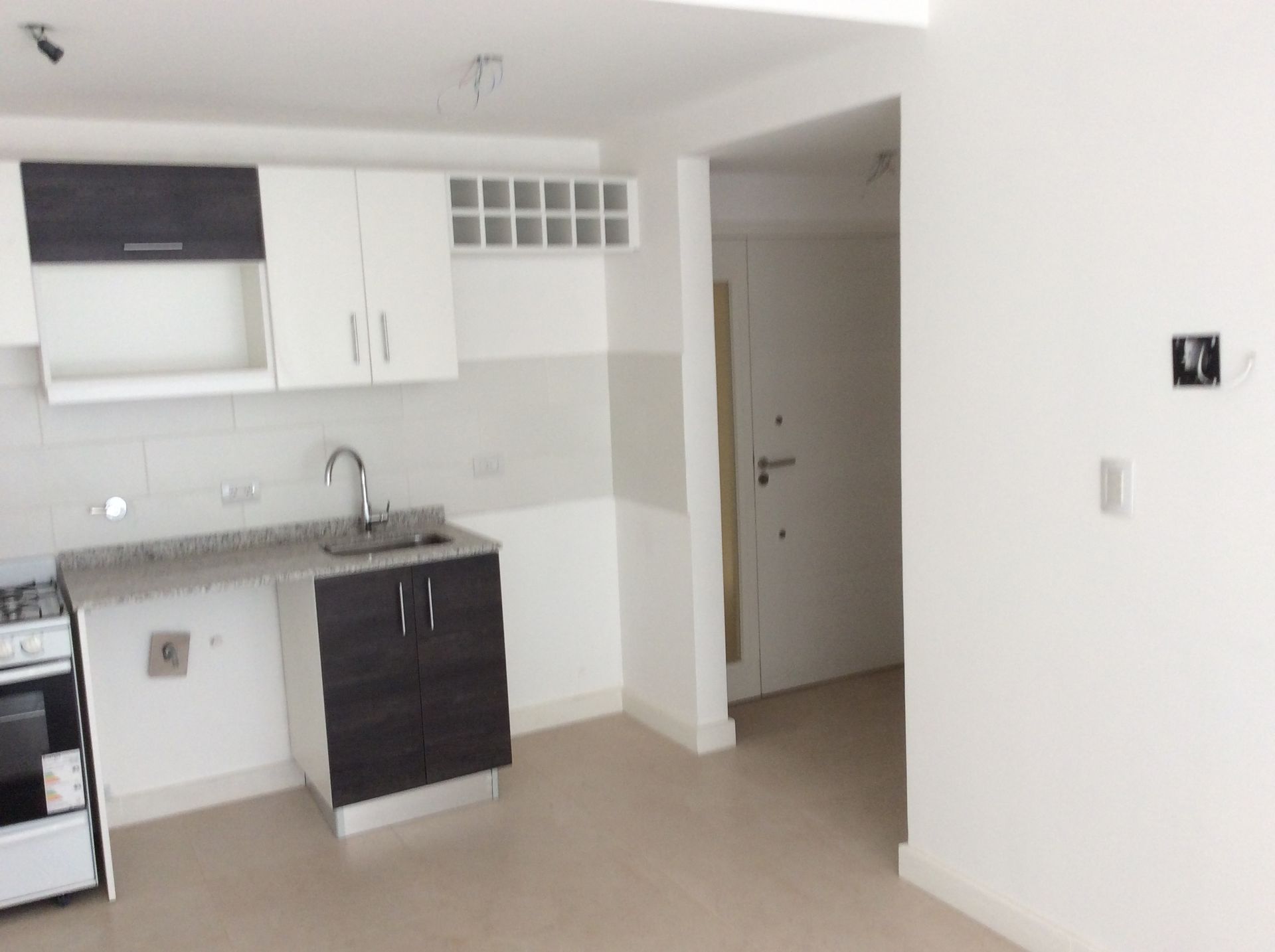 El amplio living comedor presenta modernos pisos y ventanales de puertas corredizas que conectan directamente con el balcón, garantizando una excelente ventilación y una vista atractiva. La cocina integrada, con muebles de gran capacidad de almacenamiento, mesada de granito y gas natural, complementa la funcionalidad del conjunto. El dormitorio, luminoso y espacioso, dispone de baño en suite, placard con puertas corredizas espejadas y acabados de alta calidad. El toilette, con pileta de cerámica artesanal, añade un toque de distinción.