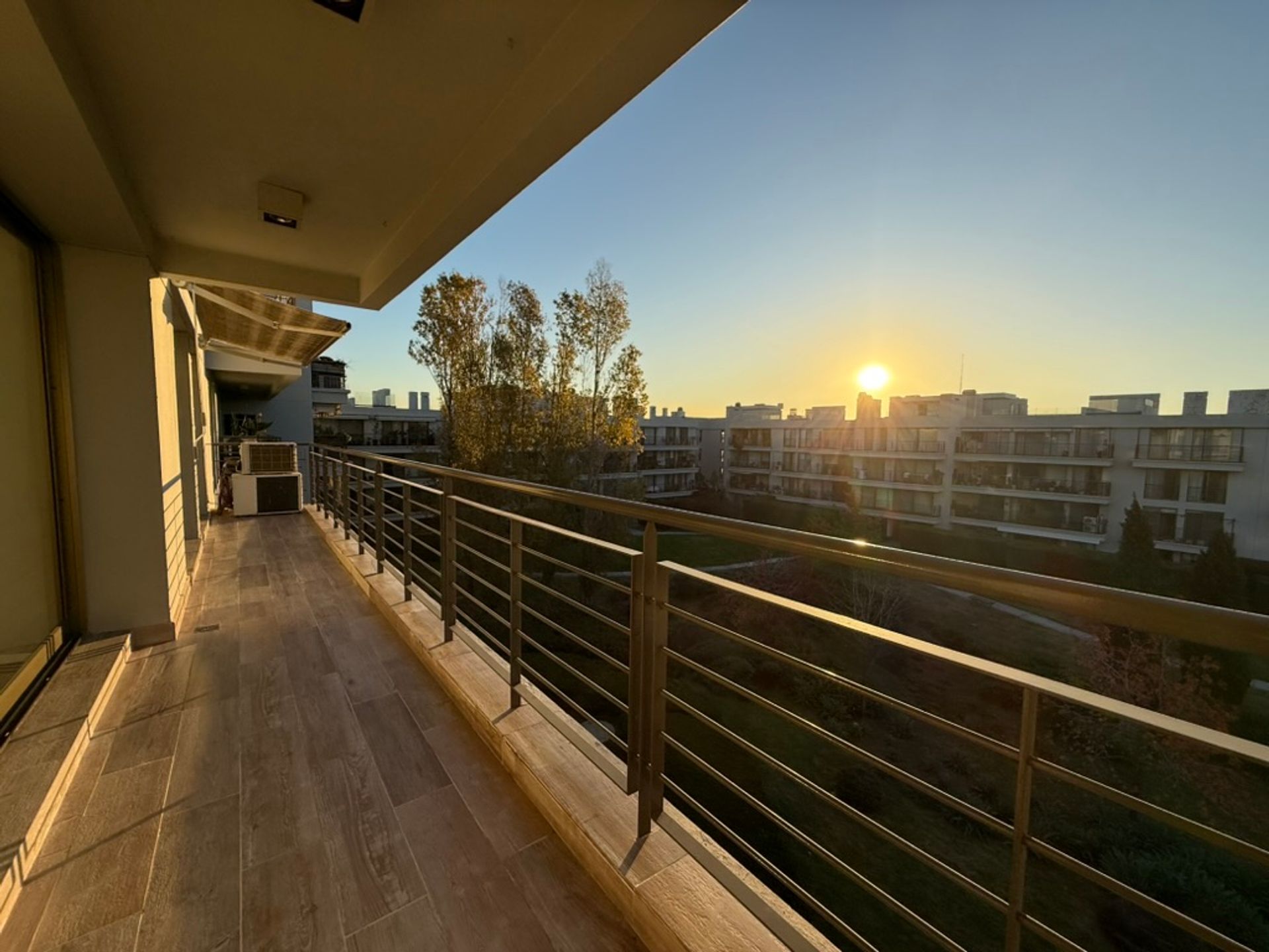 El amplio balcón, con piso de porcelanato y parrilla, invita a disfrutar de momentos al aire libre. Se incluye lavadero externo, calefacción por losa radiante y aires acondicionados en todos los ambientes, excepto en la cocina.