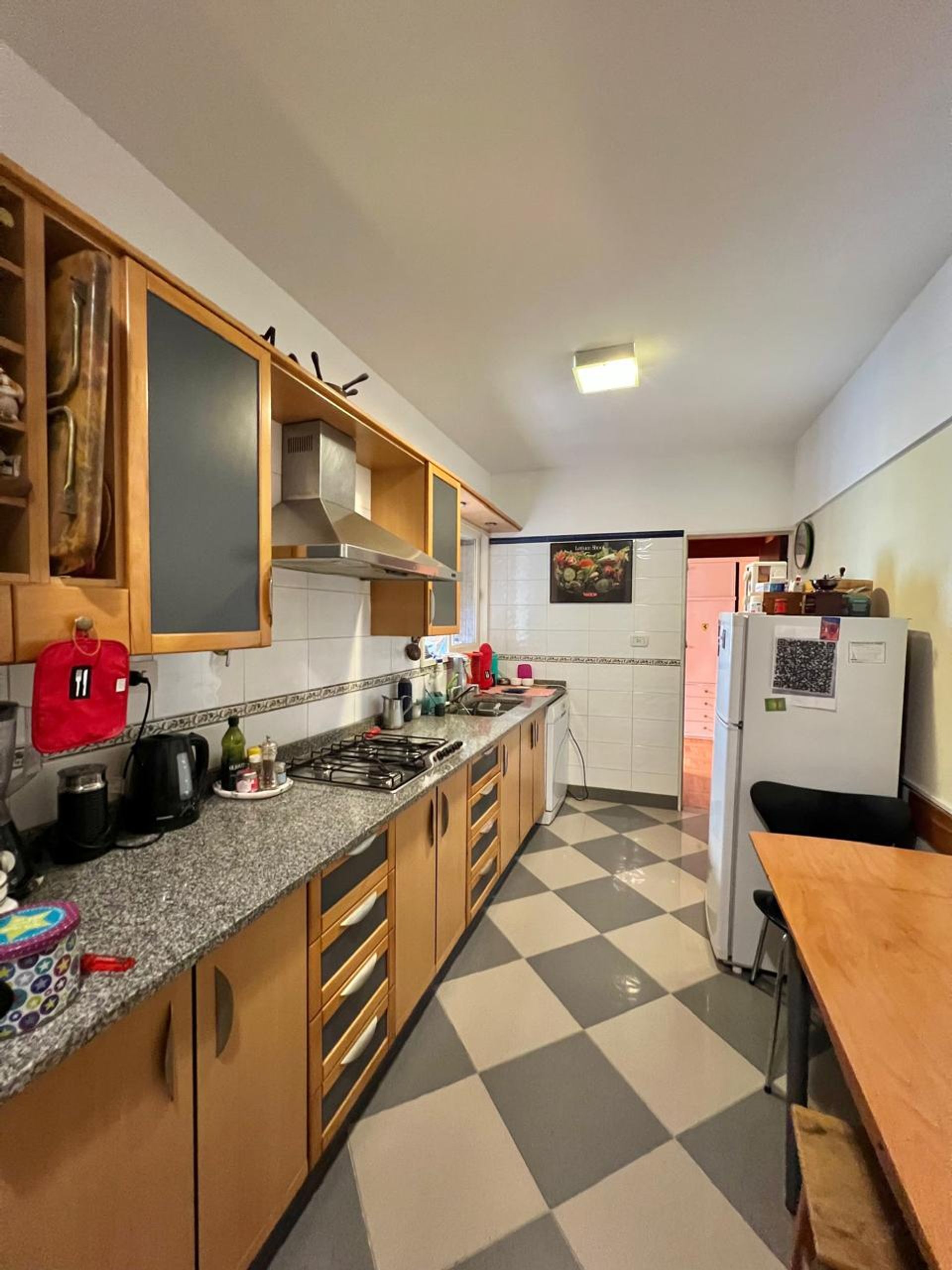 Lavadero independiente y dependencia de servicio con baño, ideal para familias o espacios de trabajo. Cocina independiente con muebles bajo mesada, alacenas de madera, cocina a gas, campana de acero inoxidable y doble bacha. Espacio para comedor diario y buena ventilación.