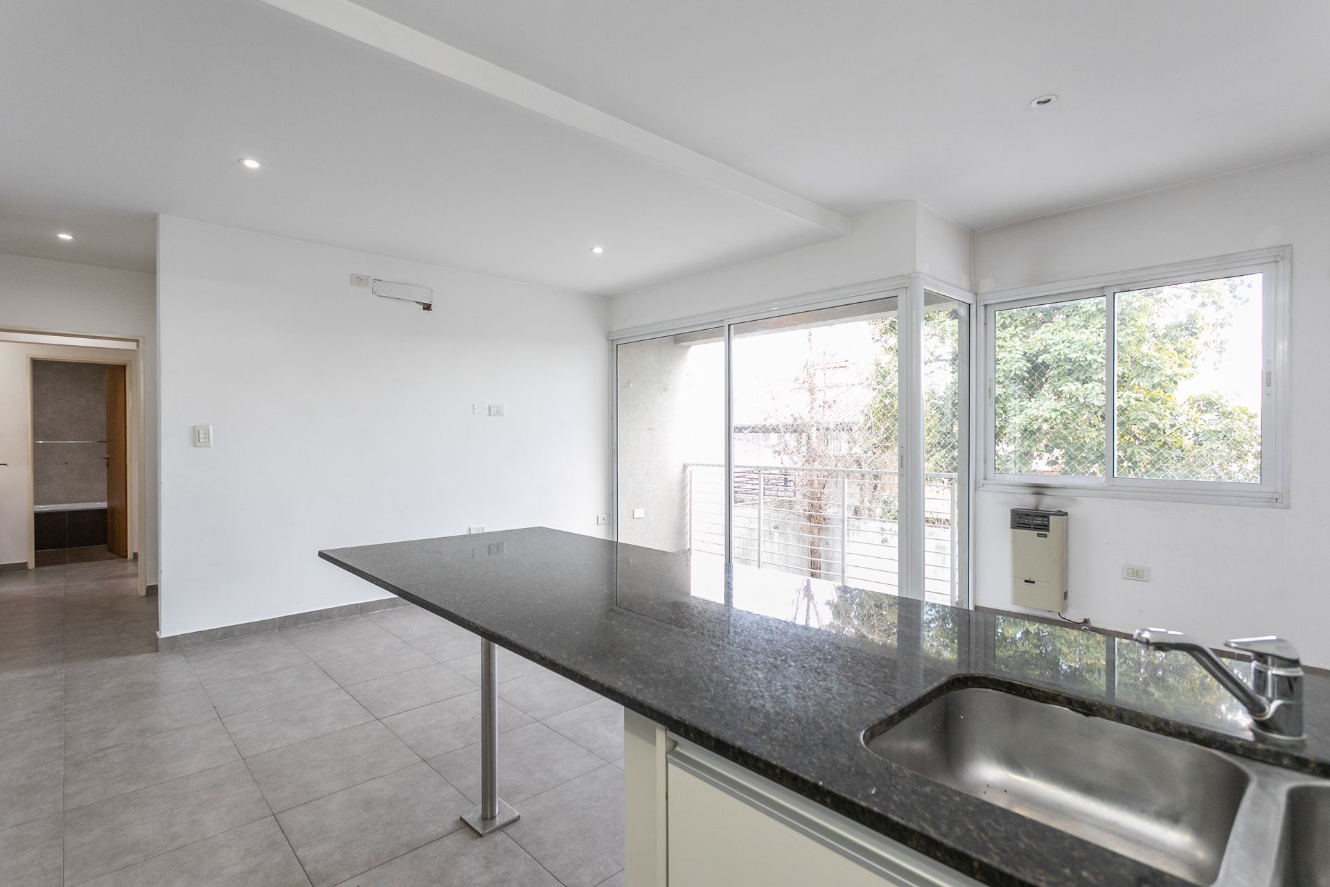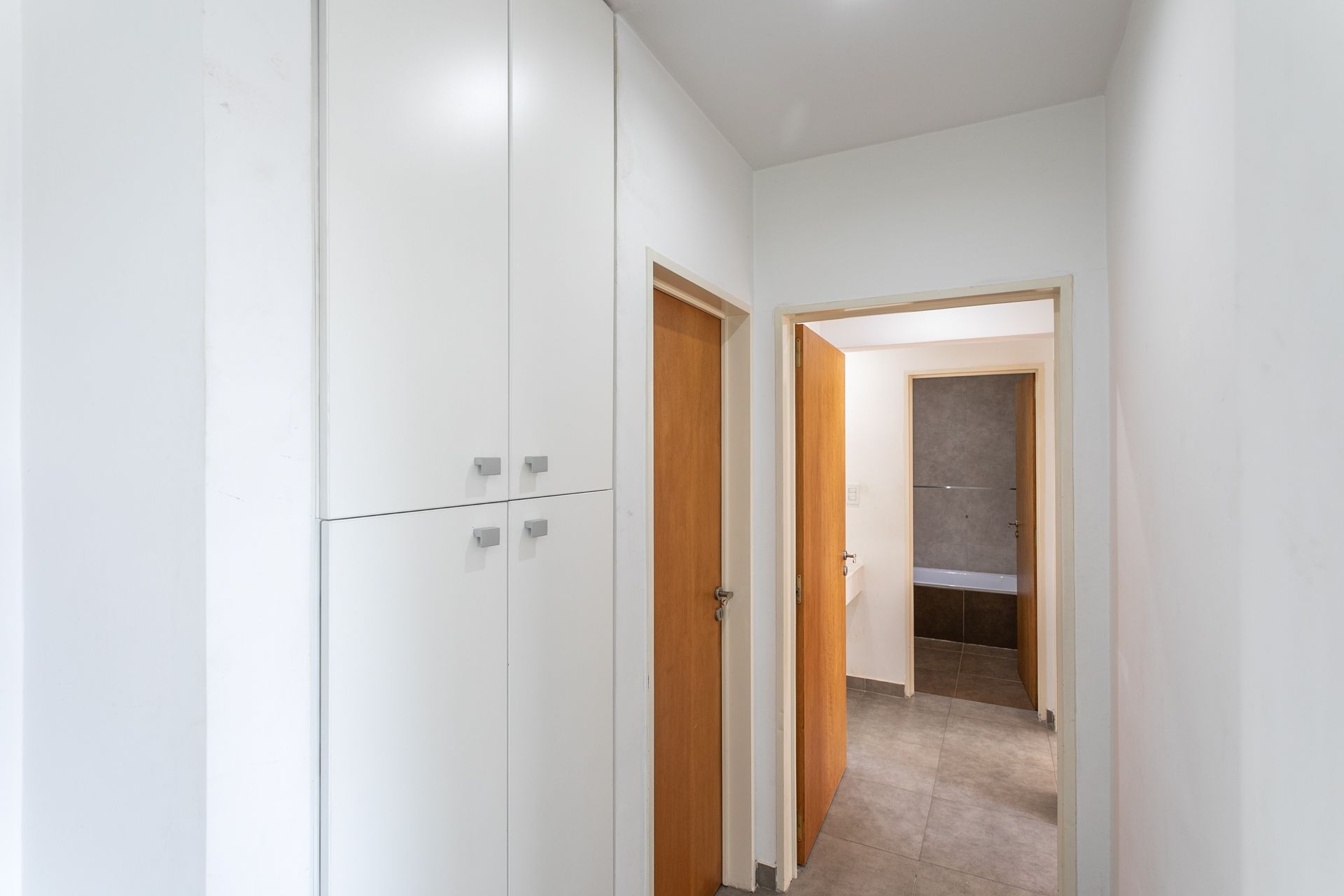Situado en el primer piso y accesible por escalera, el inmueble ofrece vista abierta al contrafrente arbolado. El interior se compone de un amplio living comedor con salida al balcón y una cocina integrada con barra, equipada con cocina a gas y termotanque eléctrico. Se dispone de un baño completo con bañera, un antebaño con bacha en la zona de dormitorios y un toilette de recepción cerca del living. Los dos dormitorios son de buenas dimensiones, luminosos y con grandes placares.