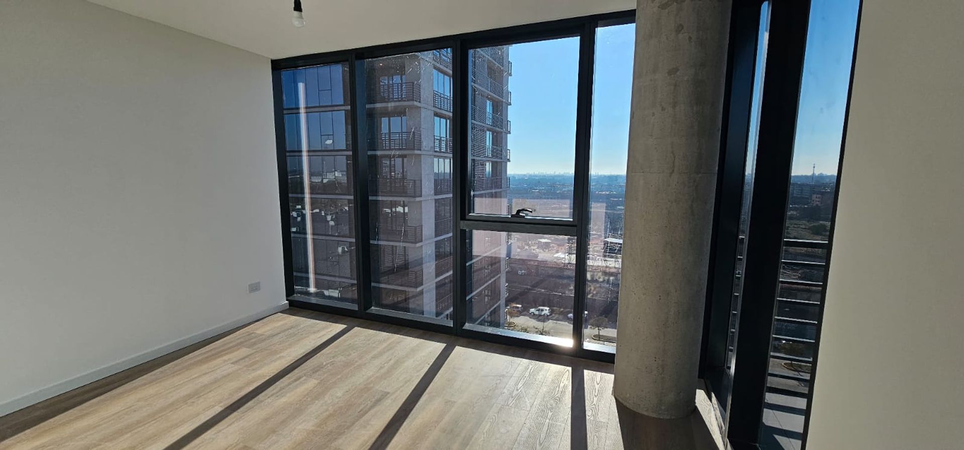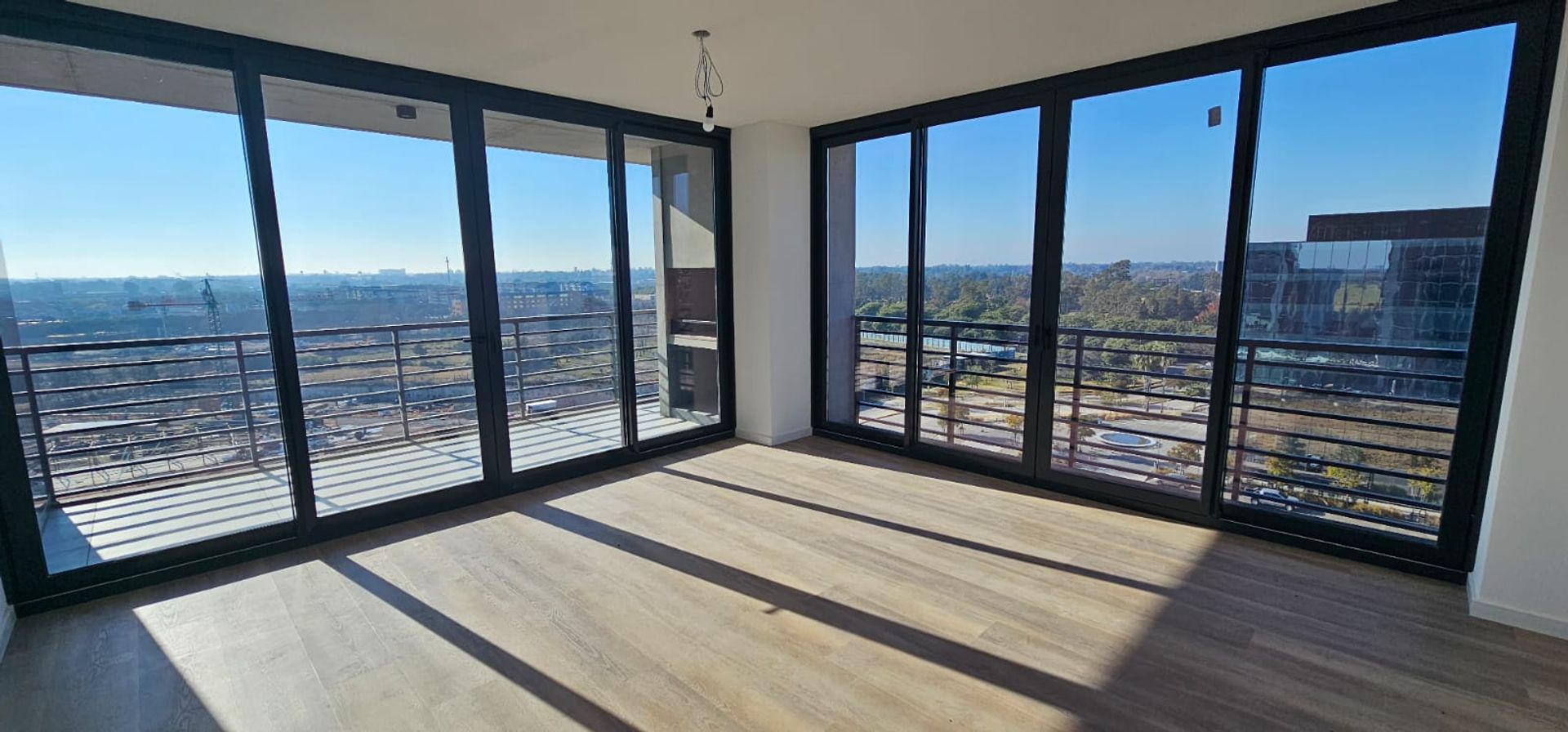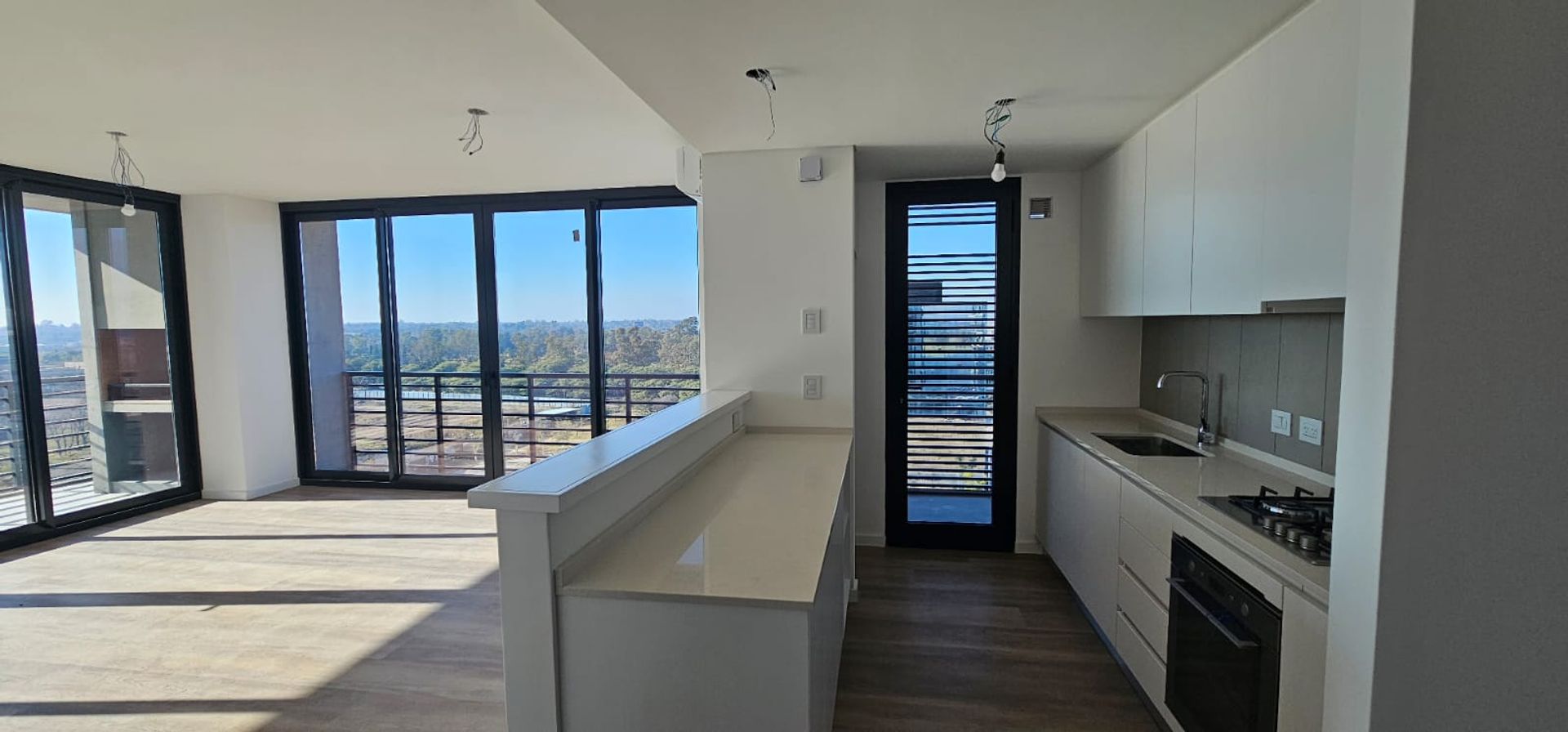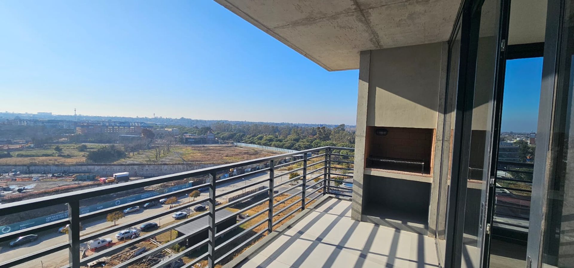 Departamento de 3 ambientes ubicado en un edificio moderno con Super Acceso (Uruguay y Panamericana). Situado en el piso 6, la vivienda ofrece una vista abierta al frente que se extiende desde el amplio balcón, equipado con parrilla y con ventanas de PVC de doble vidrio negro que garantizan aislamiento térmico y acústico, además de aportar un estilo contemporáneo.