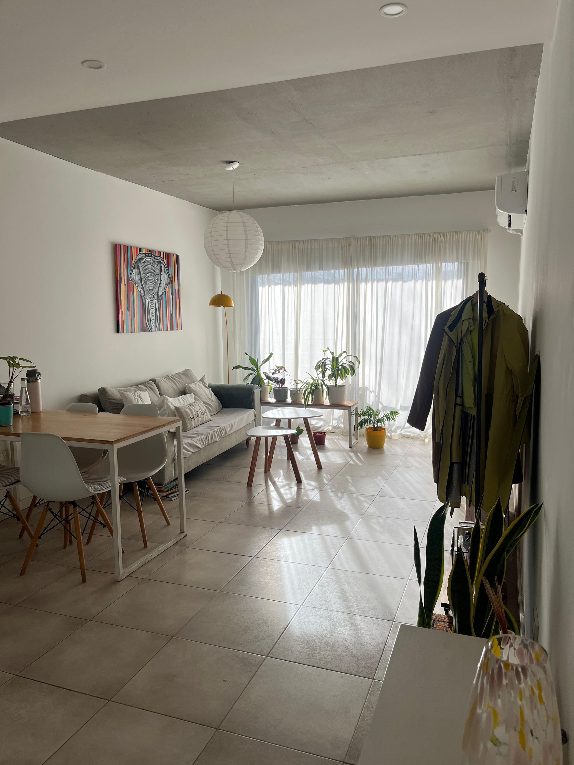 Al ingresar se abre un amplio living y comedor con pisos de porcelanato y aire acondicionado frío/calor, ideal para recibir invitados o disfrutar de momentos de descanso. Un gran ventanal conduce a un balcón corrido equipado con parrilla, perfecto para encuentros al aire libre.