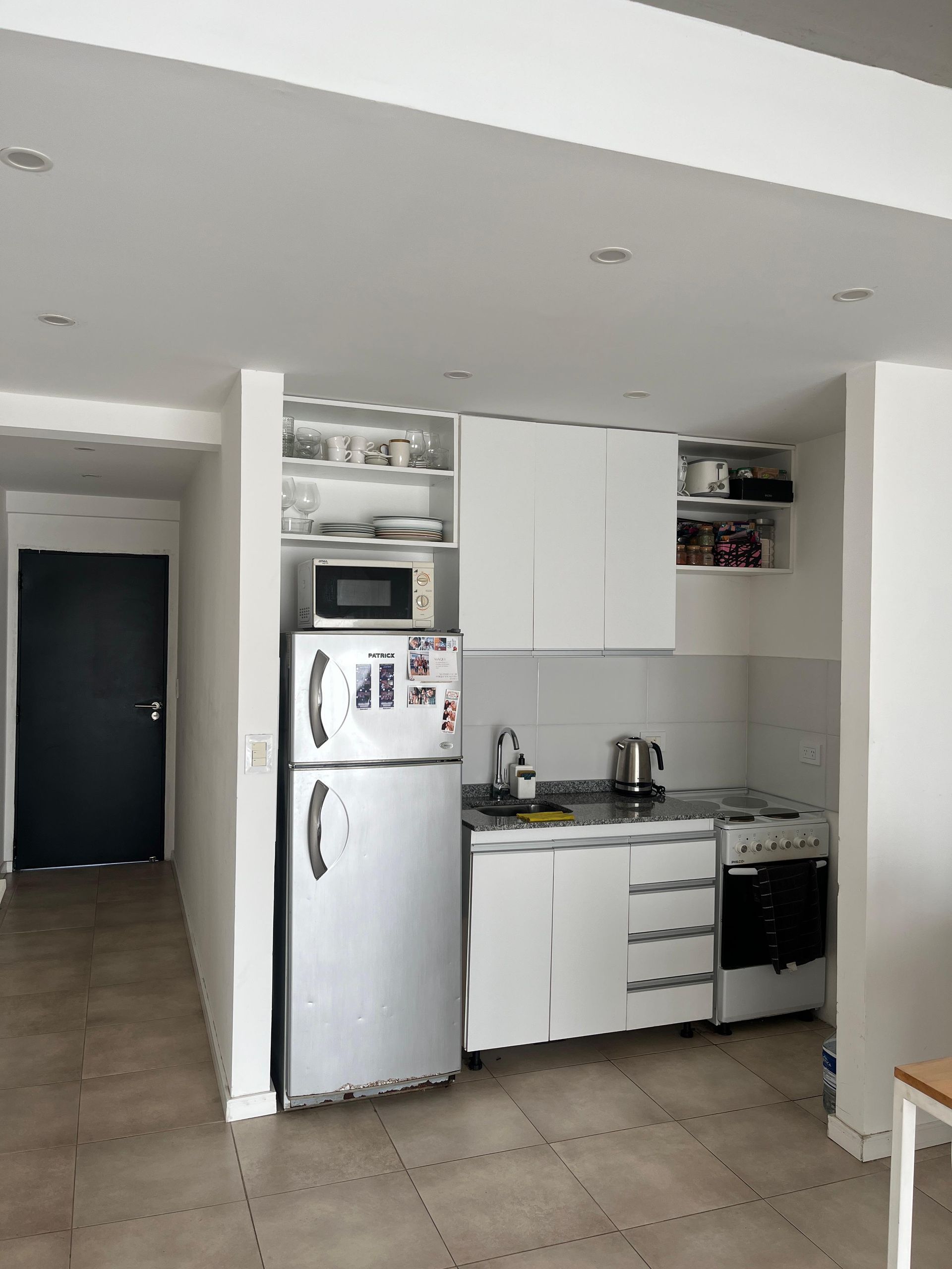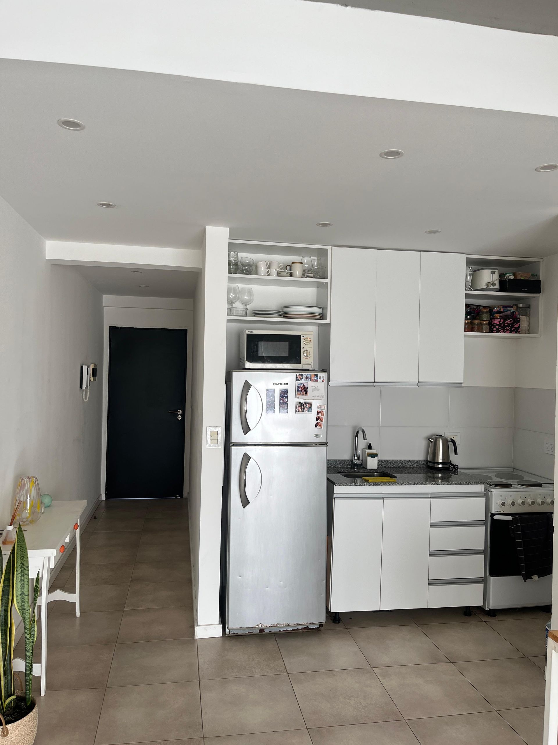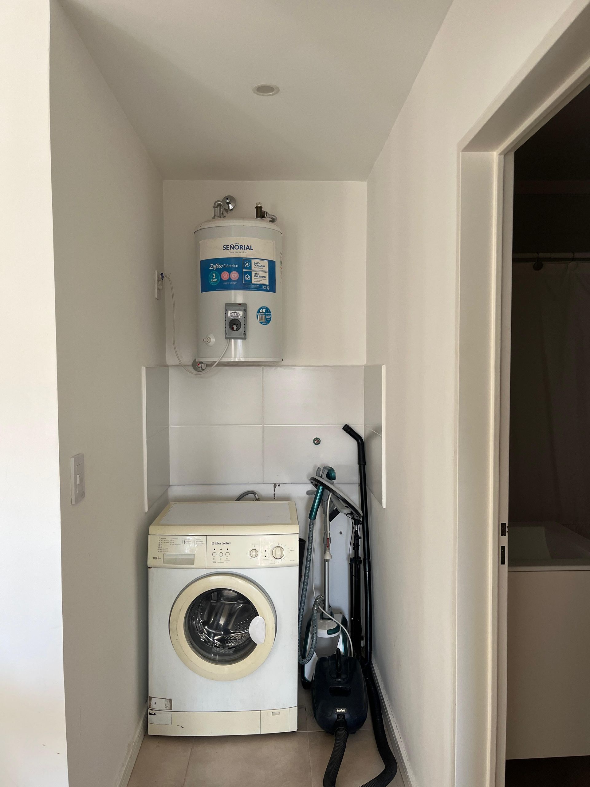 La cocina, integrada con muebles bajo y sobre la mesada, cuenta con horno y anafe eléctrico, ofreciendo una zona funcional y elegante. El lavadero dispone de conexión para lavarropas y un termotanque eléctrico para el agua caliente, aportando comodidad adicional.