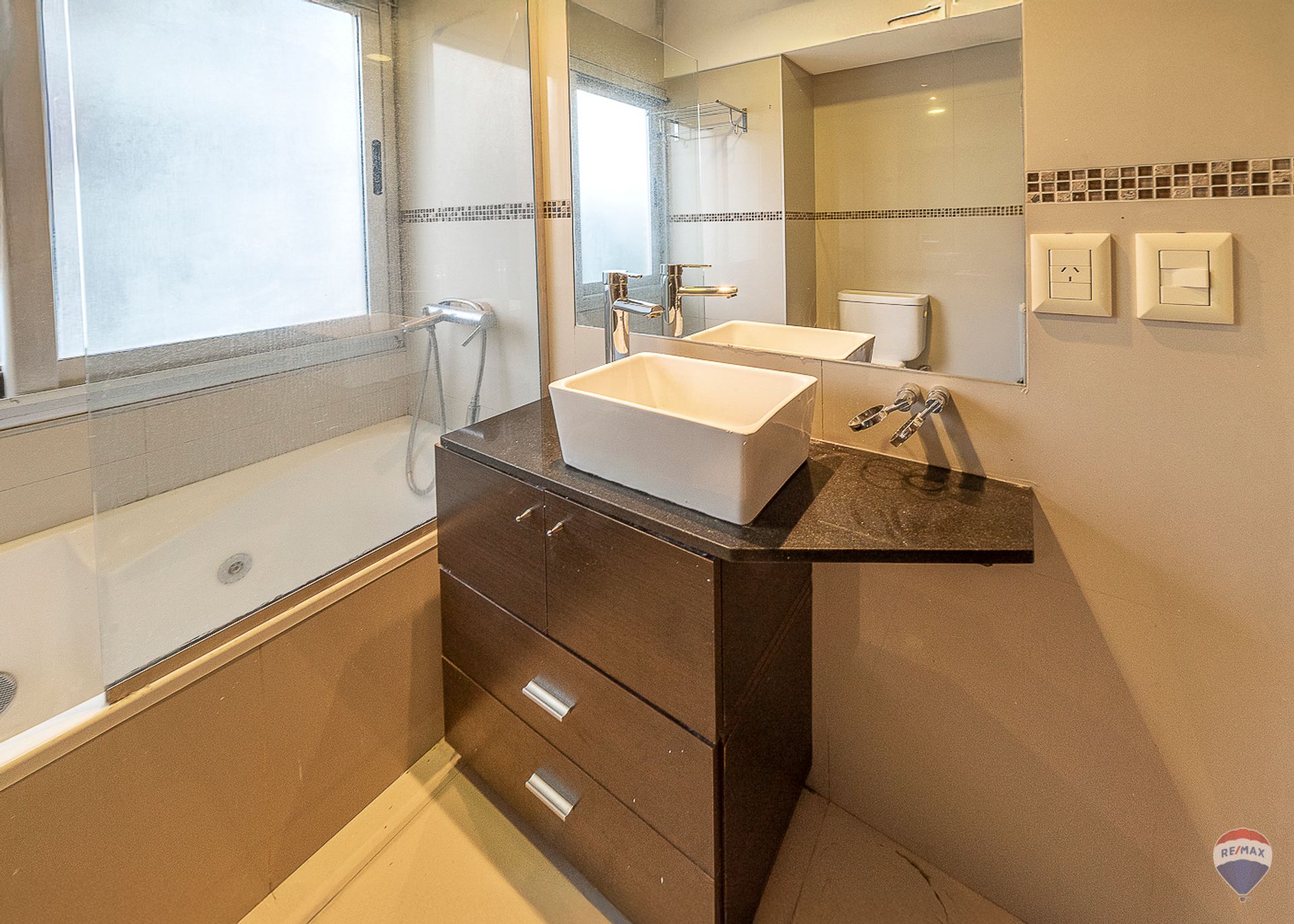 El baño completo incluye un jacuzzi, brindando un oasis de relajación. Un balcón permite disfrutar de la vista al río y al entorno urbano. La unidad cuenta con una cochera cubierta ubicada en el segundo subsuelo, asegurando comodidad y seguridad para el vehículo.