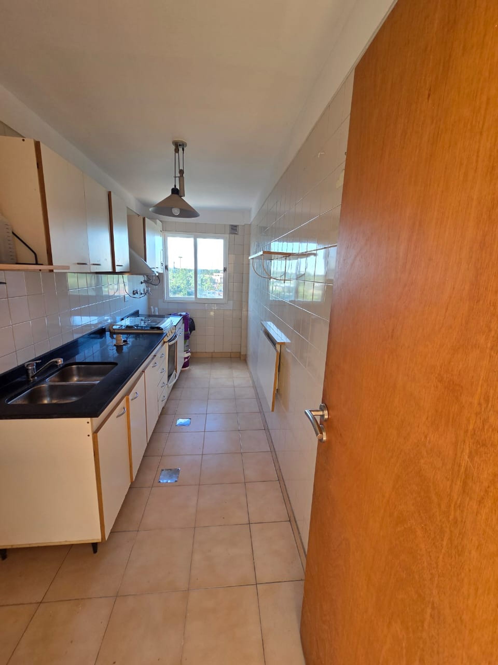 Piso alto en el complejo Los Alamos, Tigre, con vistas abiertas que inundan el espacio de luz natural. El apartamento cuenta con un amplio living comedor, un baño completo equipado con bañera, y dos dormitorios con placares integrados que ofrecen un amplio espacio de almacenamiento. La cocina, diseñada con mesada de granito y extractor, incluye espacio para lavarropas y está equipada con estufa a gas. Los muebles bajo la mesada y las alacenas están alineados para maximizar la funcionalidad.