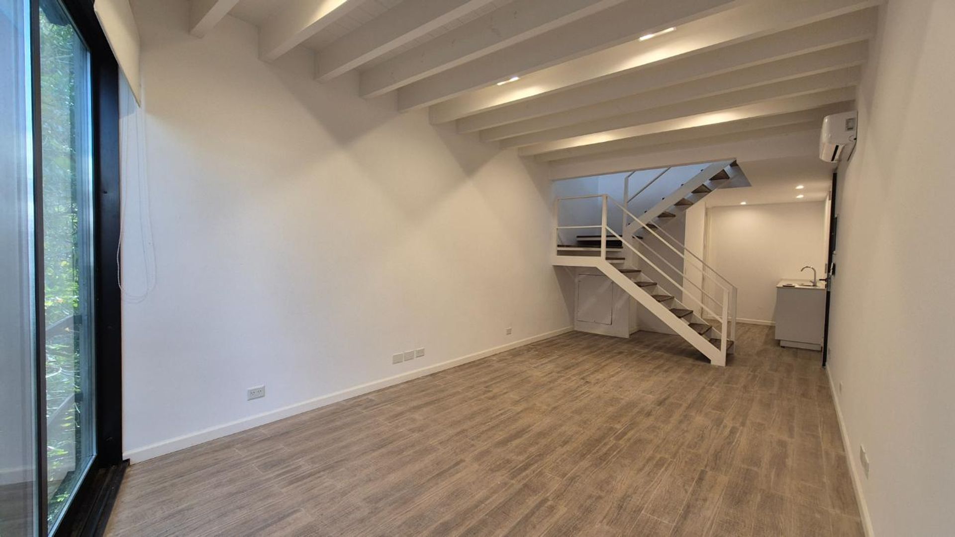 Departamento dúplex de 2 ambientes en alquiler, ideal tanto para vivienda como para oficina. Se encuentra en el primer piso de un edificio de 2 plantas con 5 unidades, lo que garantiza un ambiente tranquilo y armonioso. El inmueble dispone de cochera y acceso por ascensor o escalera.
