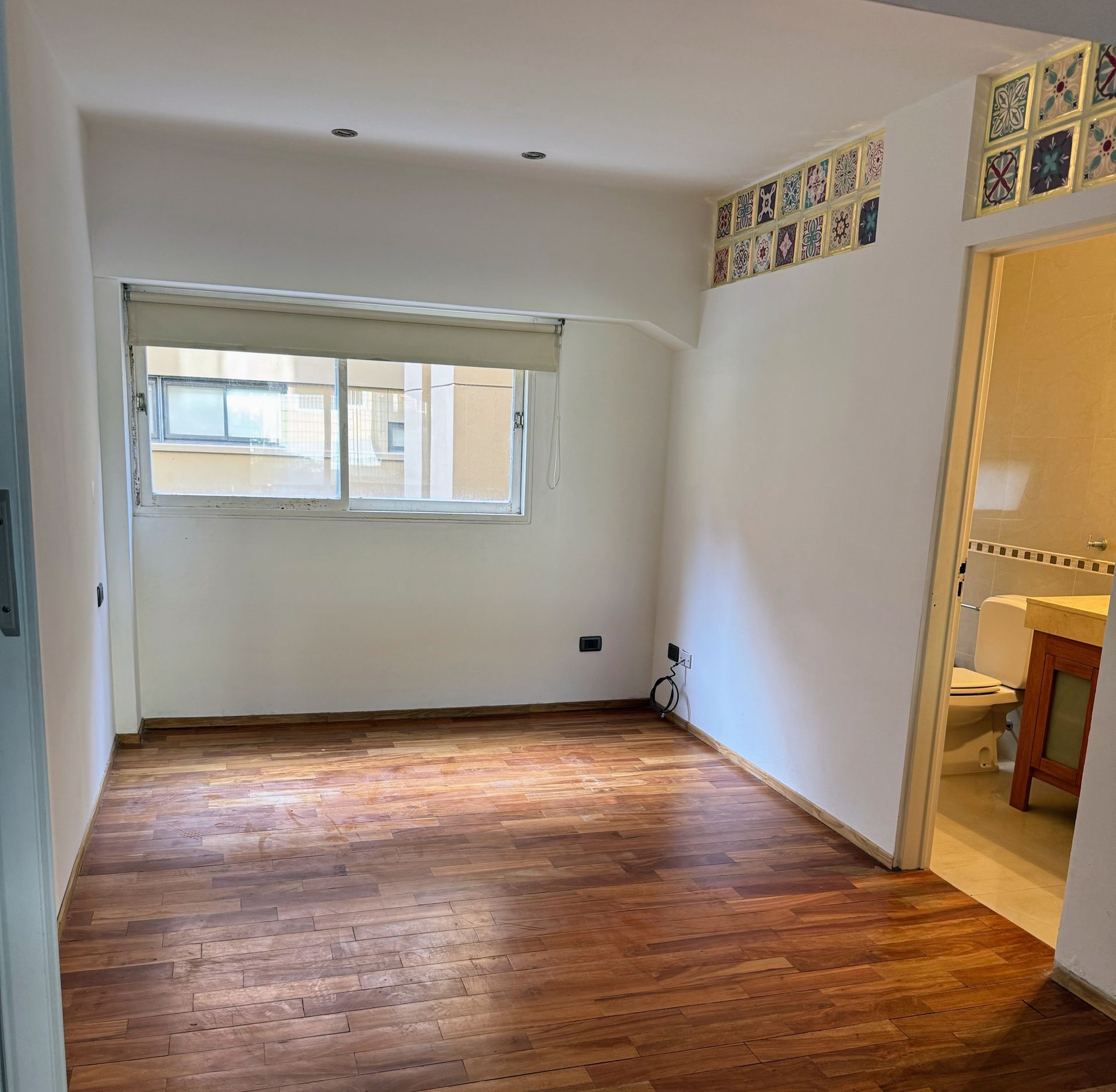 La planta alta alberga un gran dormitorio con vestidor y baño completo. El ambiente está equipado con aire acondicionado frío/calor y luminarias instaladas en toda la vivienda.