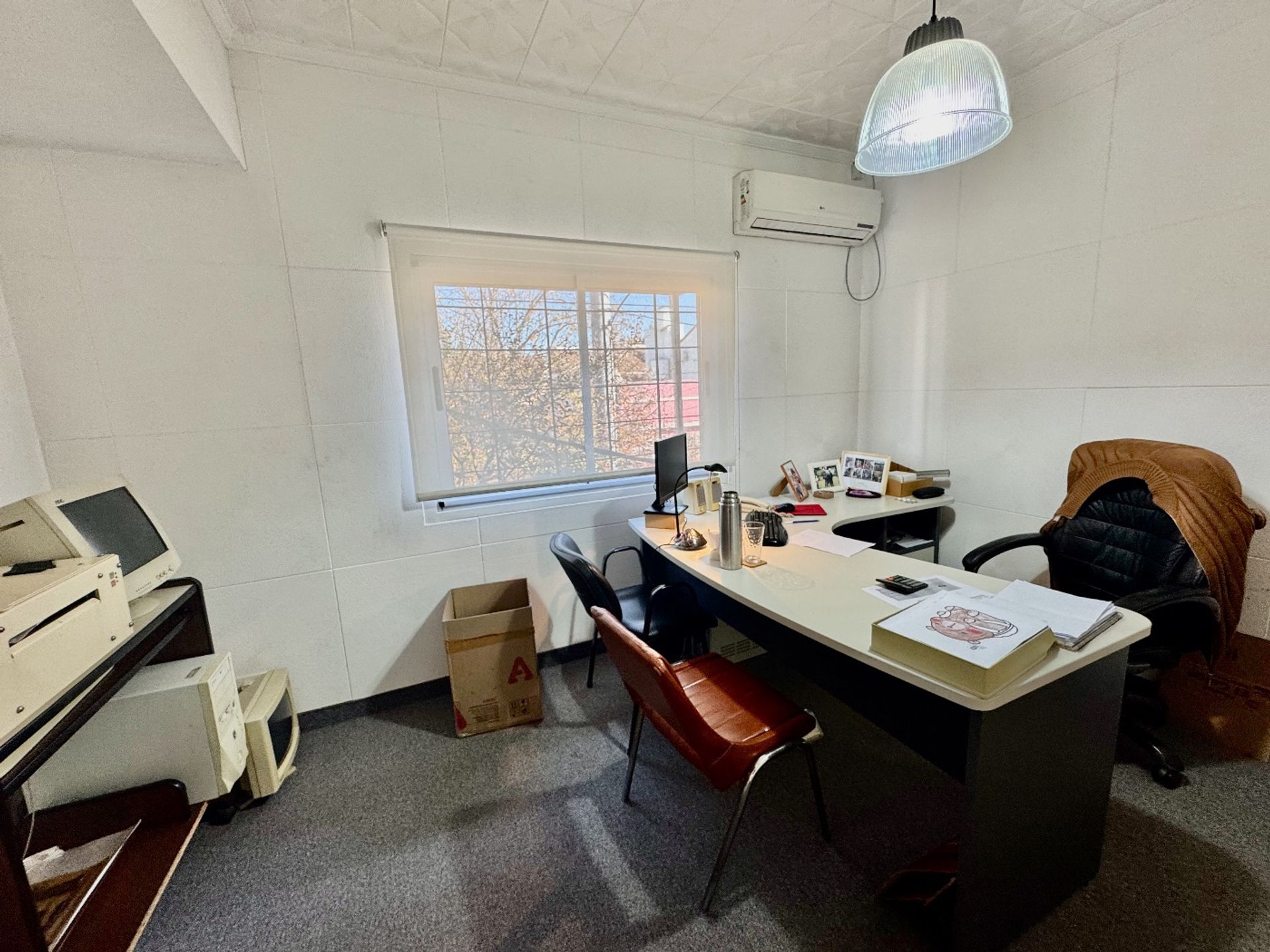 El inmueble está construido sobre piso de hormigón y presenta techo parabólico de chapa, garantizando durabilidad y eficiencia energética. En la planta baja se ubican la recepción, las oficinas y dos baños completos, además de una cocina funcional. En el galpón se dispone de un baño adicional, ampliando la versatilidad del espacio.